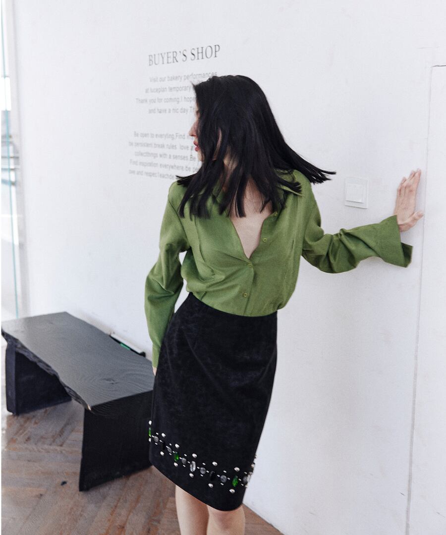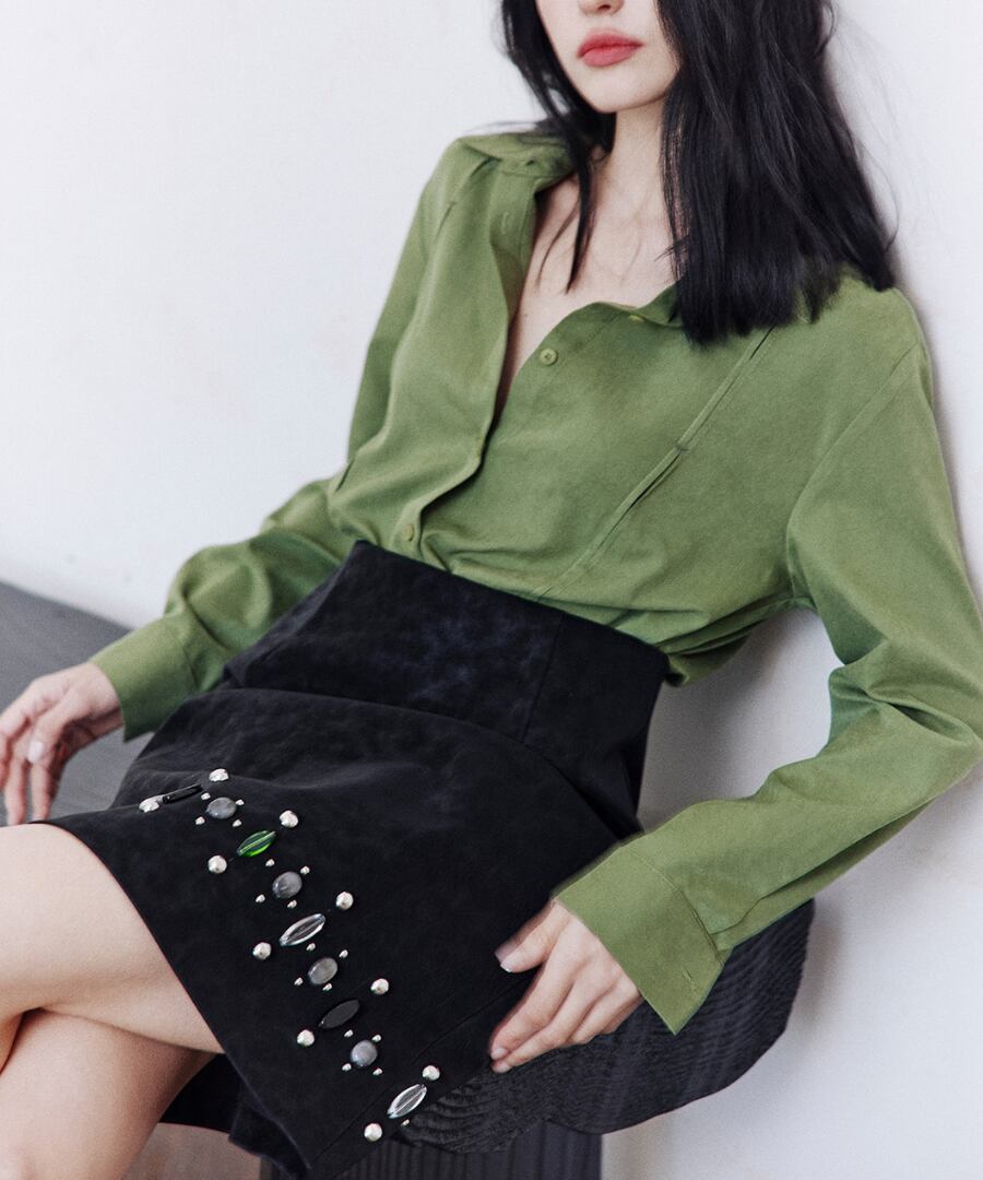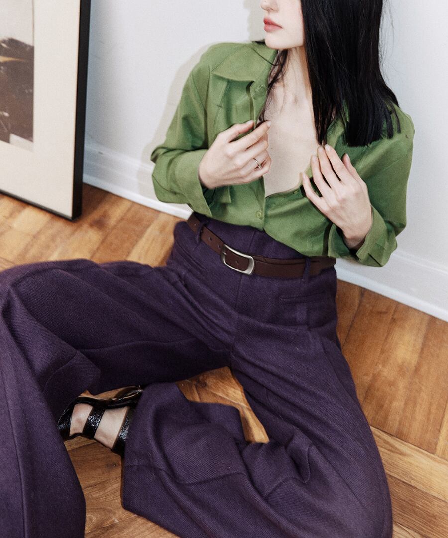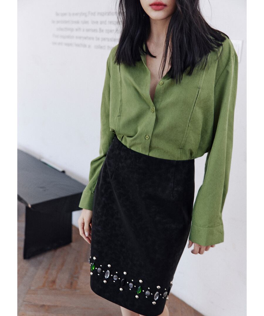 上品なグリーンのシャツが、あなたのスタイルに洗練さをプラス。