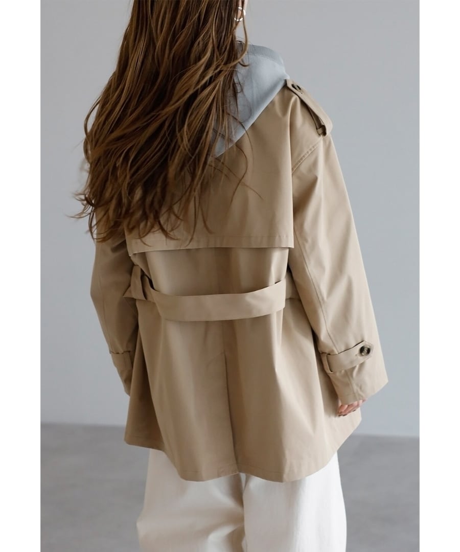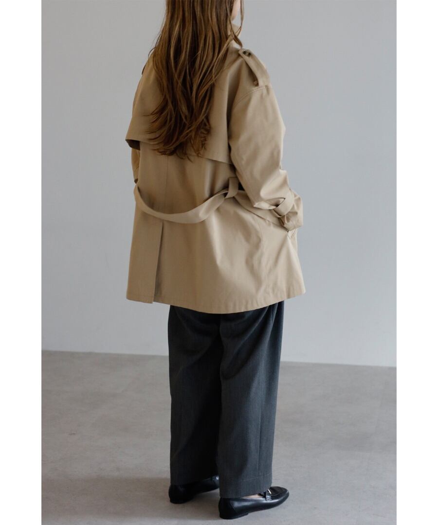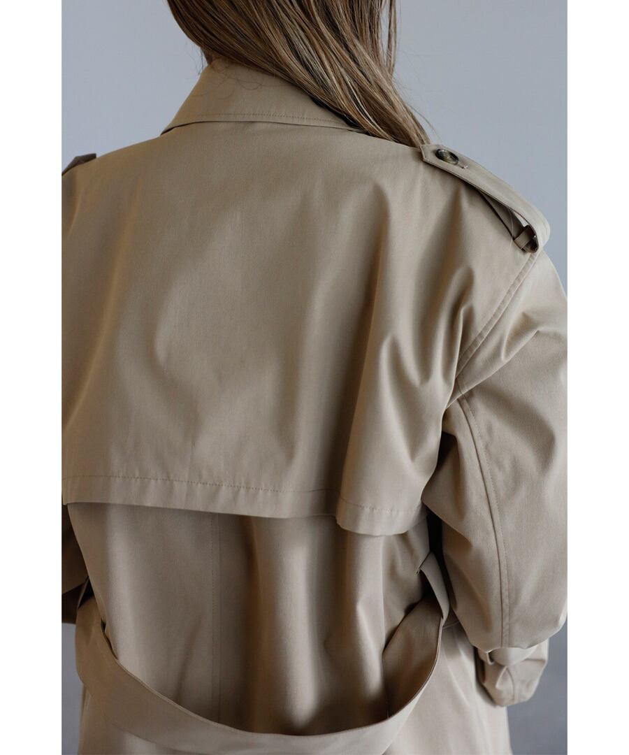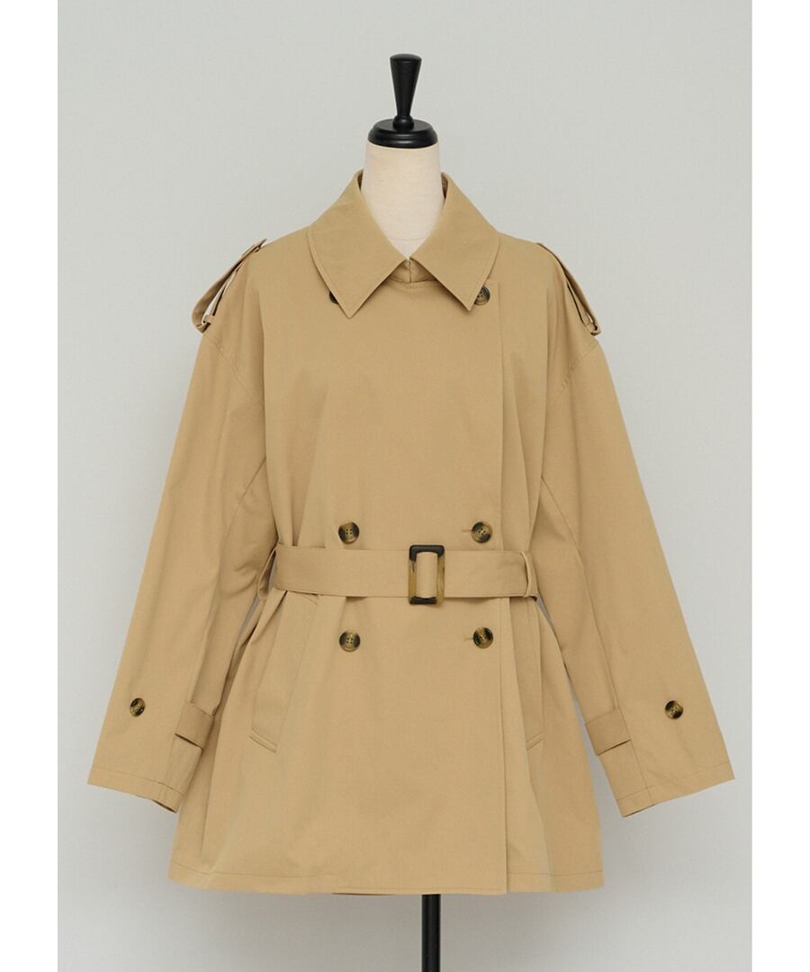 程よいハリを備えた素材が、美しい立体フォルムをキープするトレンチコート。