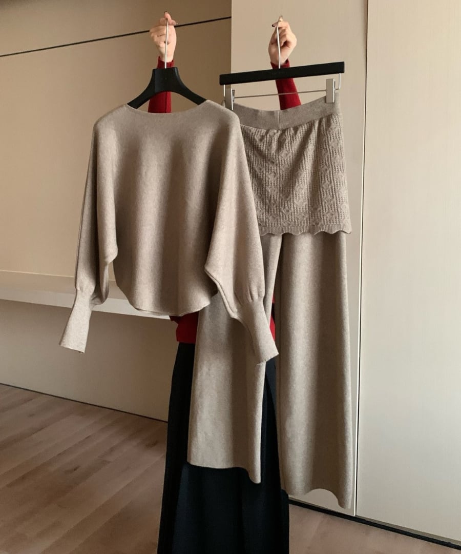 トップス+ラップスカートパンツ◆セットアップ【s-40035】