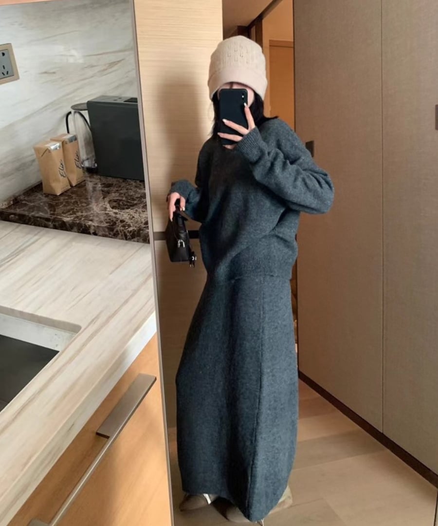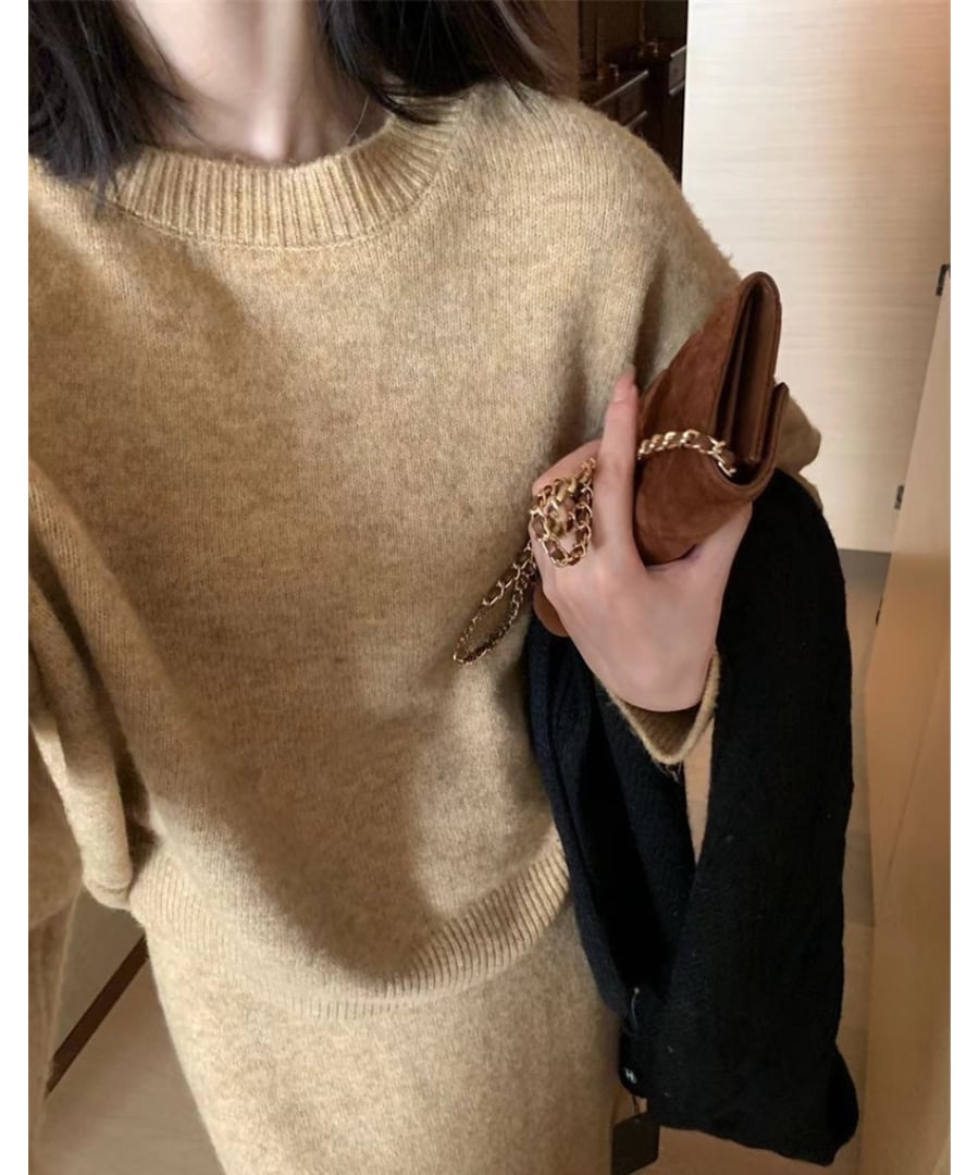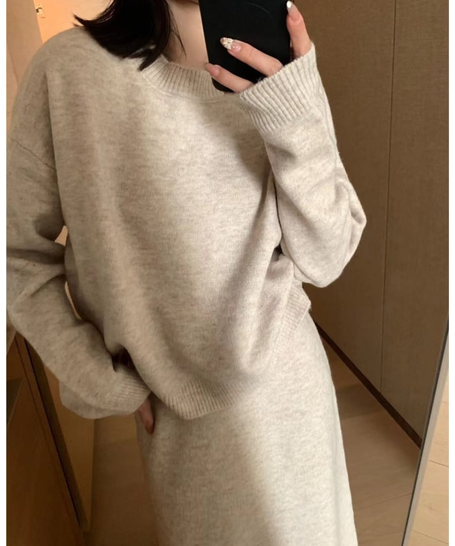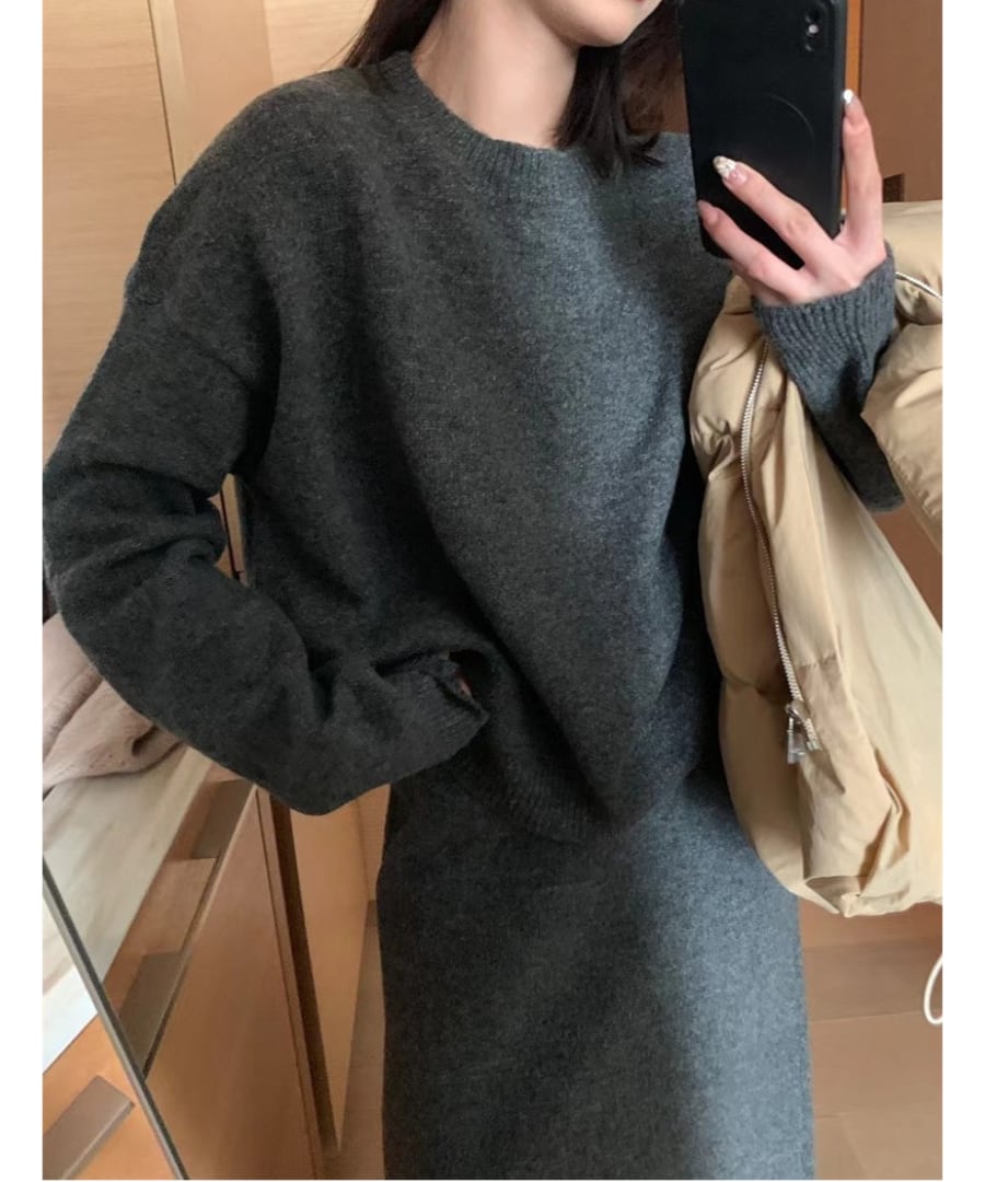 ラウンドネックセーター + スカート◆ツーピースセット【s-40036】