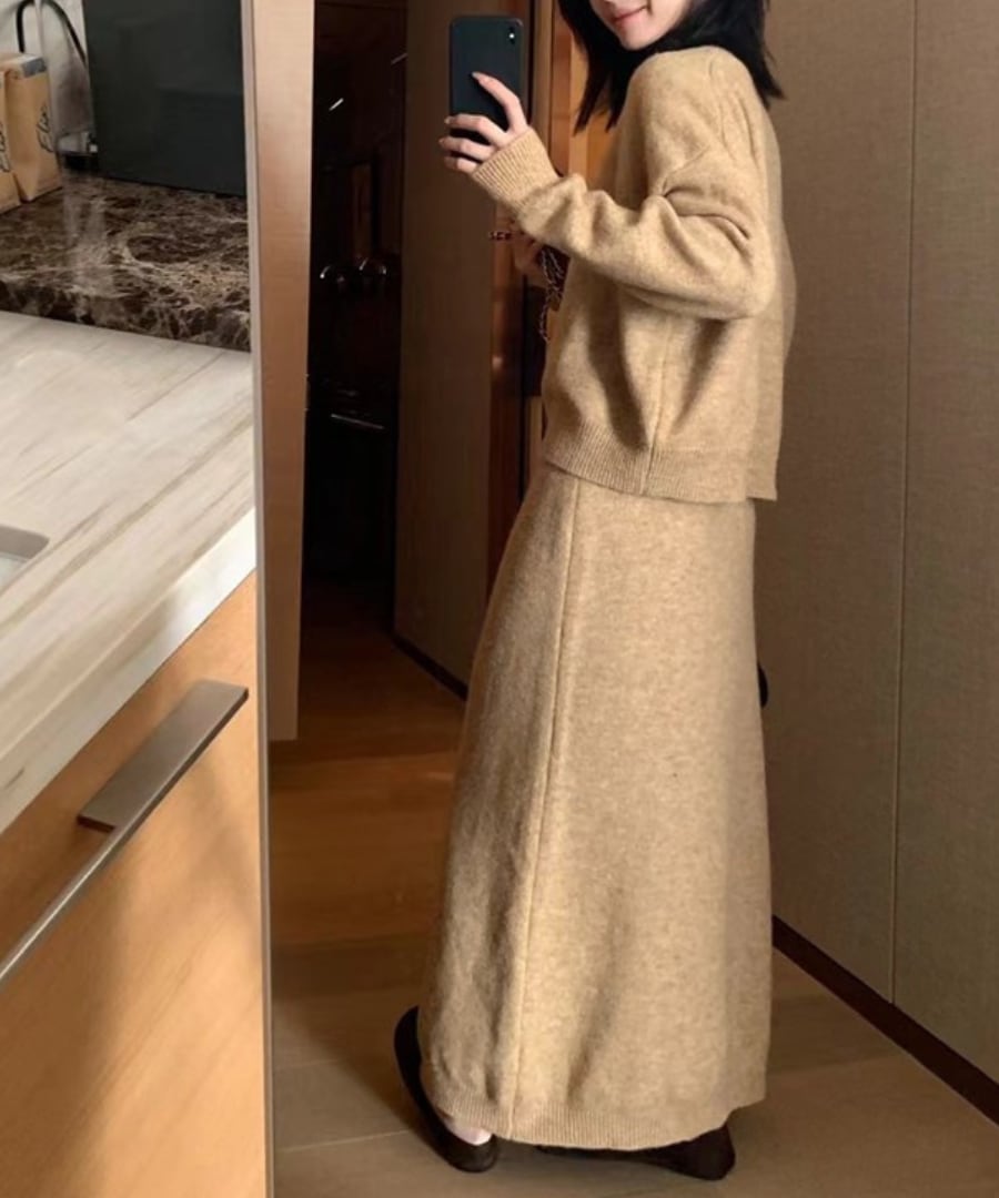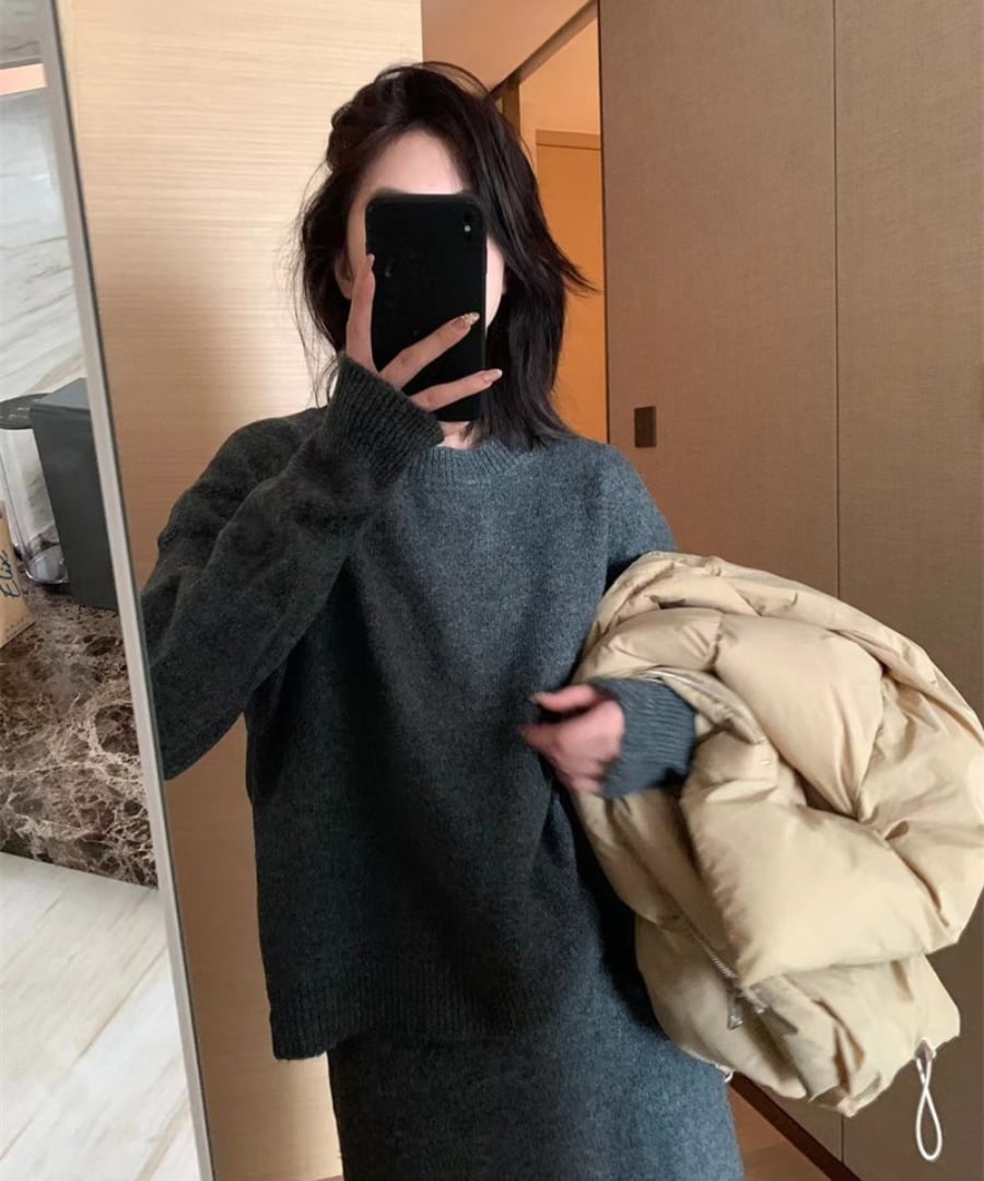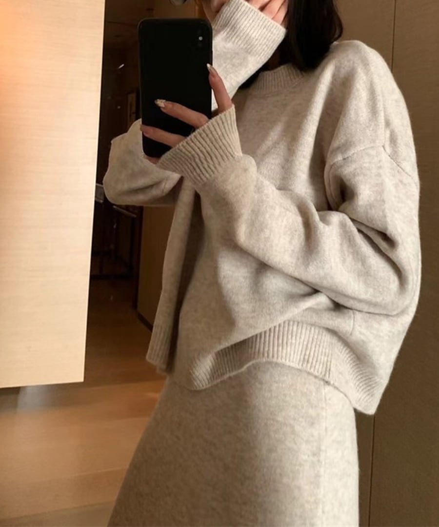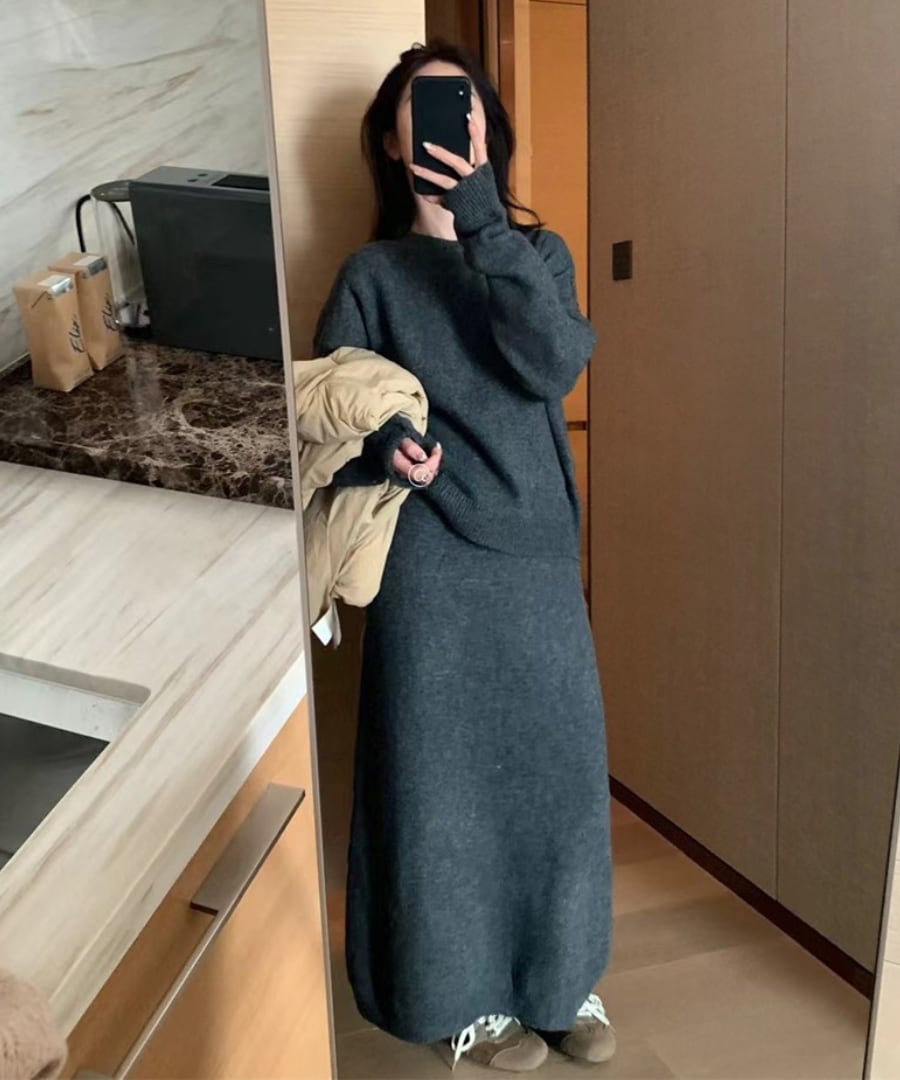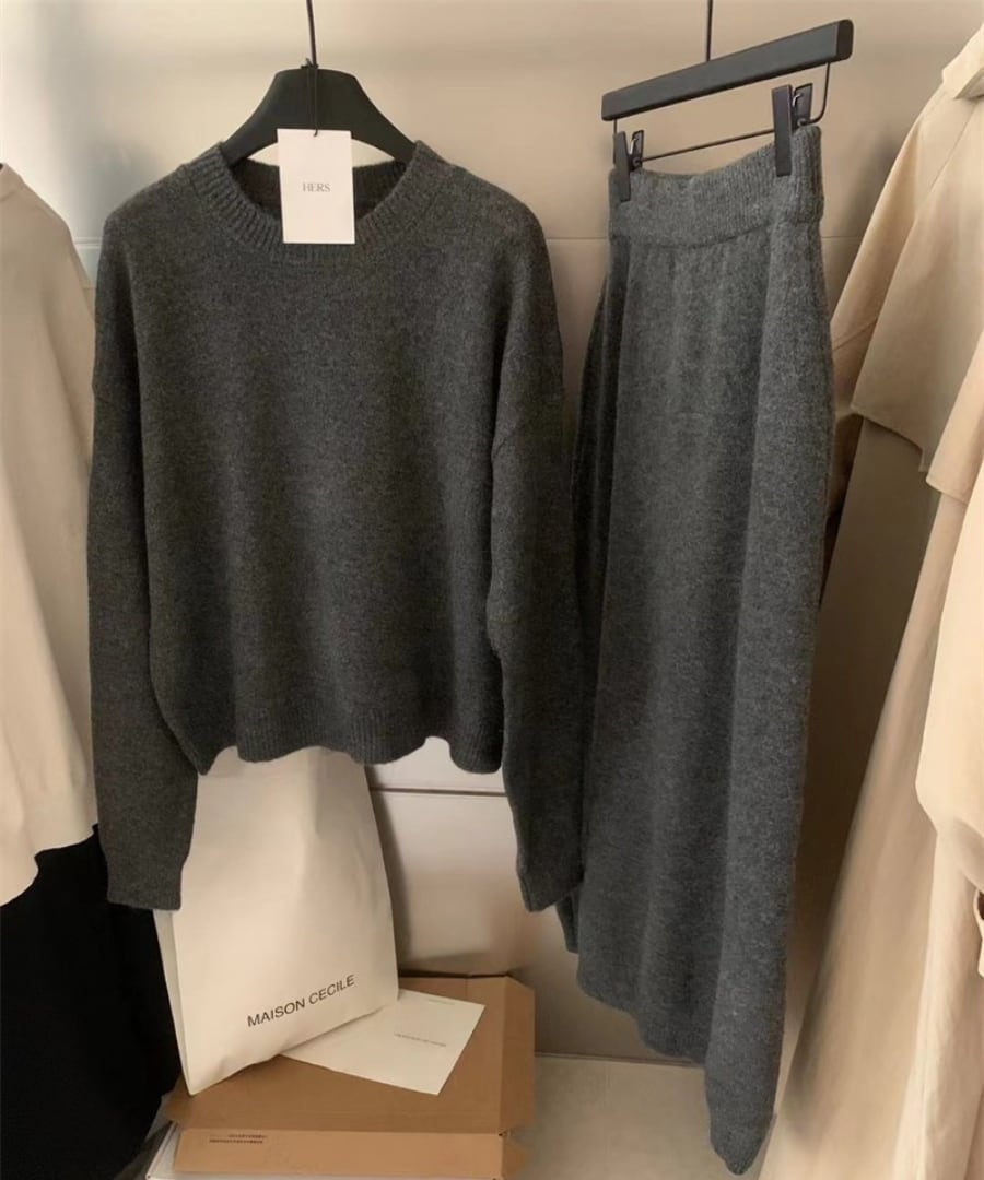 ラウンドネックセーター + スカート◆ツーピースセット【s-40036】