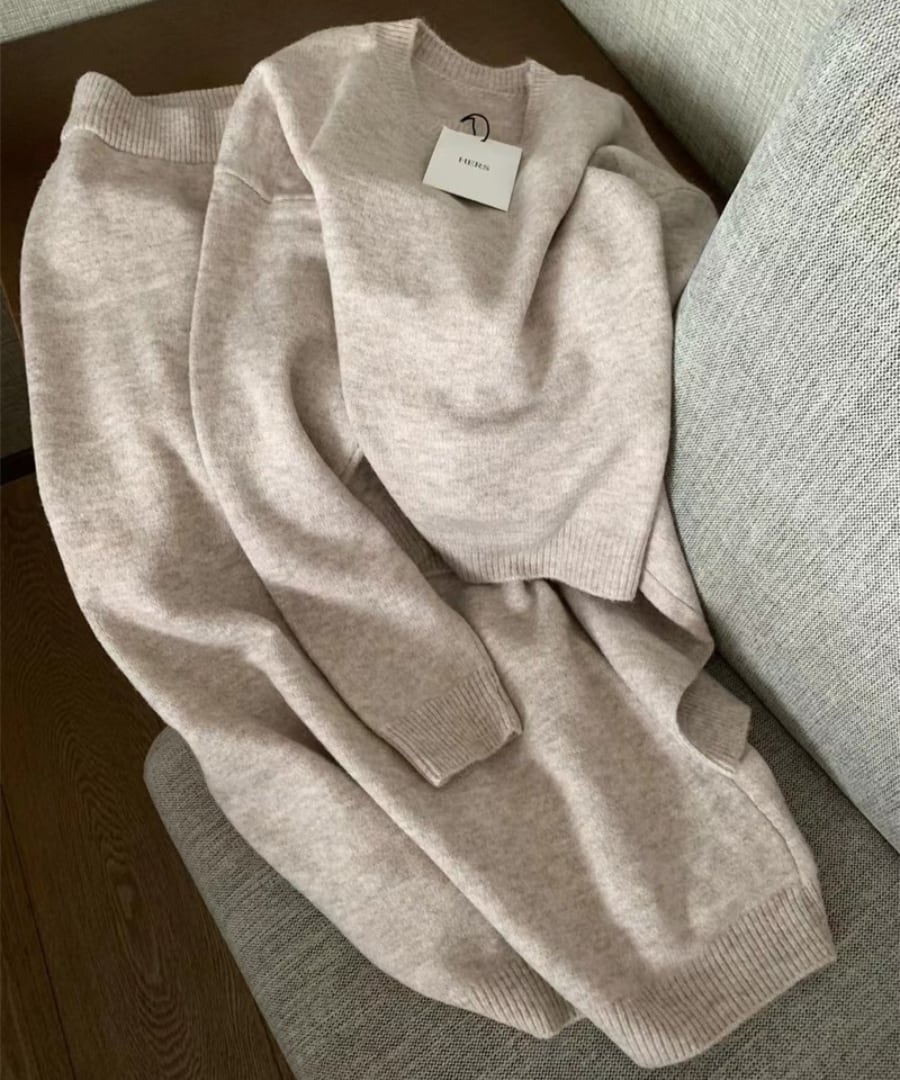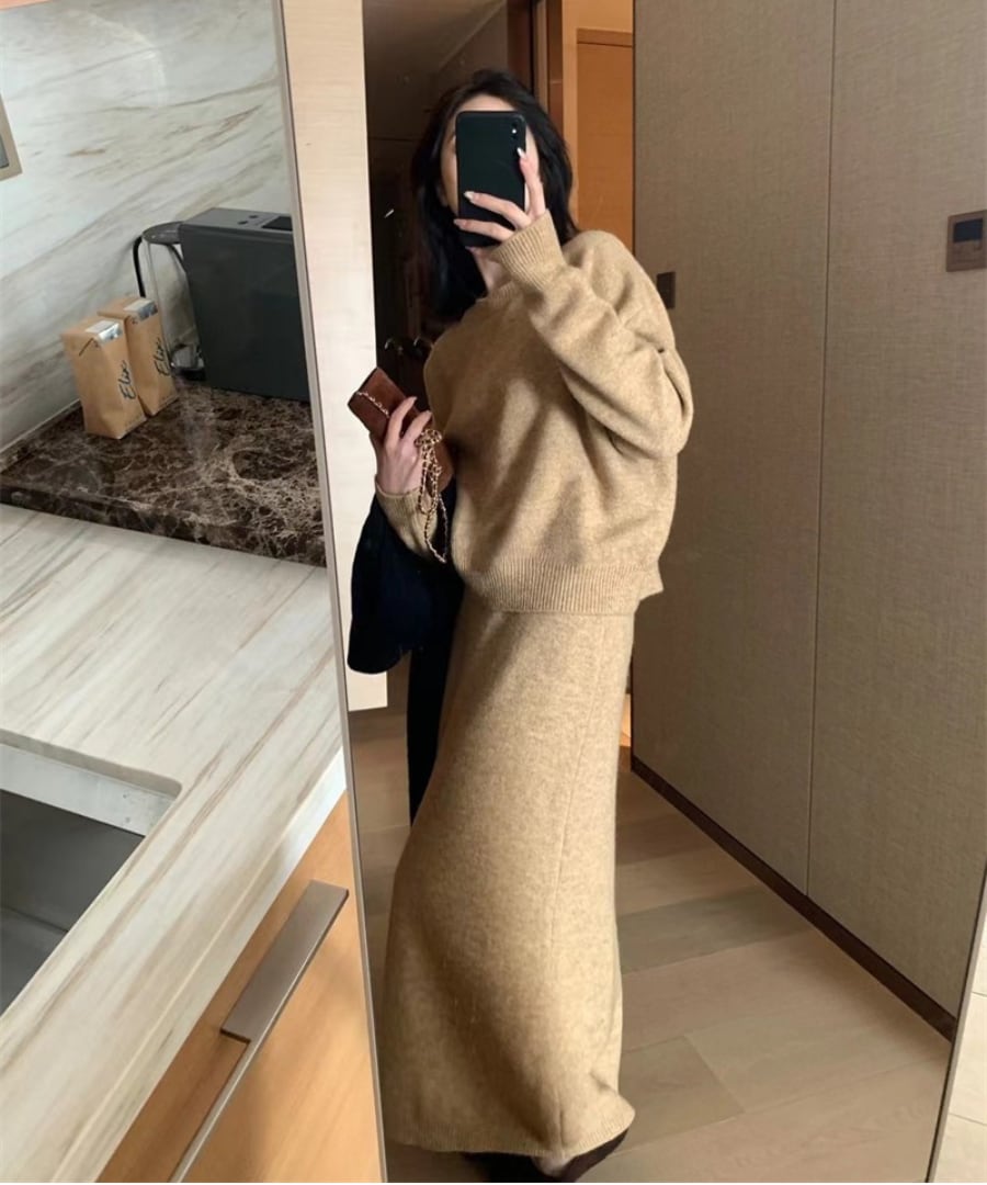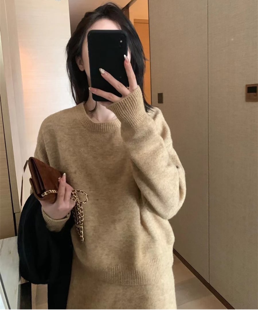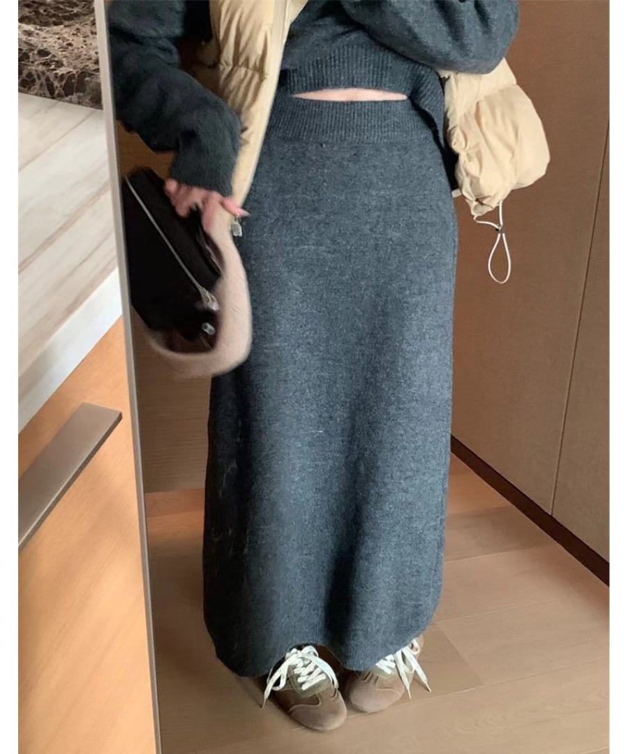 ラウンドネックセーター + スカート◆ツーピースセット【s-40036】