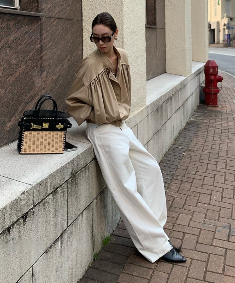 リラックスしたシルエットと美しいプリーツデザインが、どんなコーディネートにもマッチ。これからの季節に活躍してくれます。