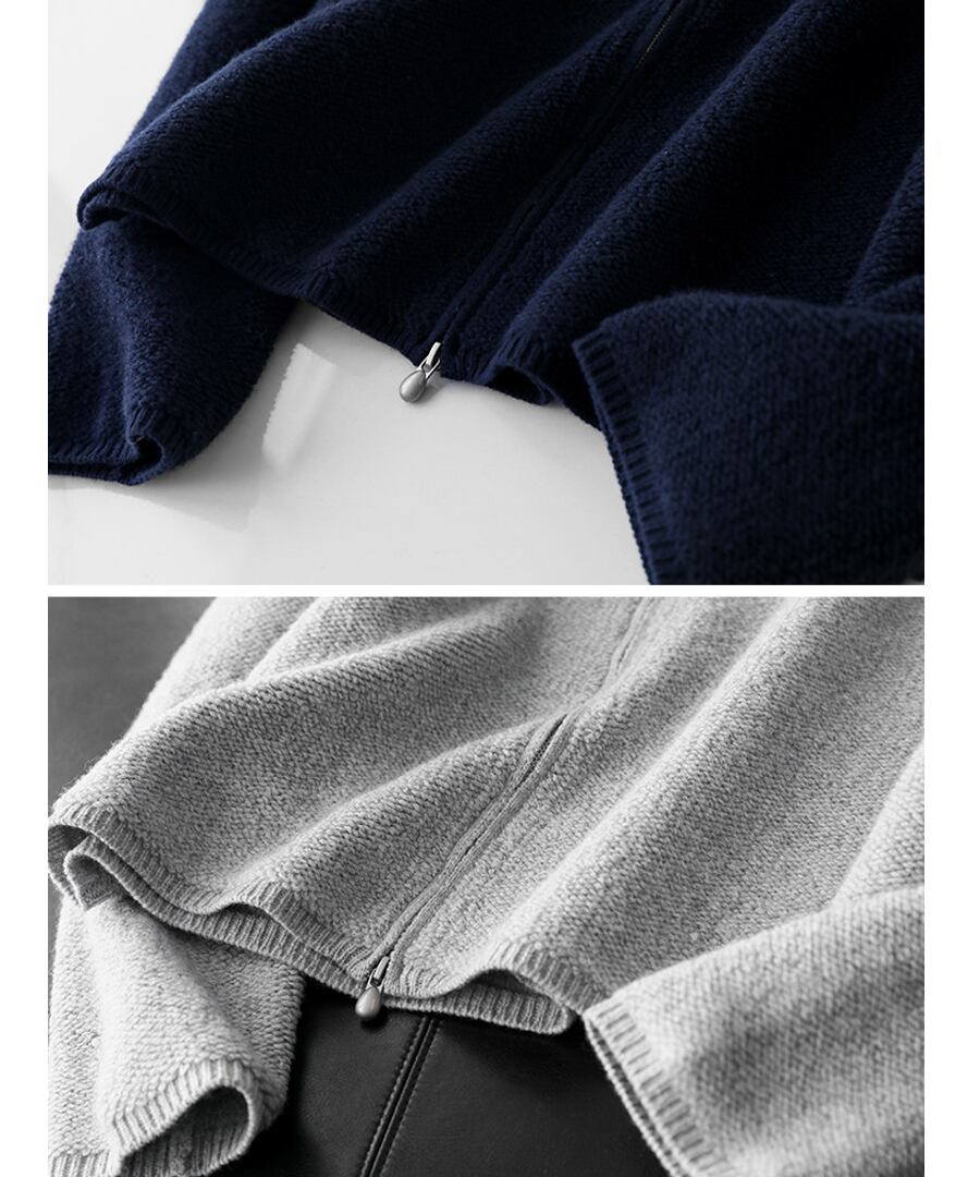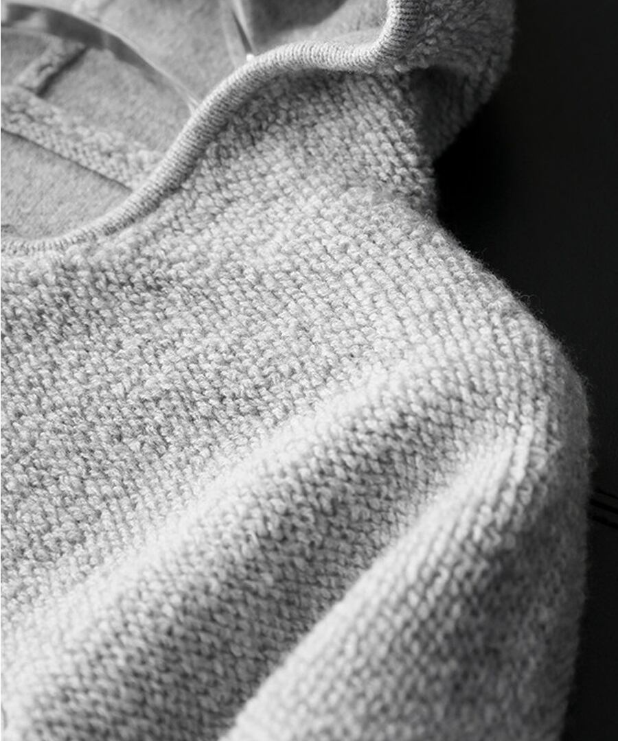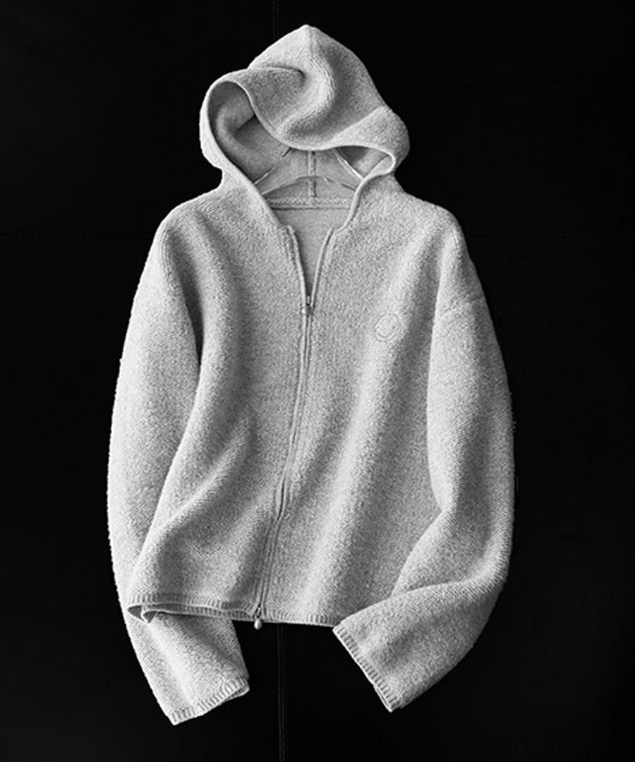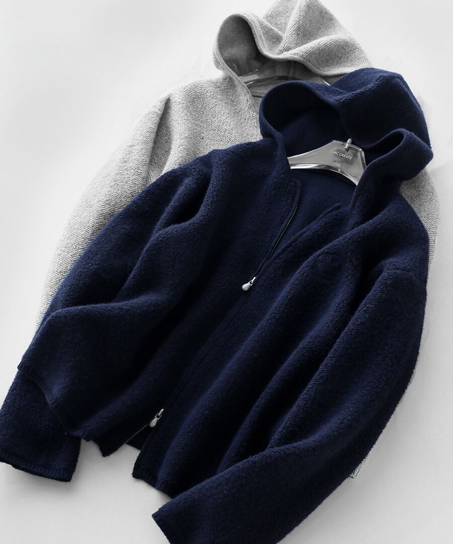 ピュアウール100%使用のニットパーカー。
