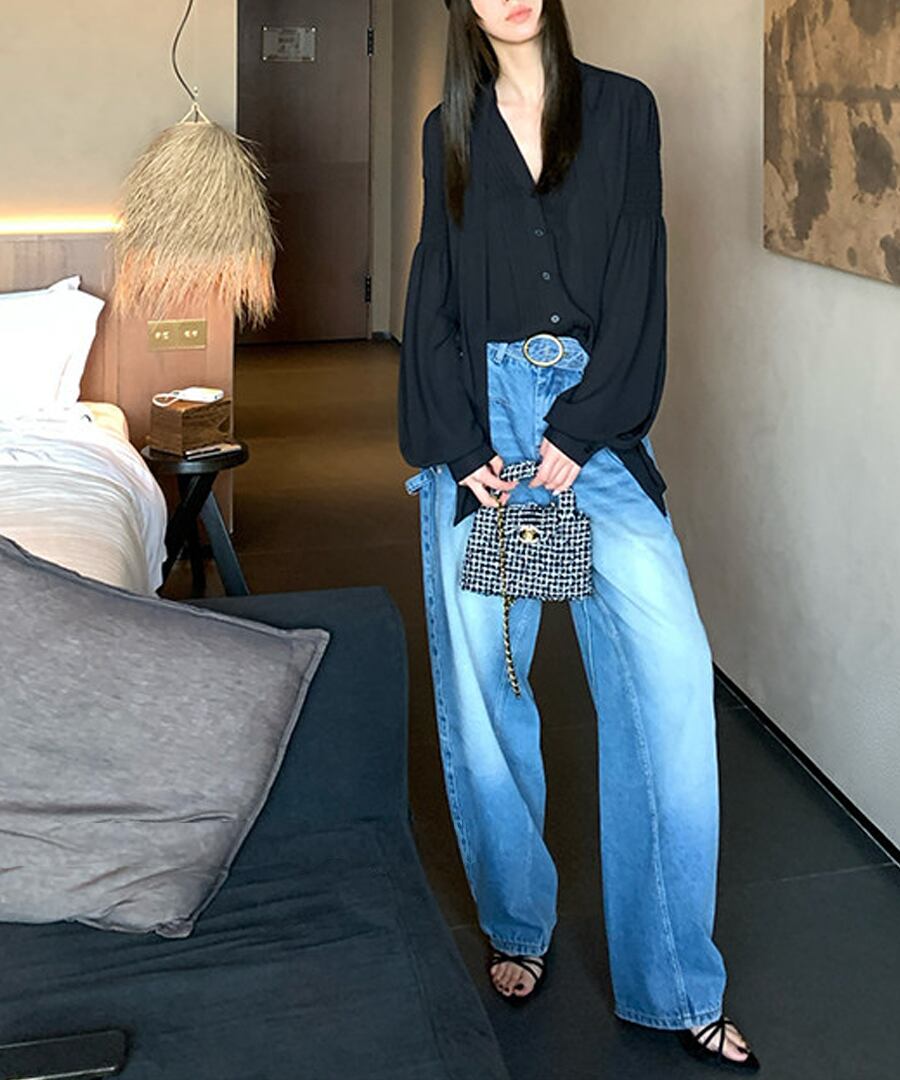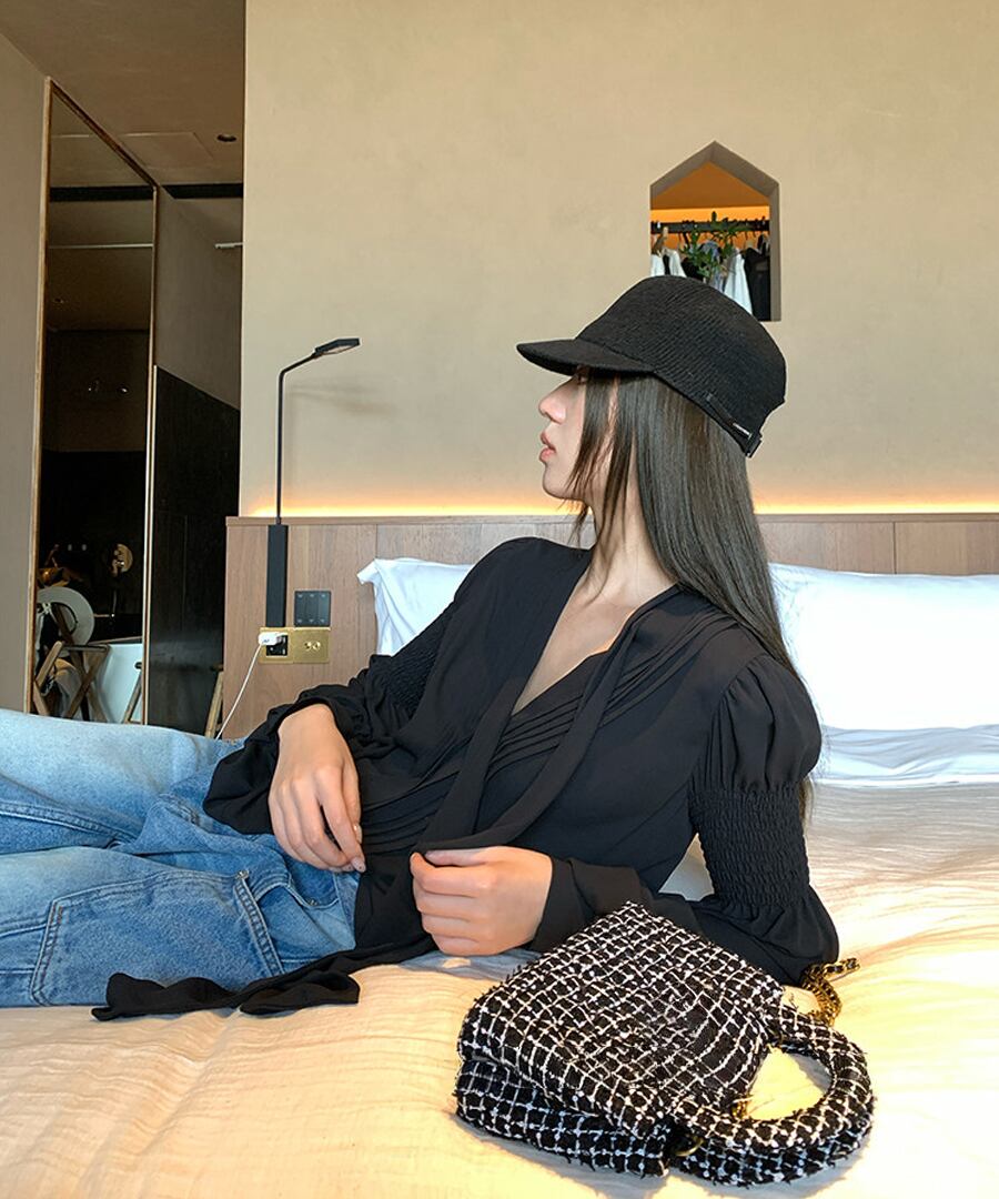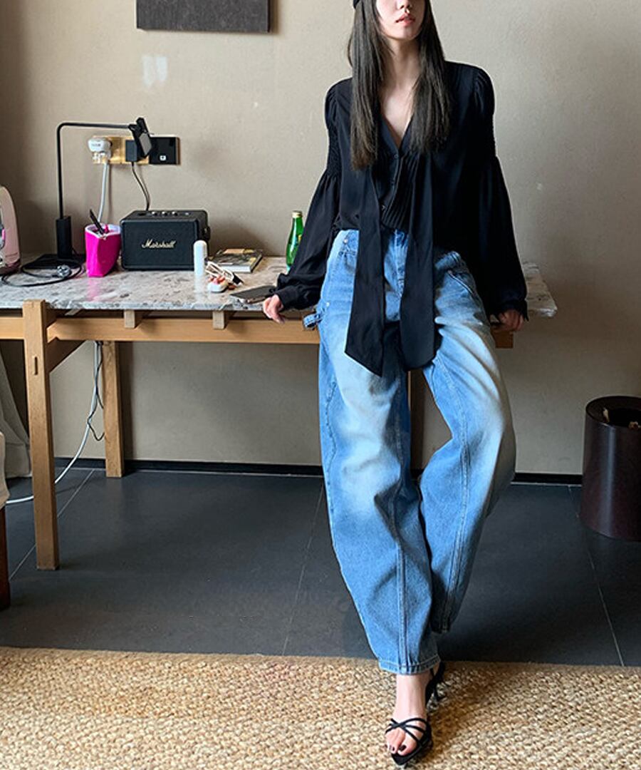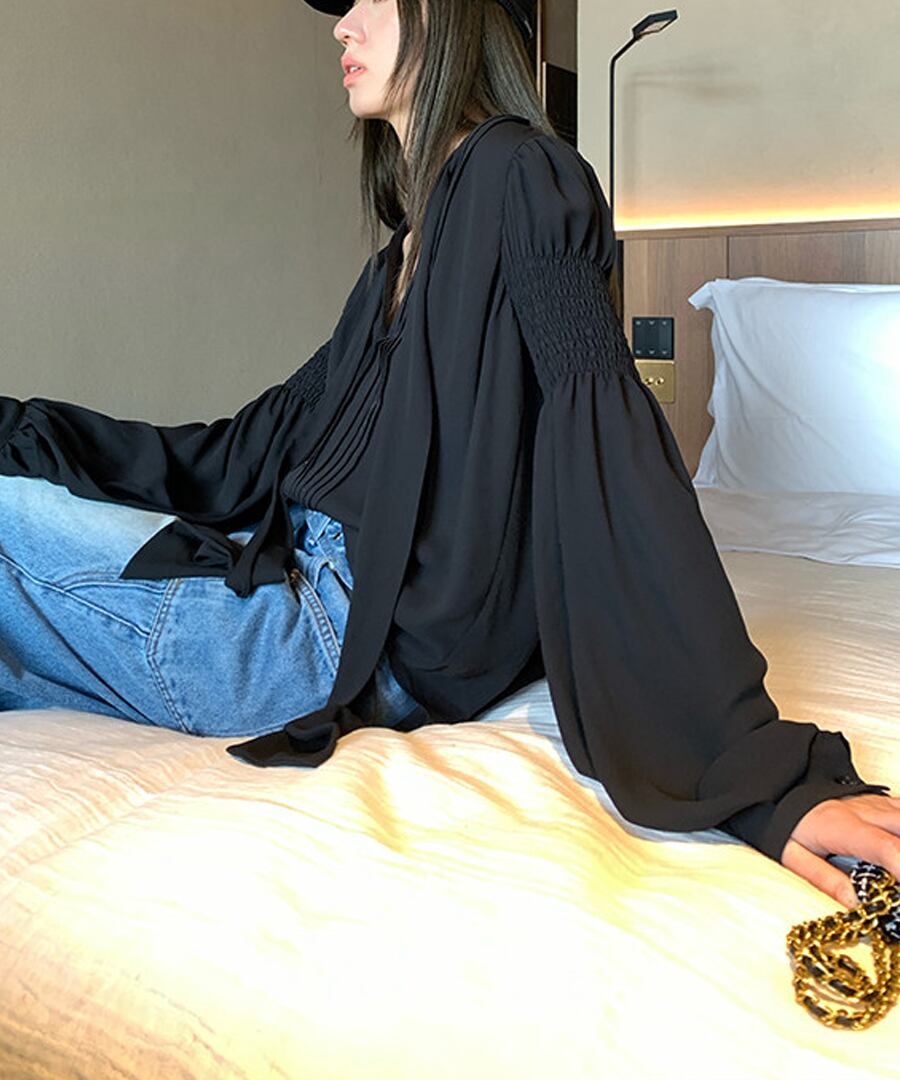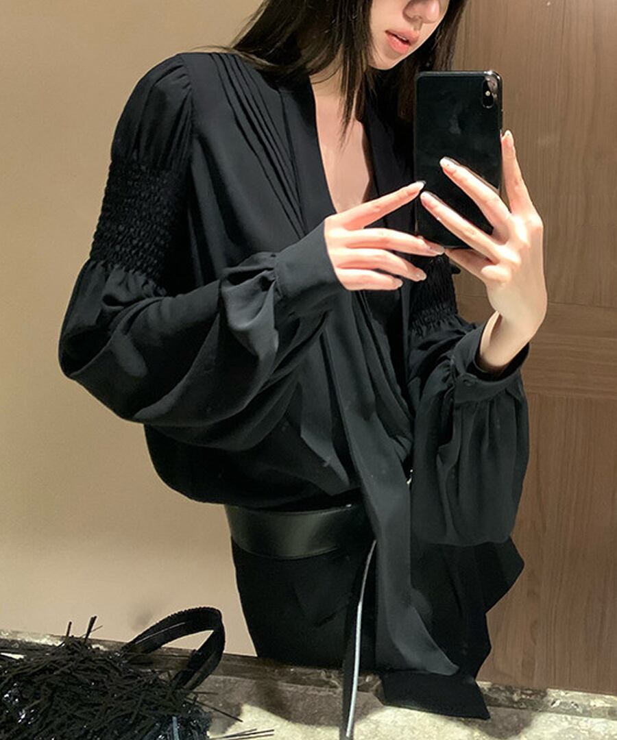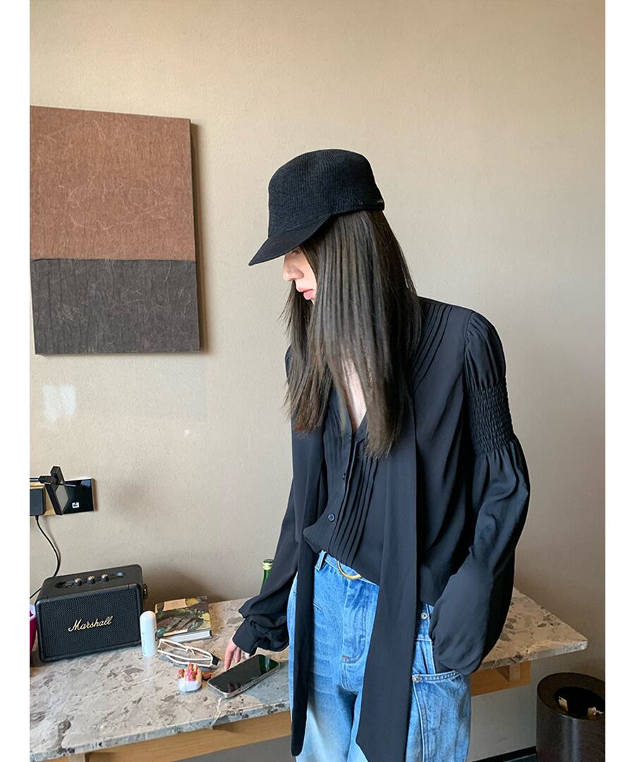 Vネック◆リボンブラウス【t-10592】