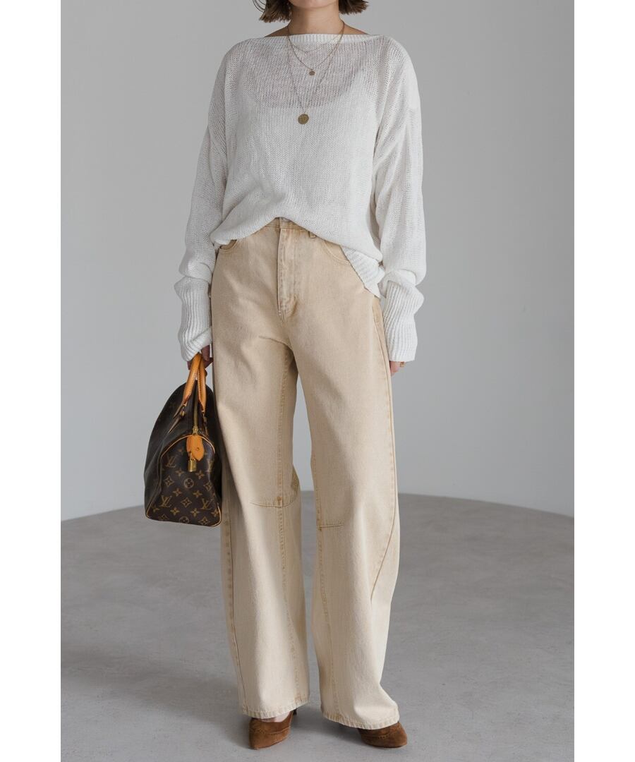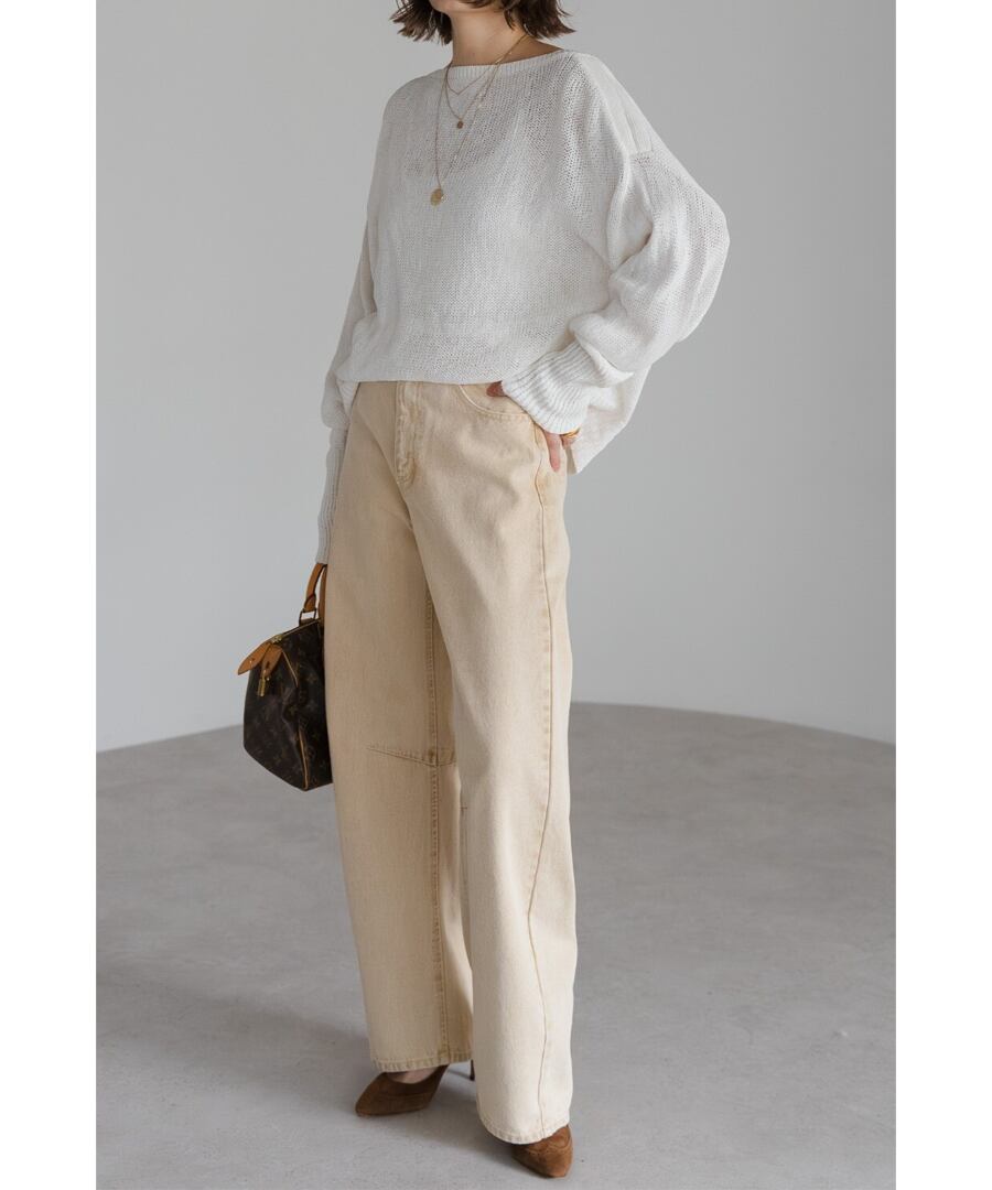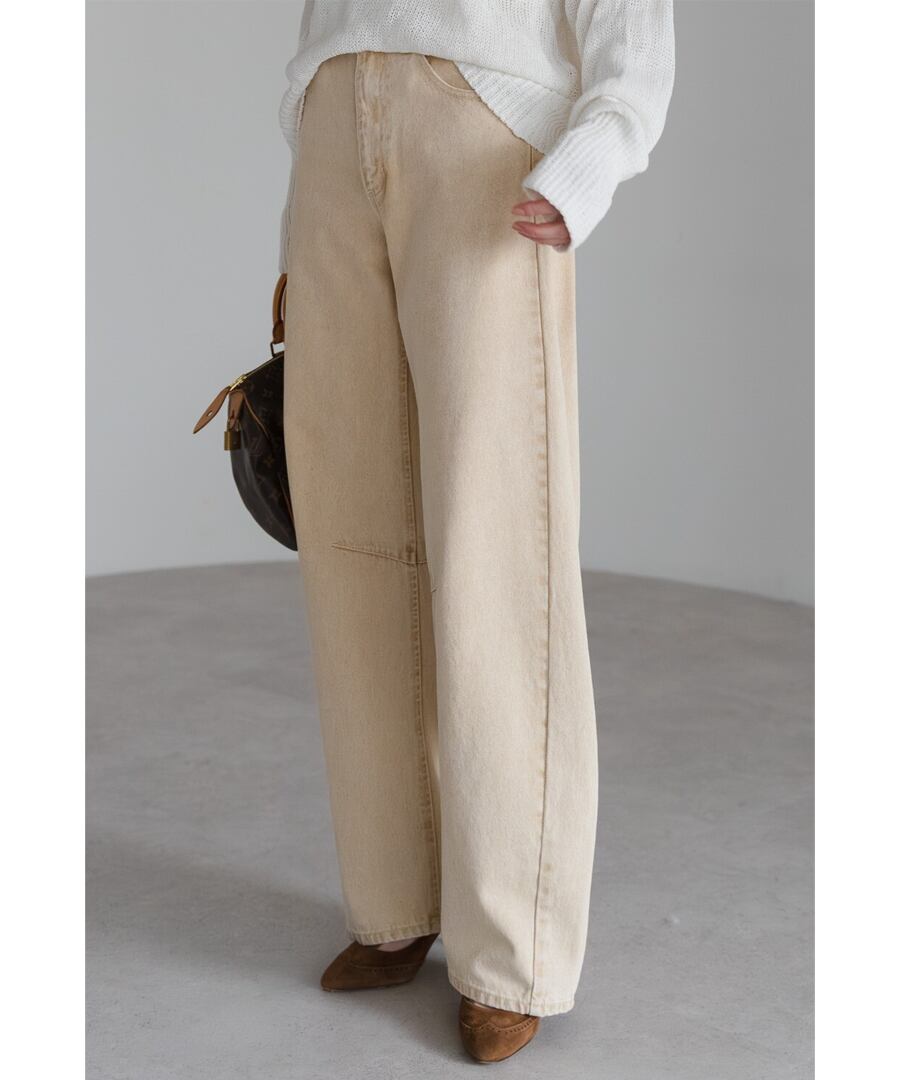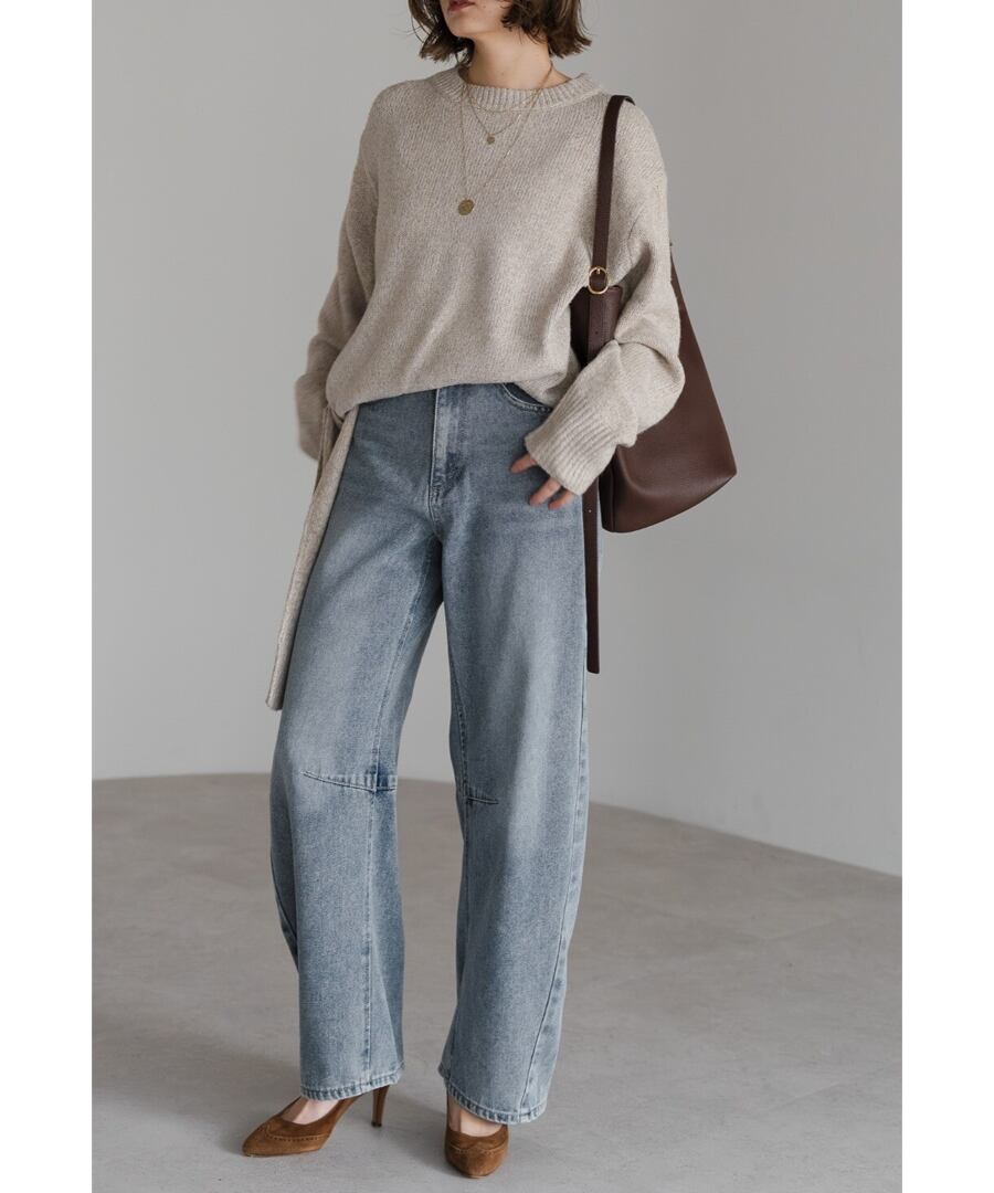 膝下にかけて自然なカーブを描き、デニムに柔らかな印象を与えます。