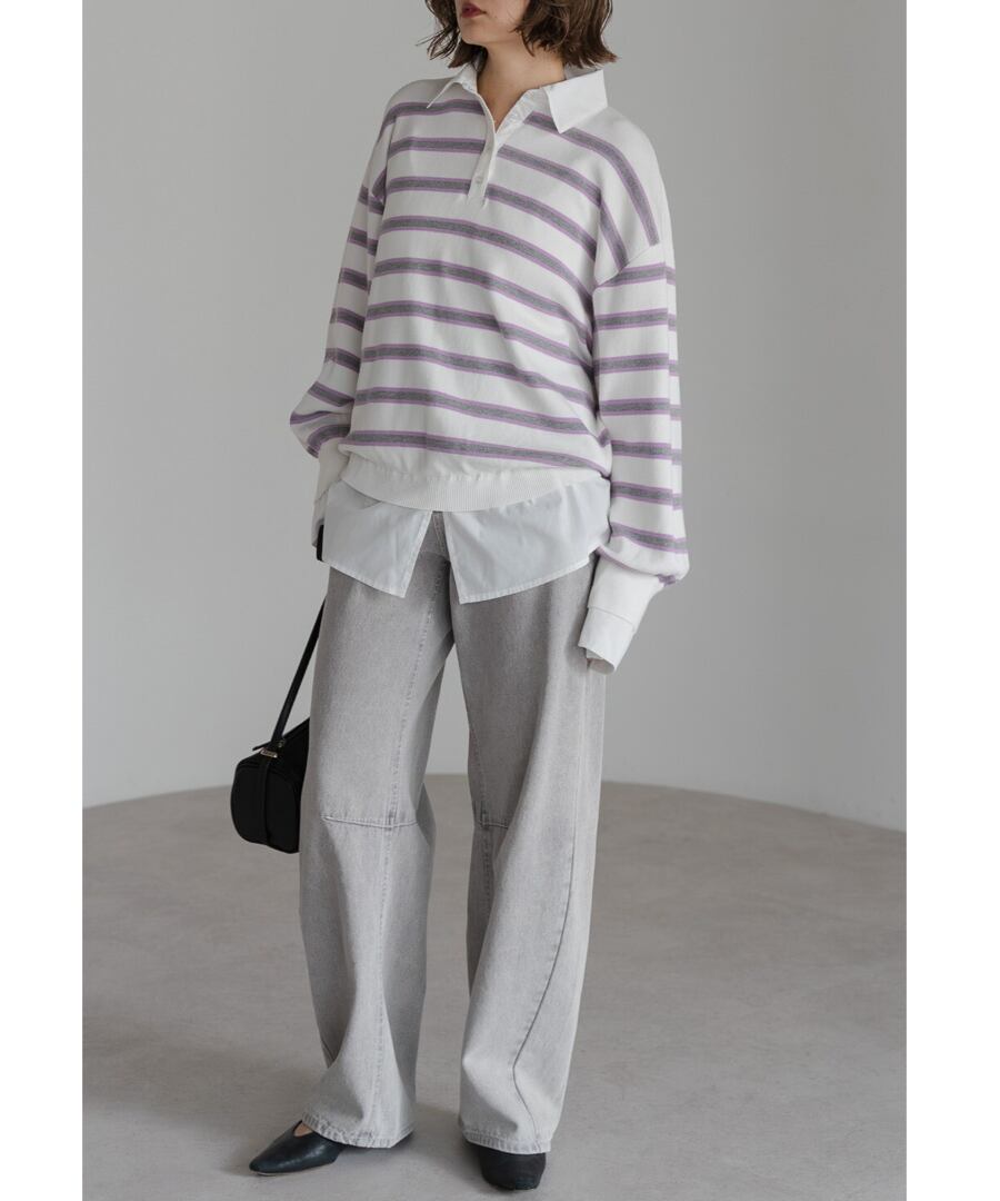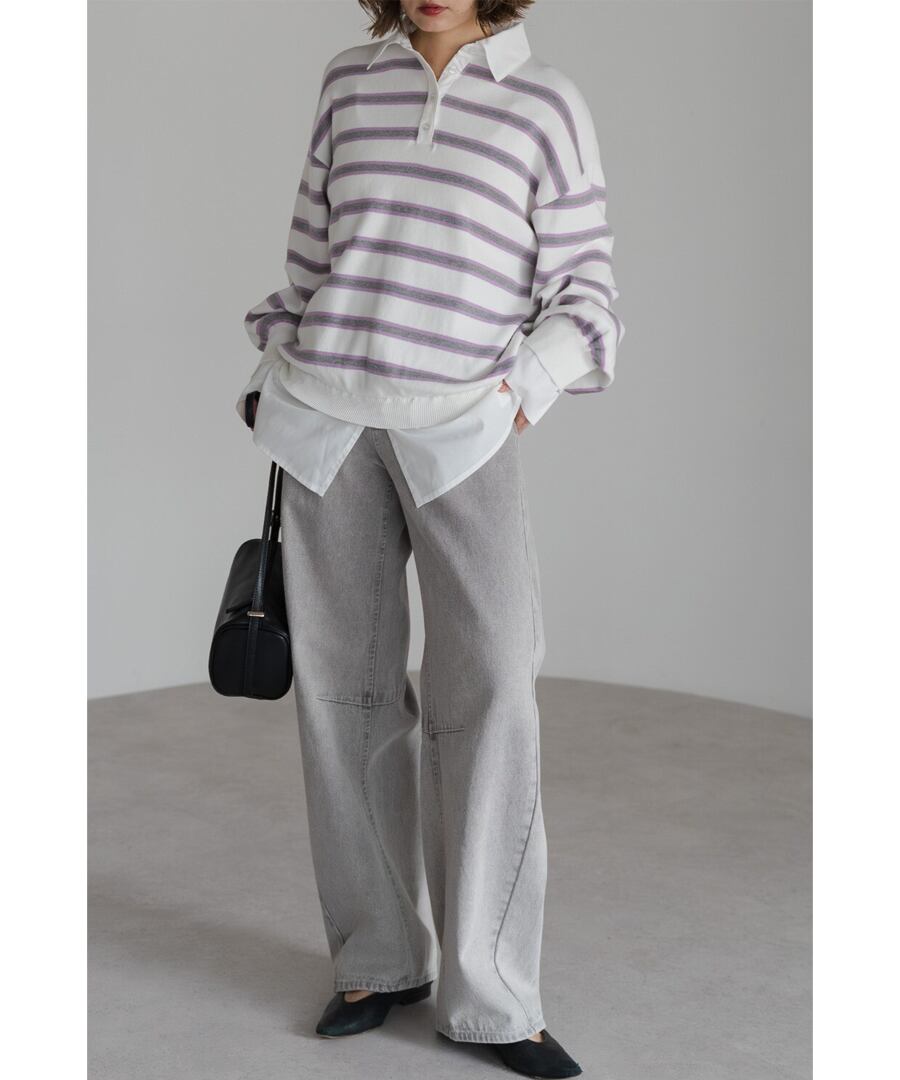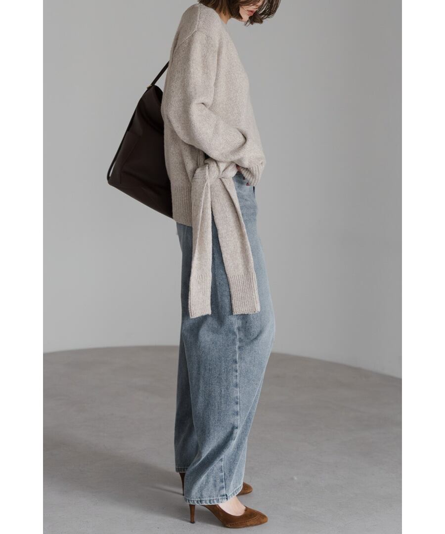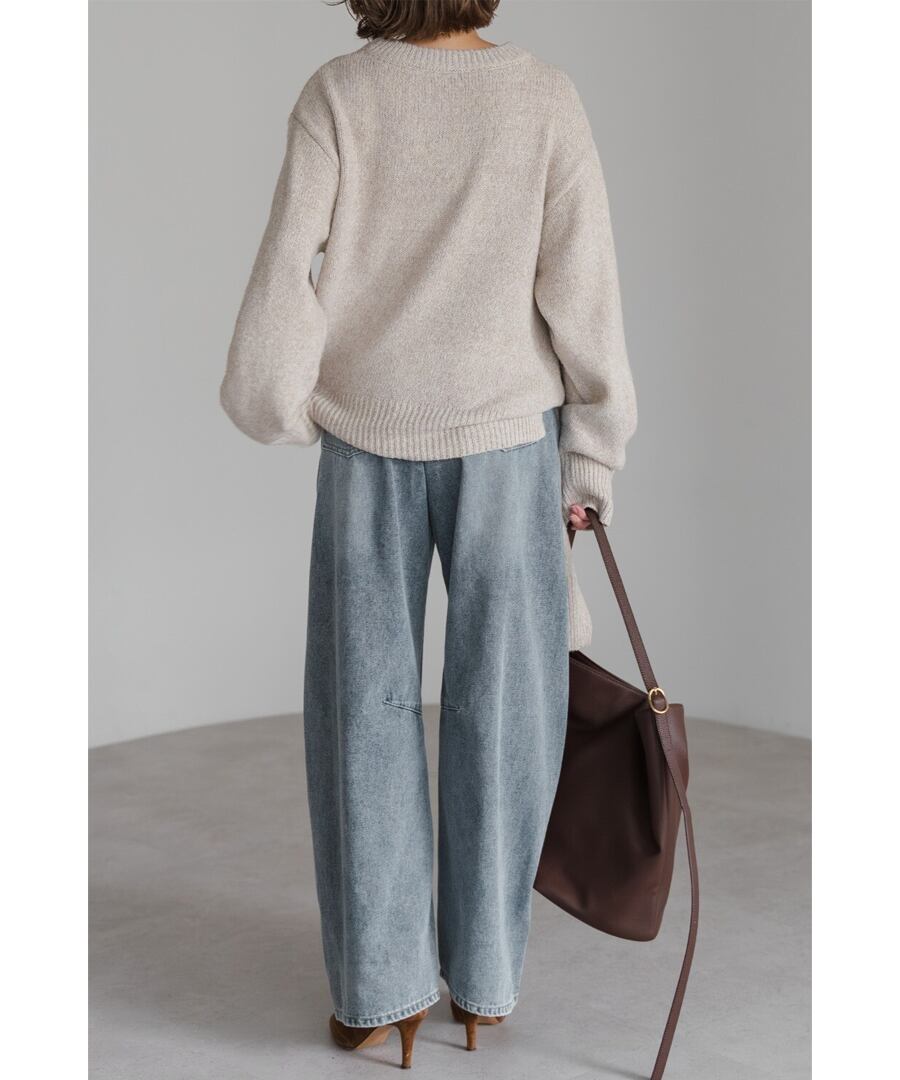 膝下にかけて自然なカーブを描き、デニムに柔らかな印象を与えます。