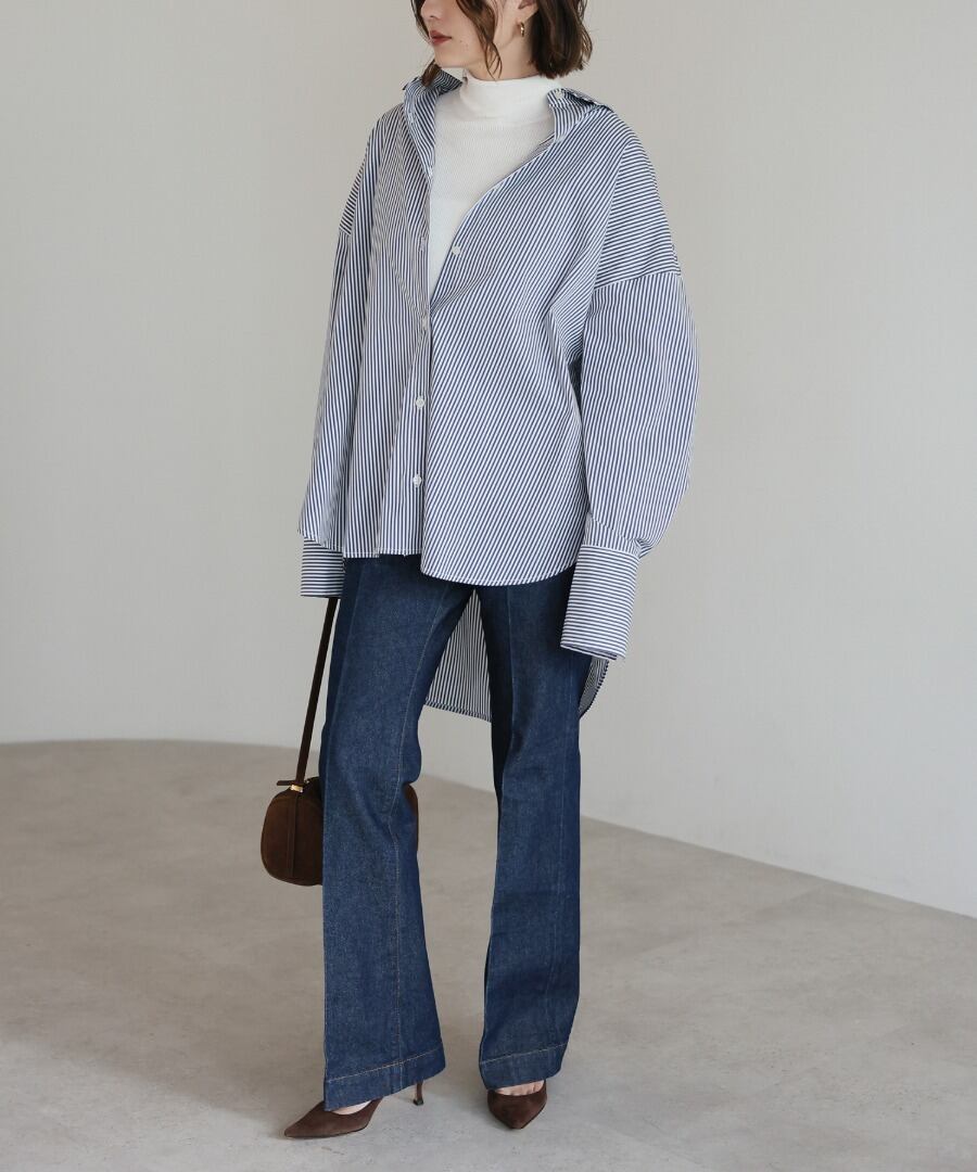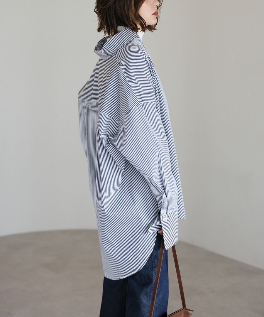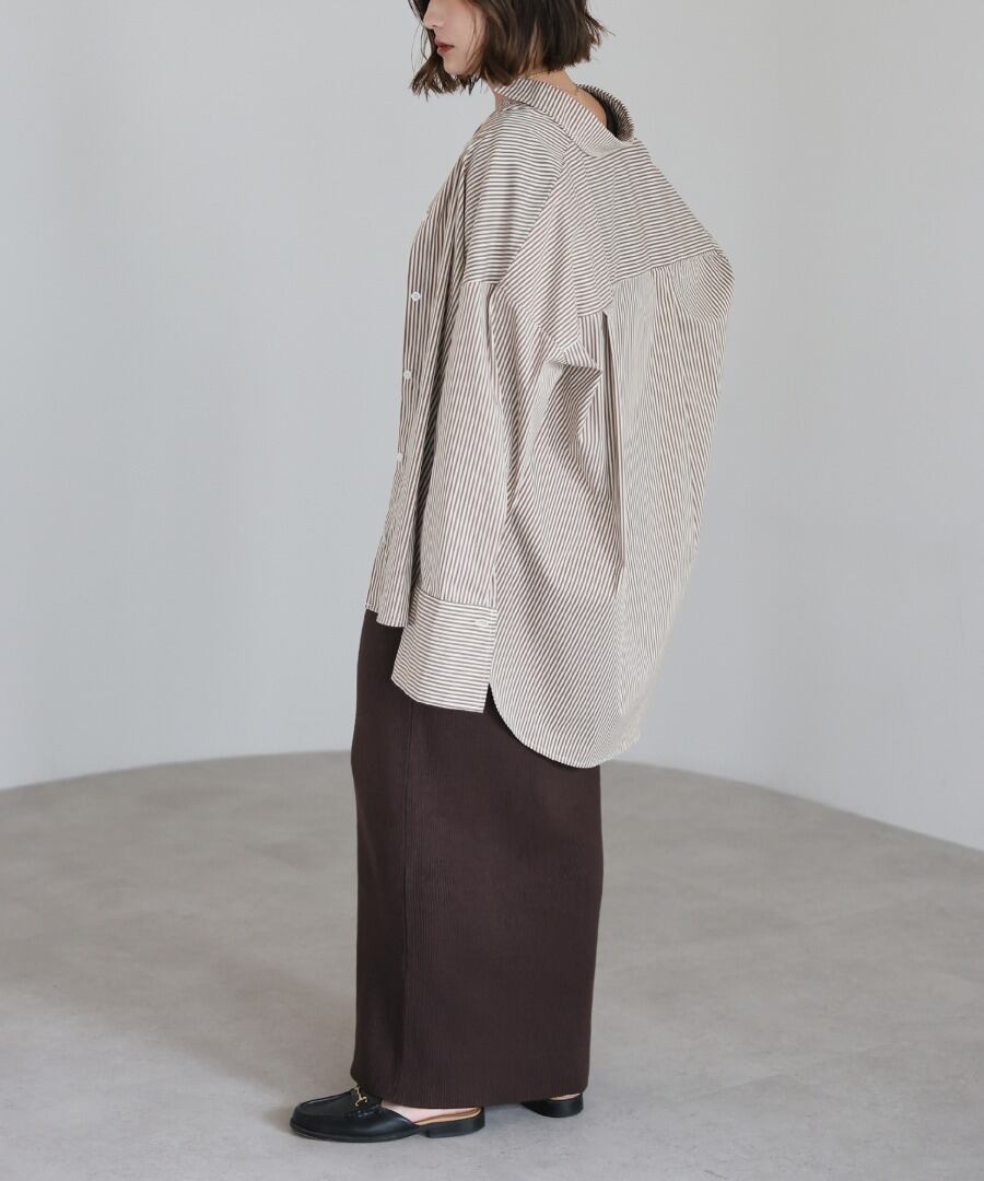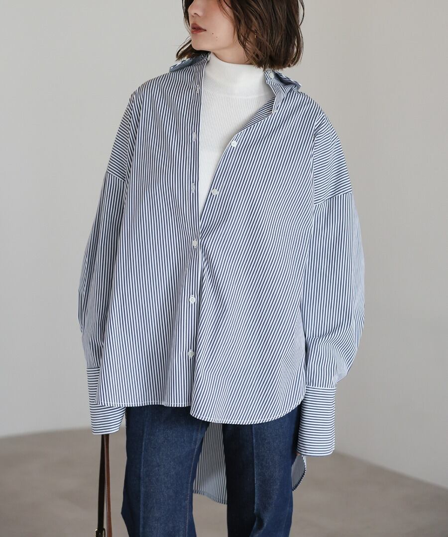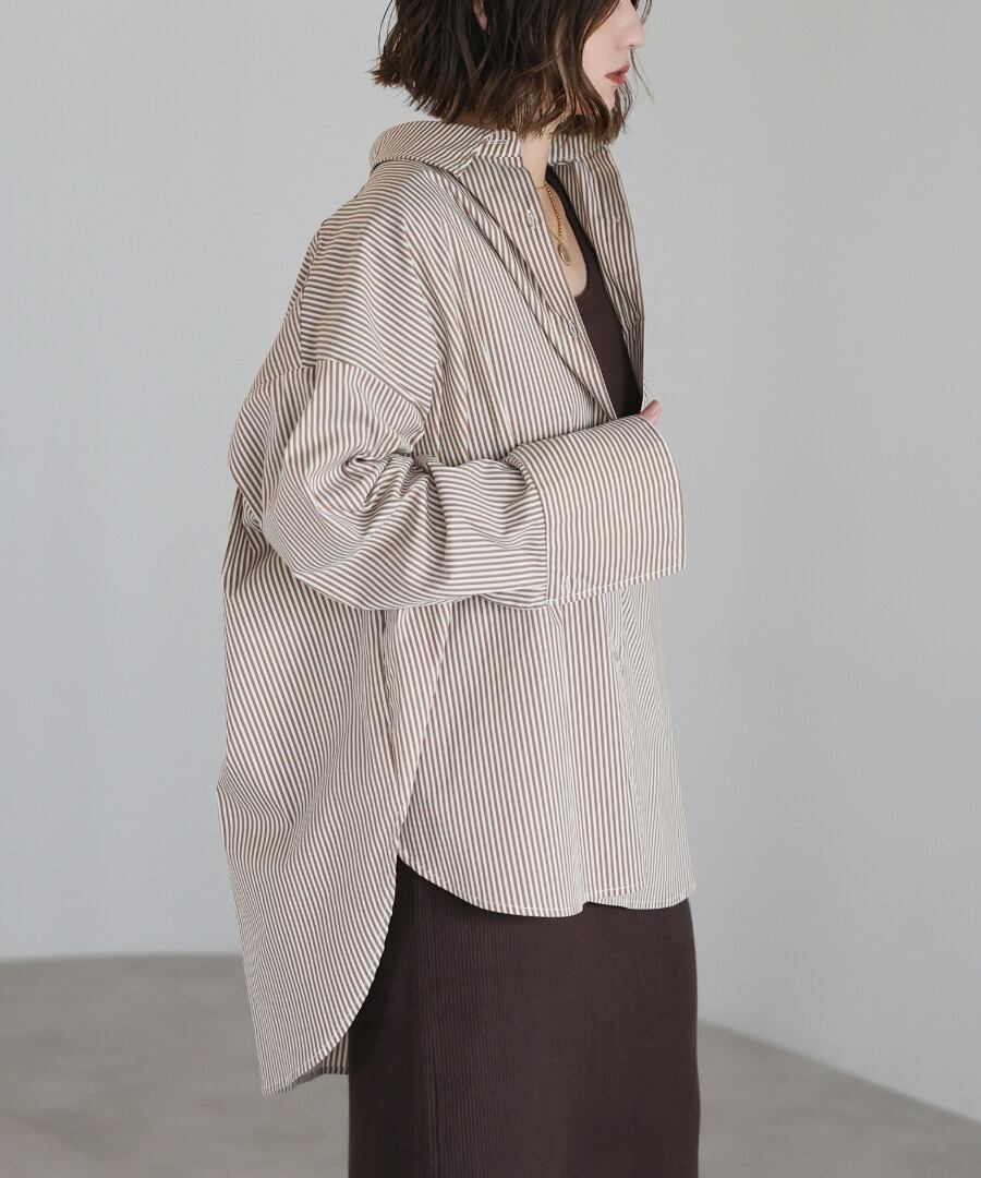 抜け感シルエットが魅力。大人のストライプオーバーシャツ