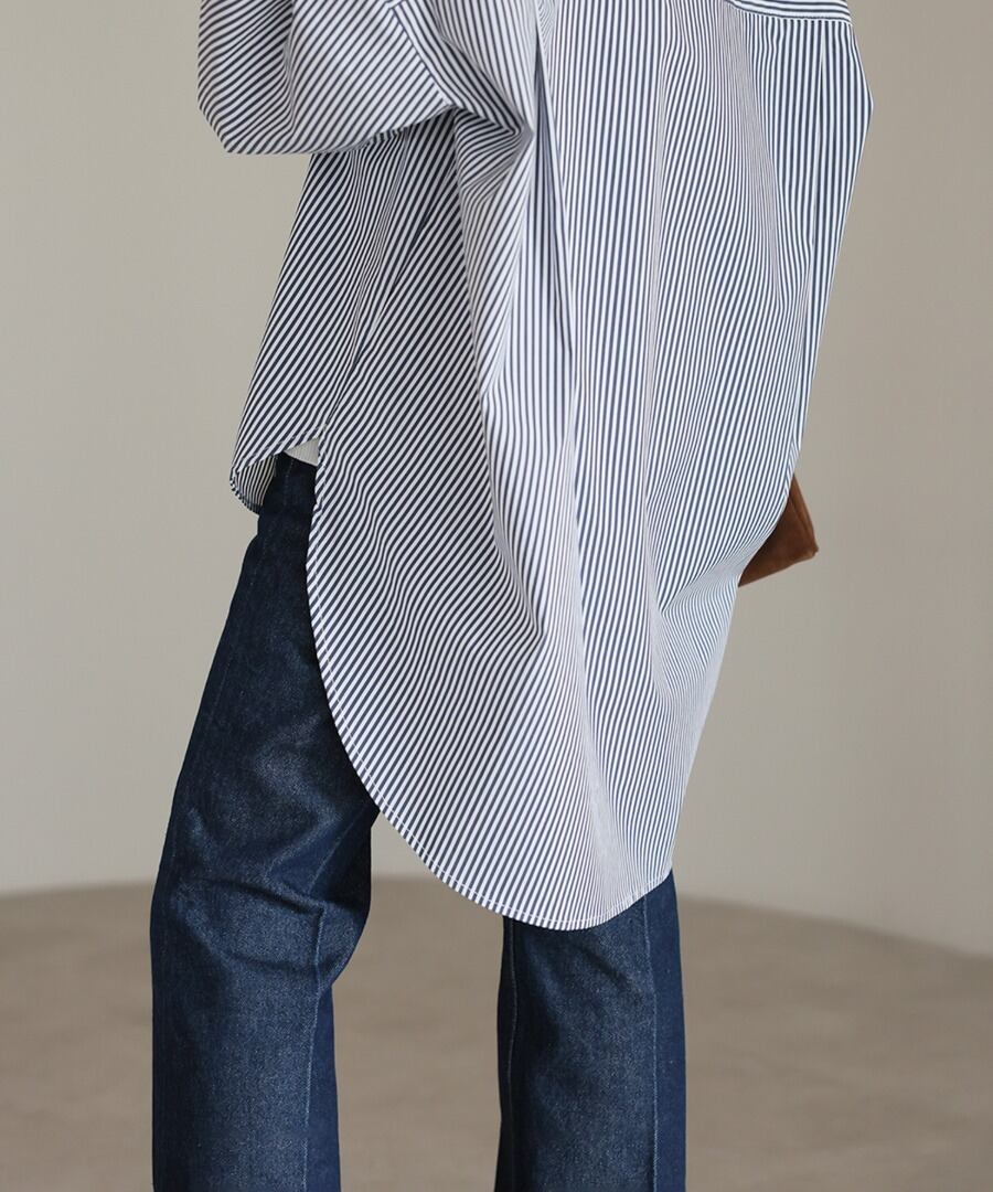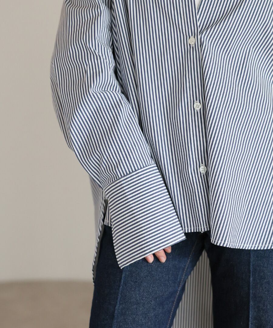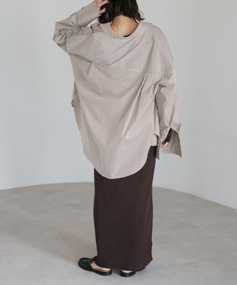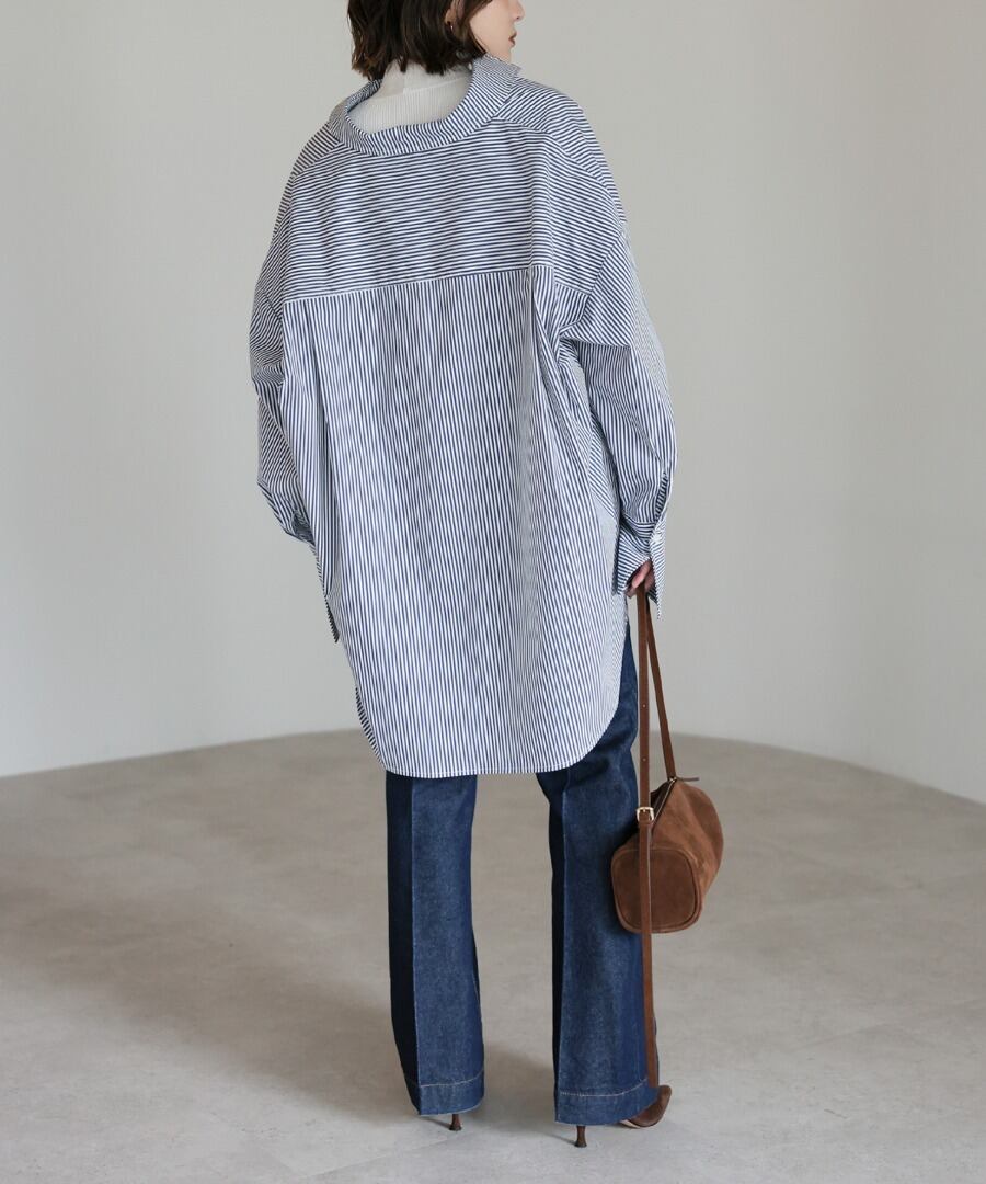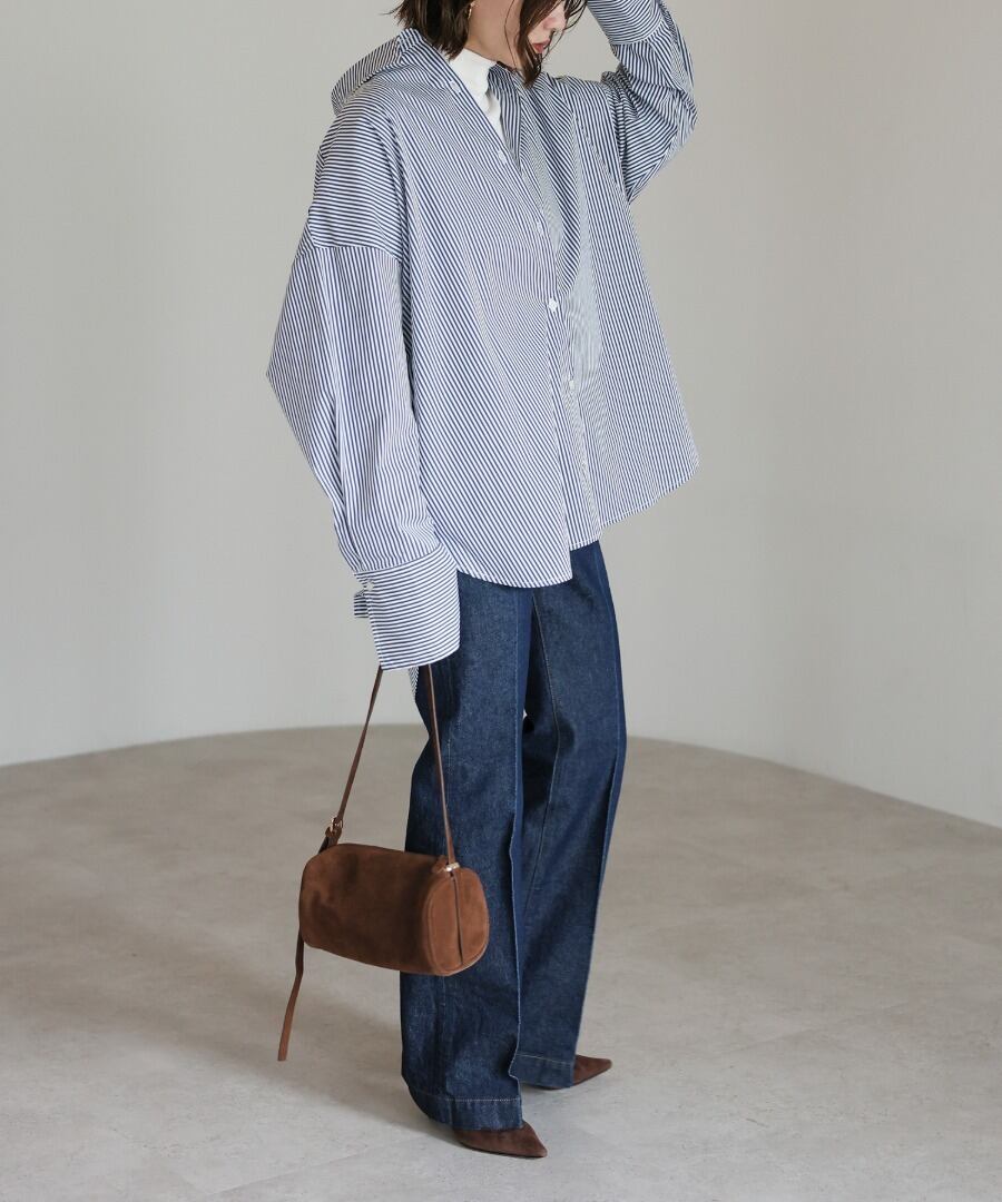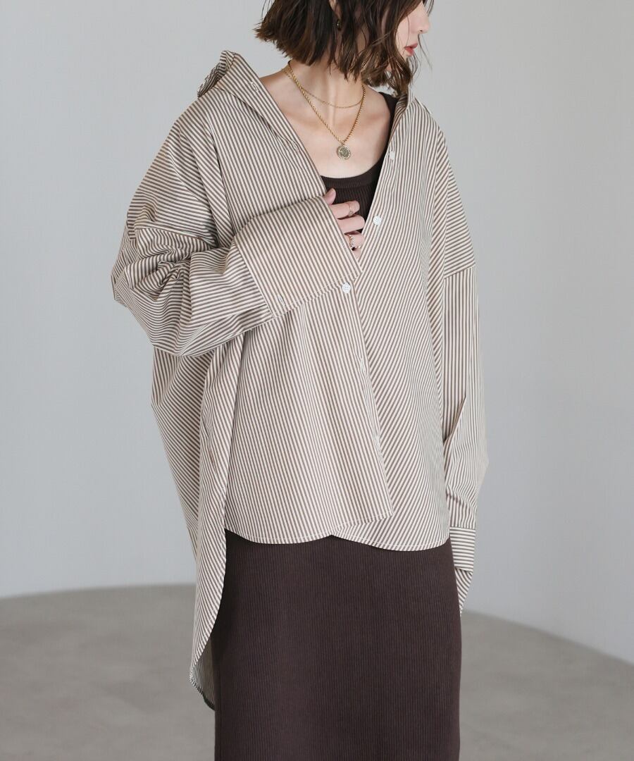 抜け感シルエットが魅力。大人のストライプオーバーシャツ