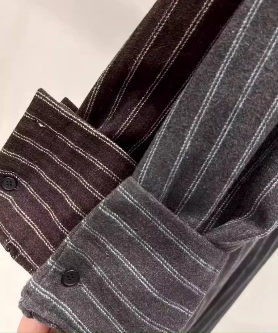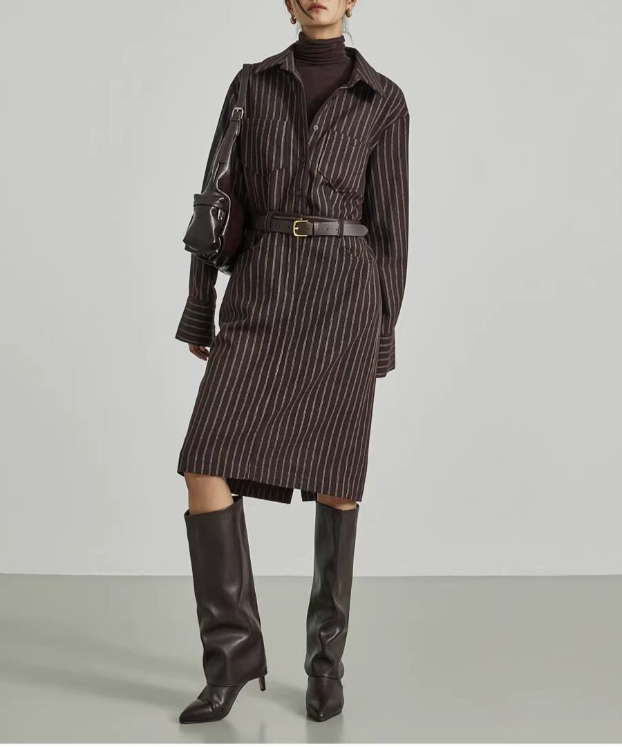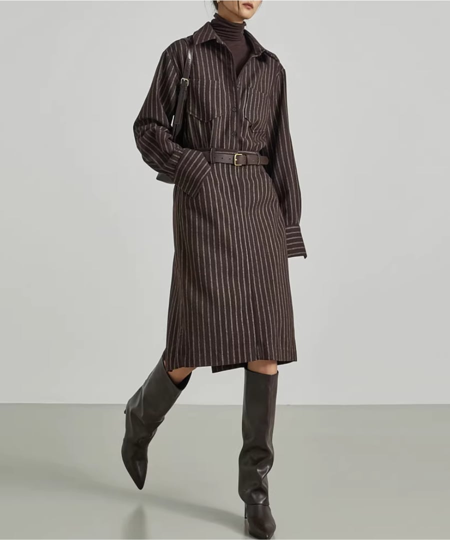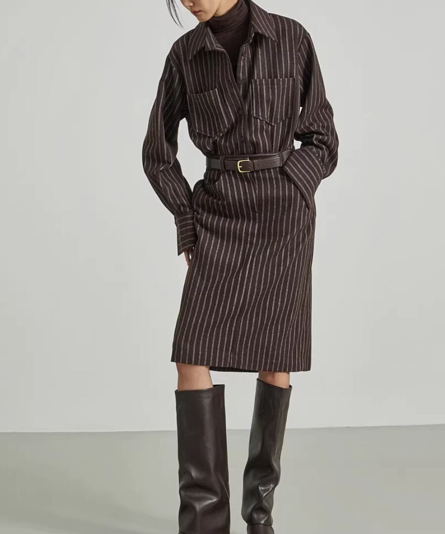 ストライプシャツワンピ◆ウール40%【w-30119】