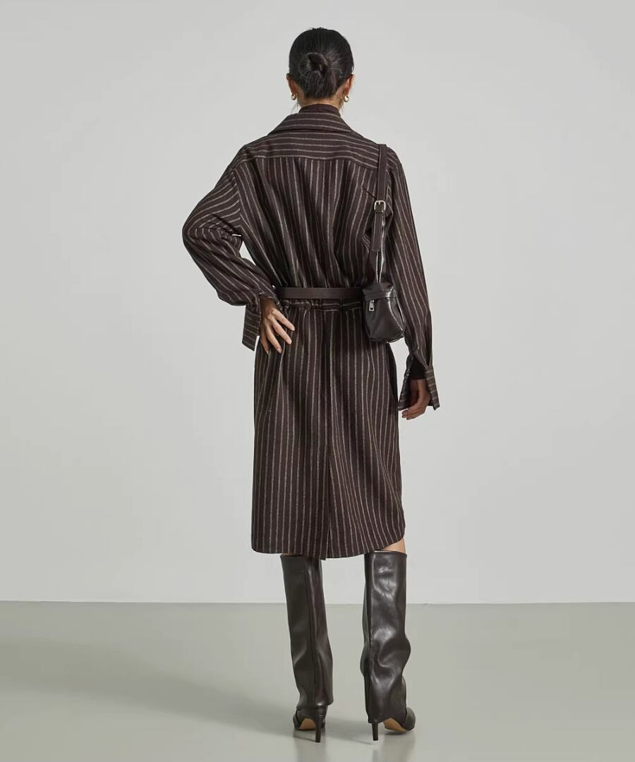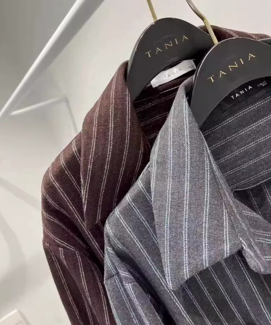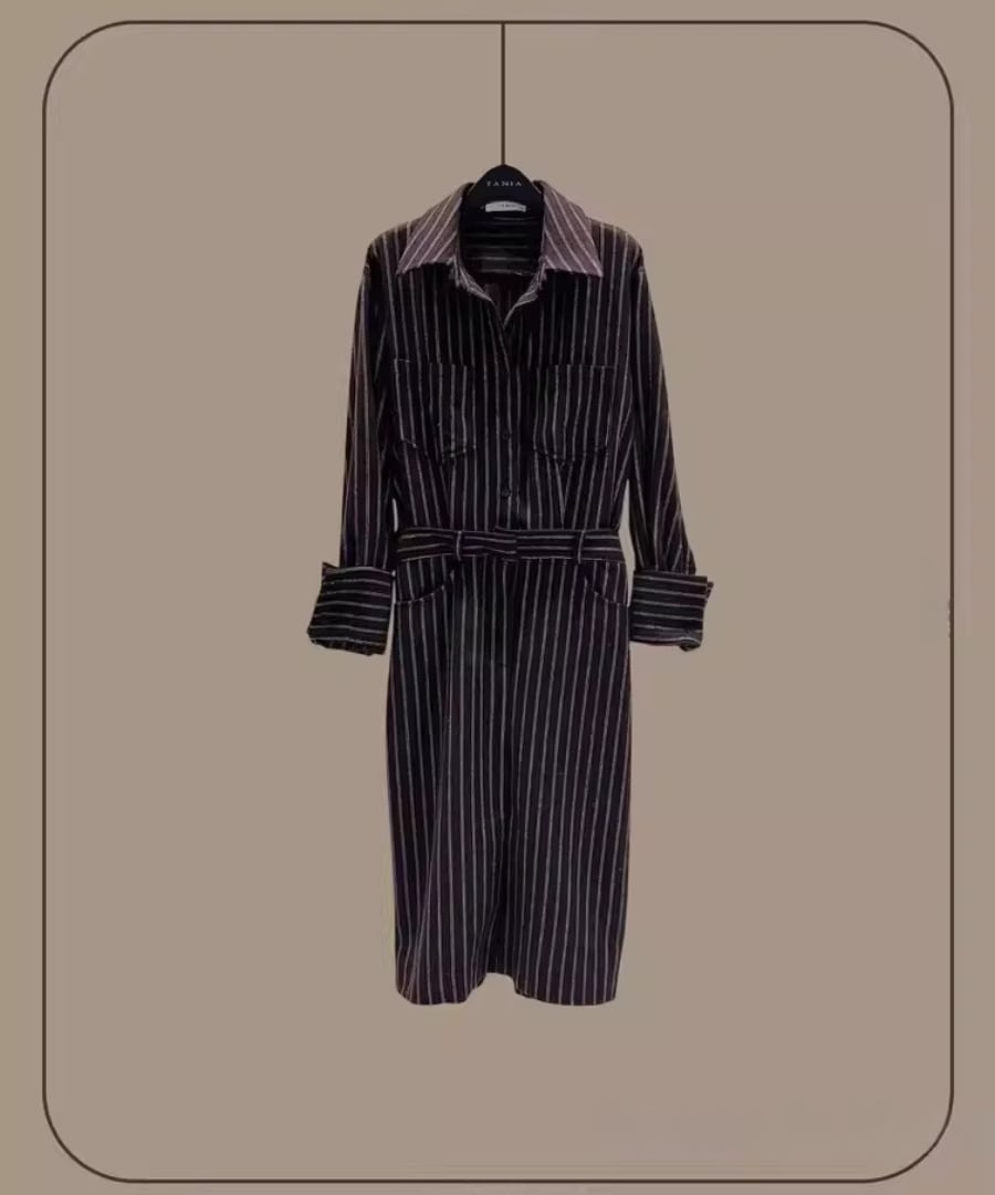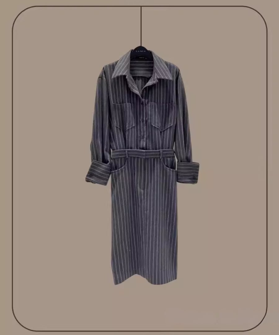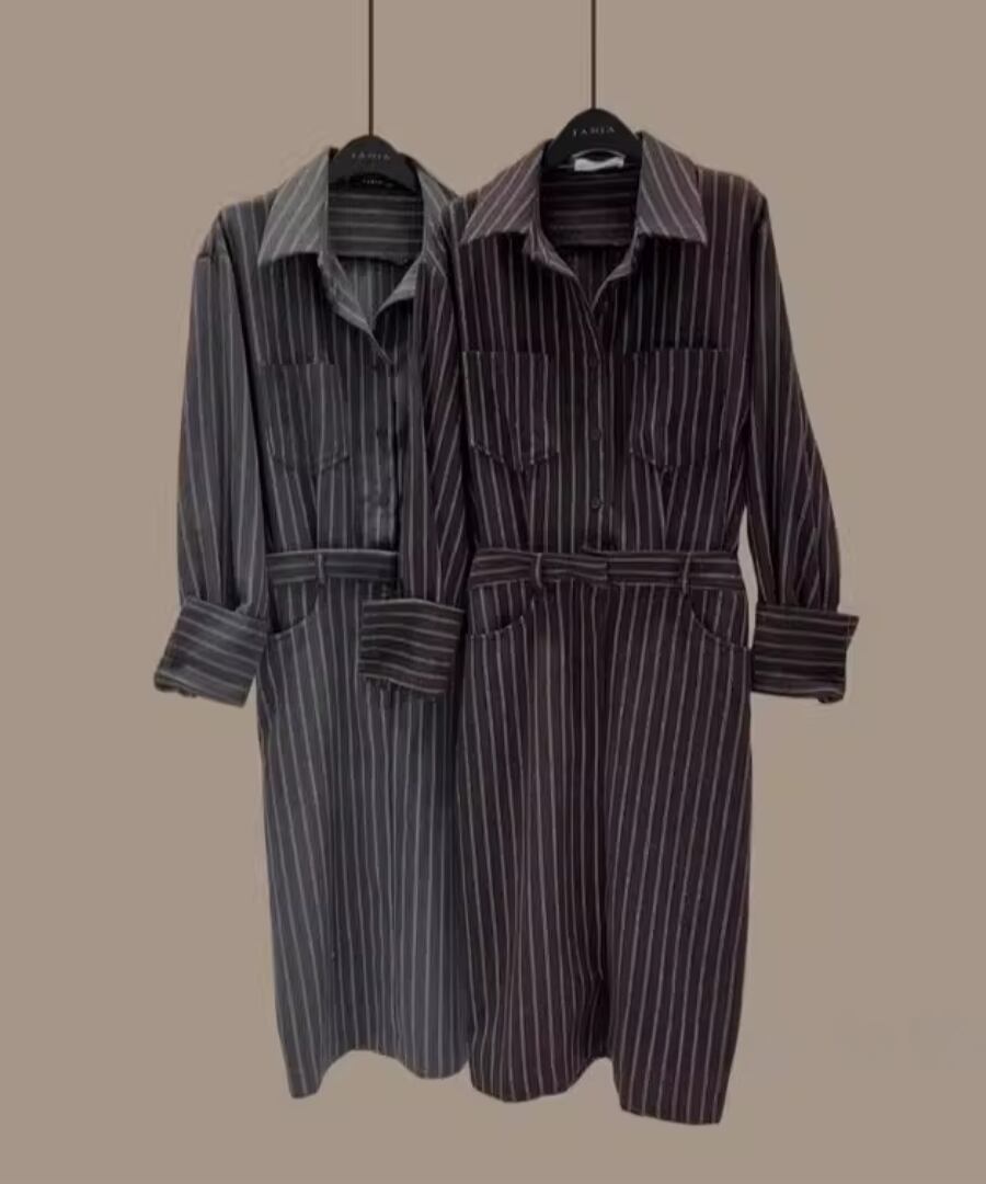 ストライプシャツワンピ◆ウール40%【w-30119】