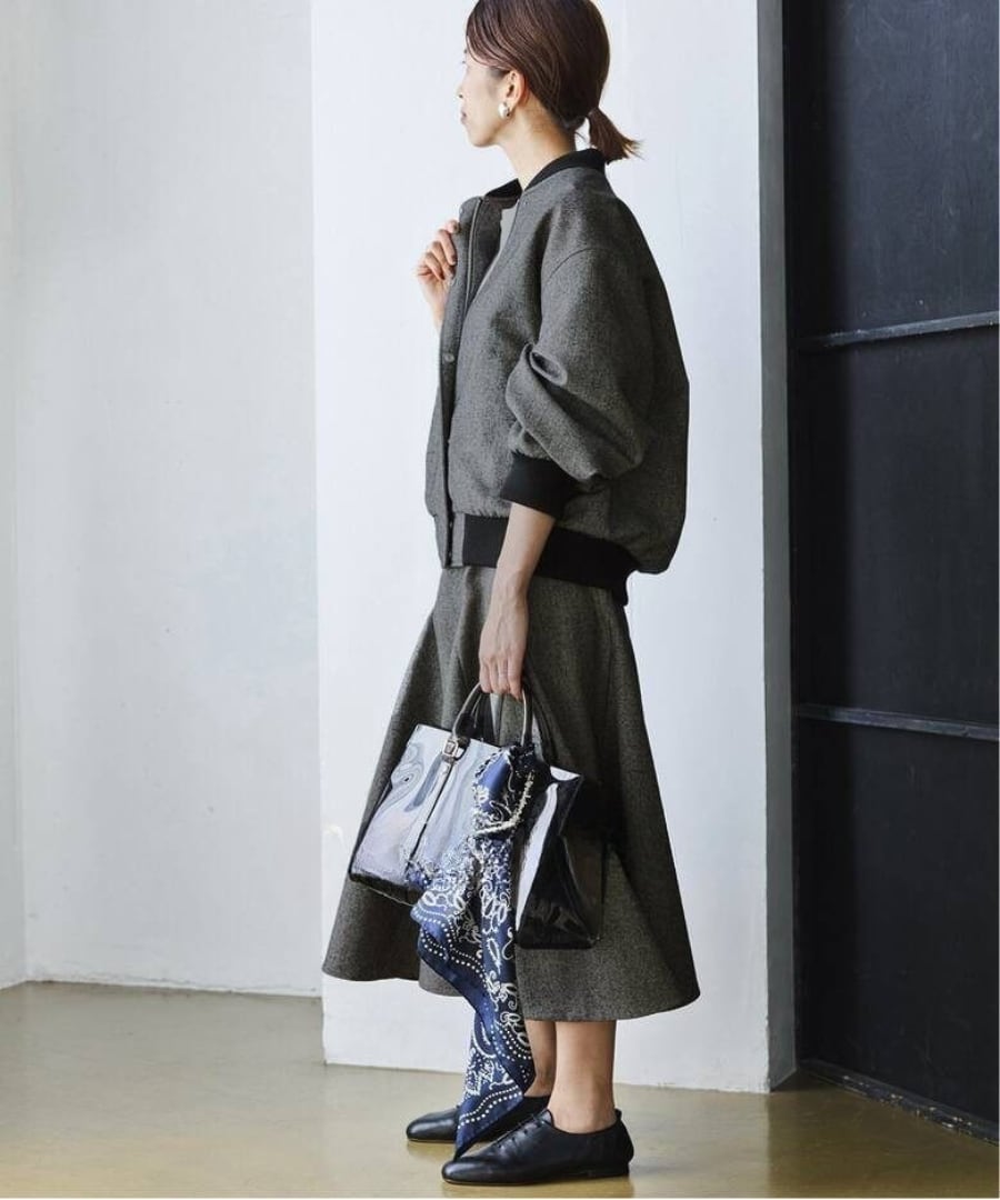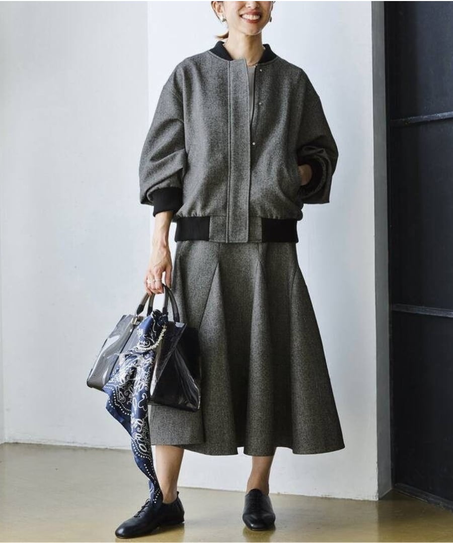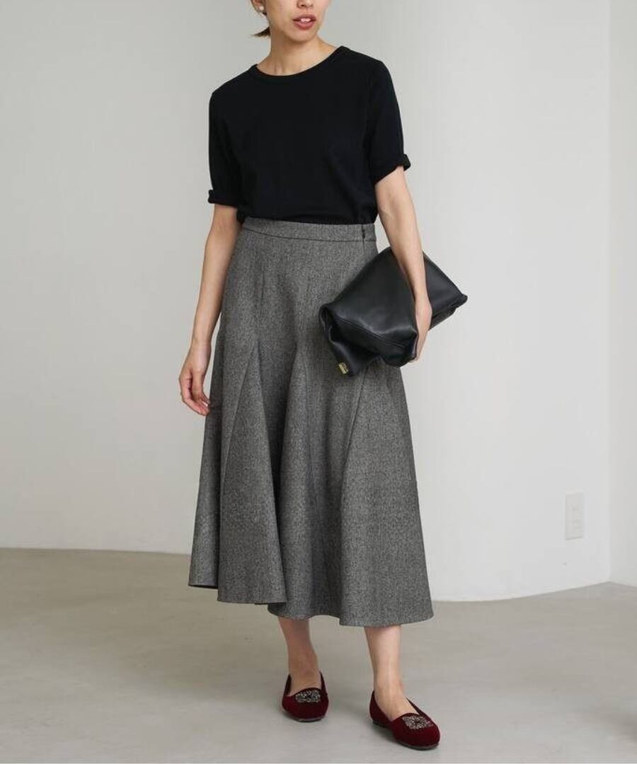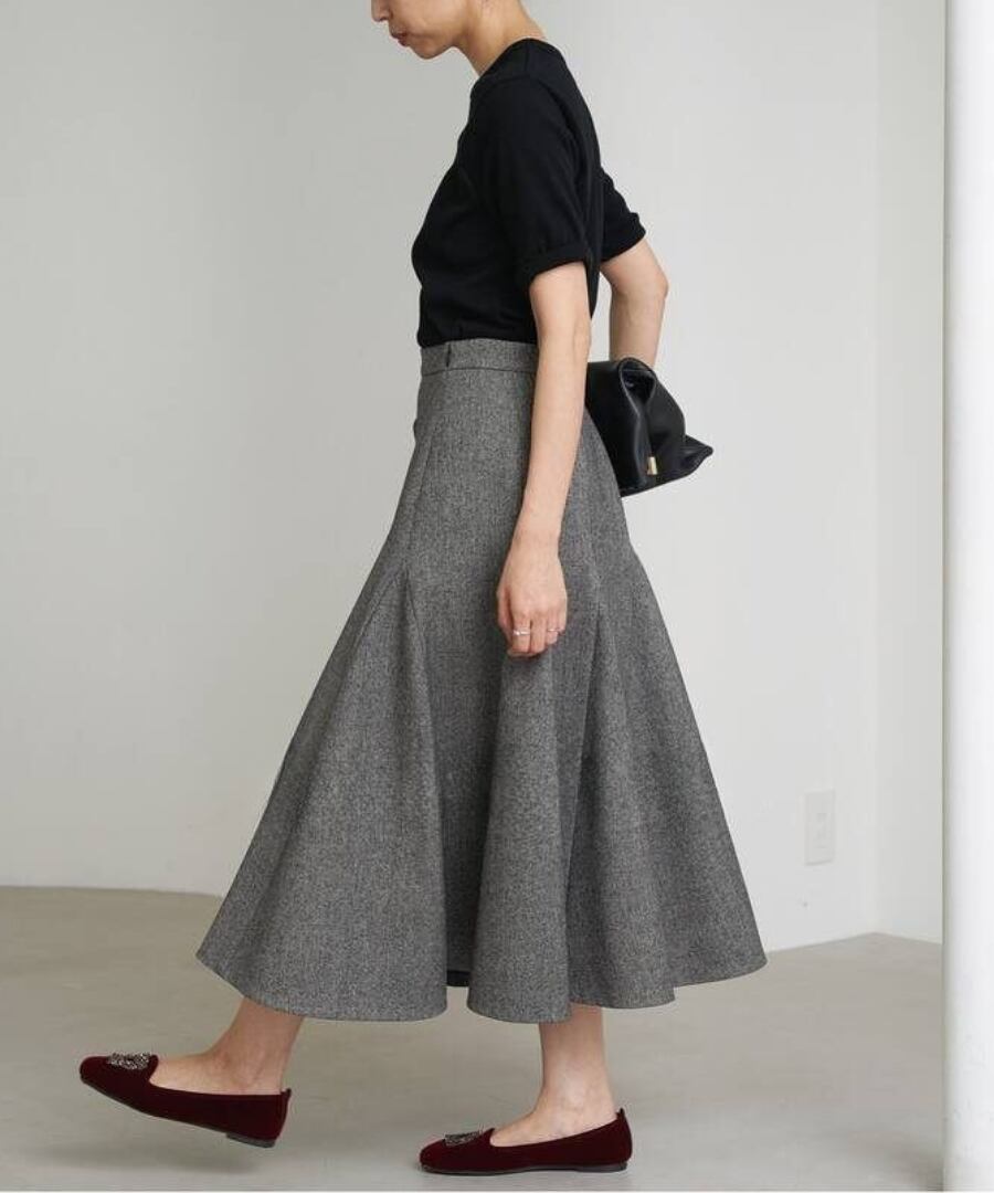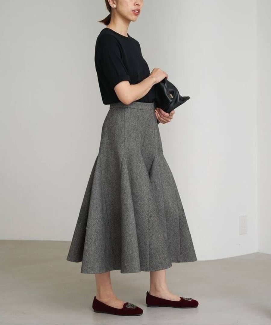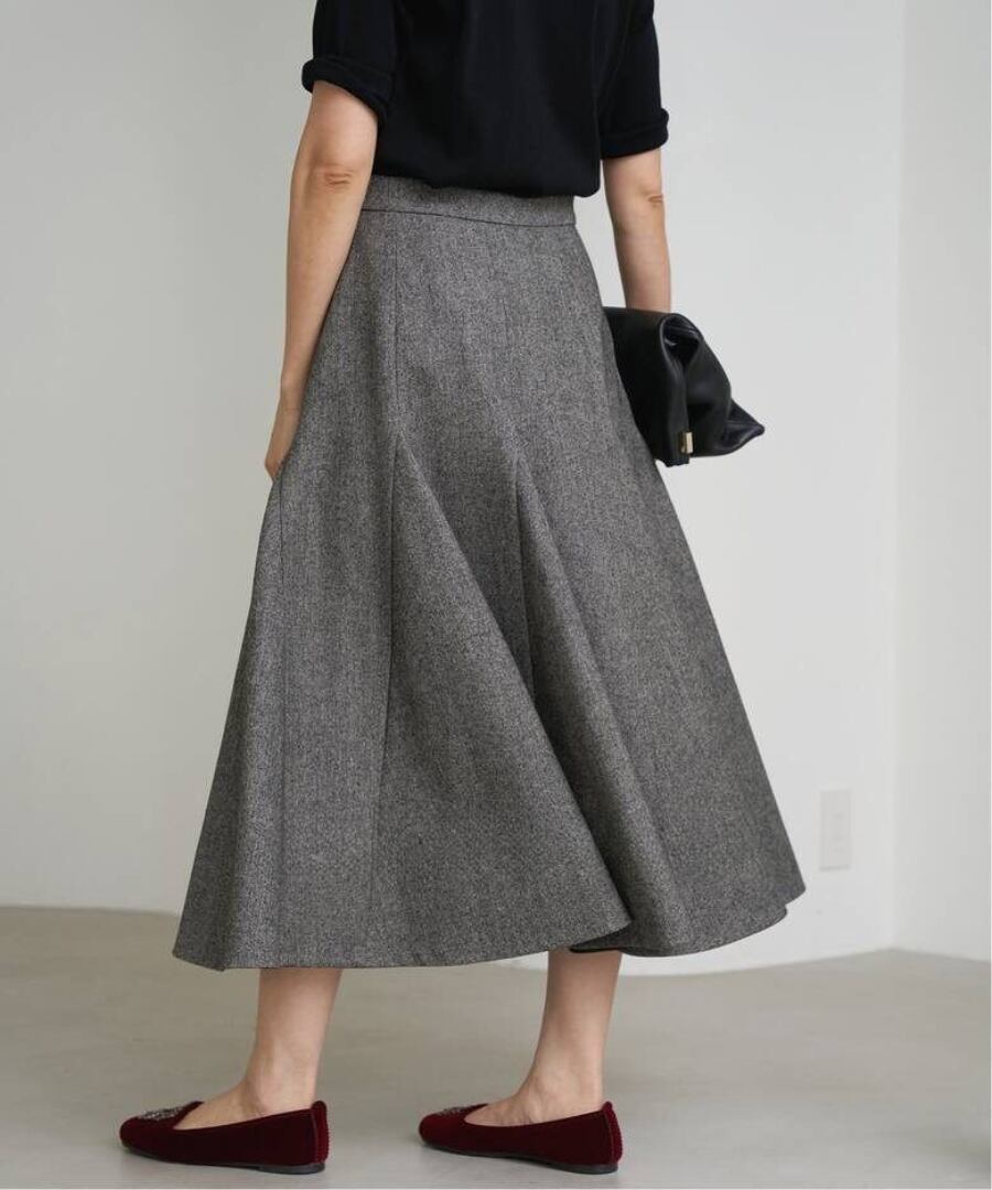ツイードスカートは、暖かさを確保しつつ、しなやかな落ち感が女性らしい印象を演出します。
