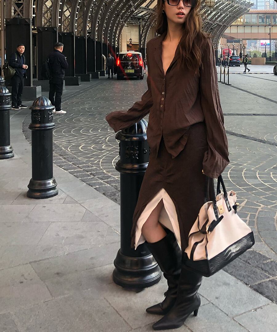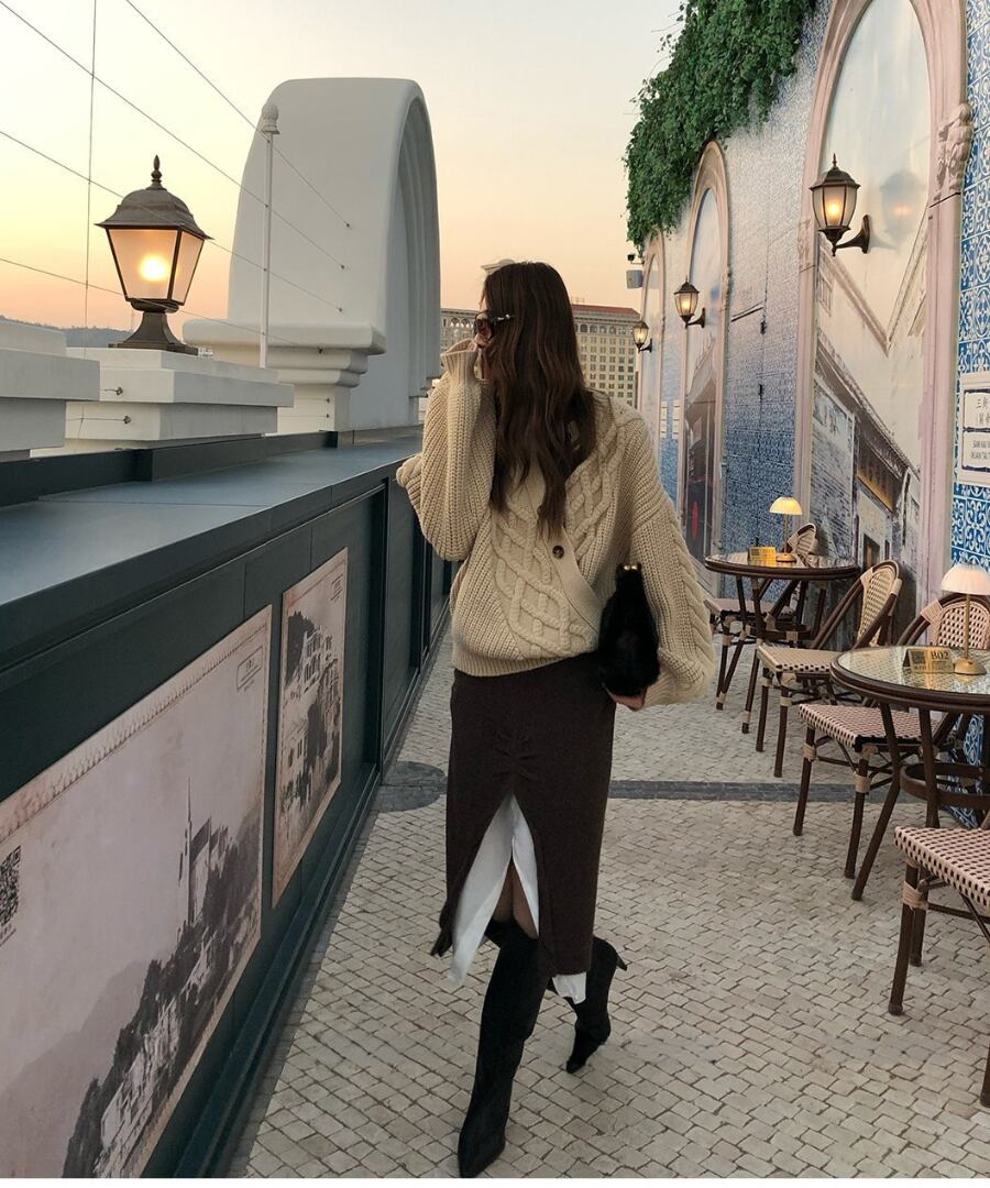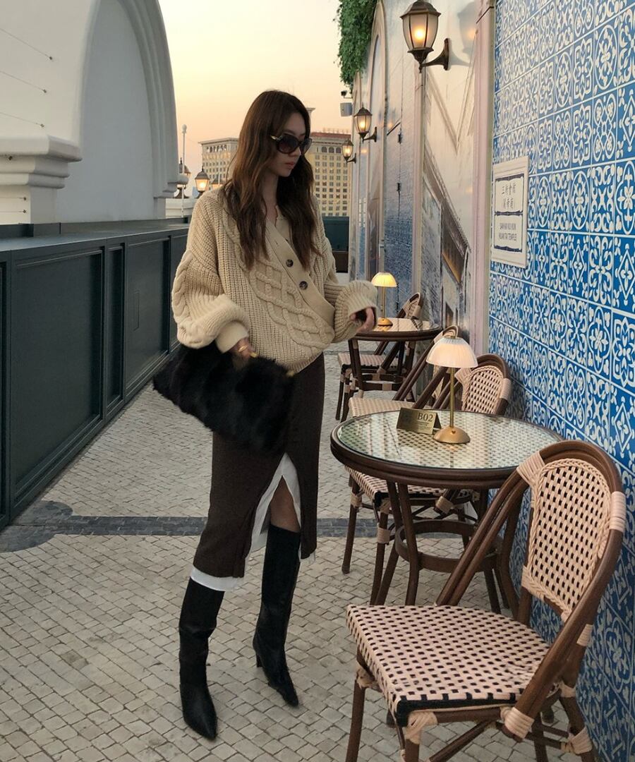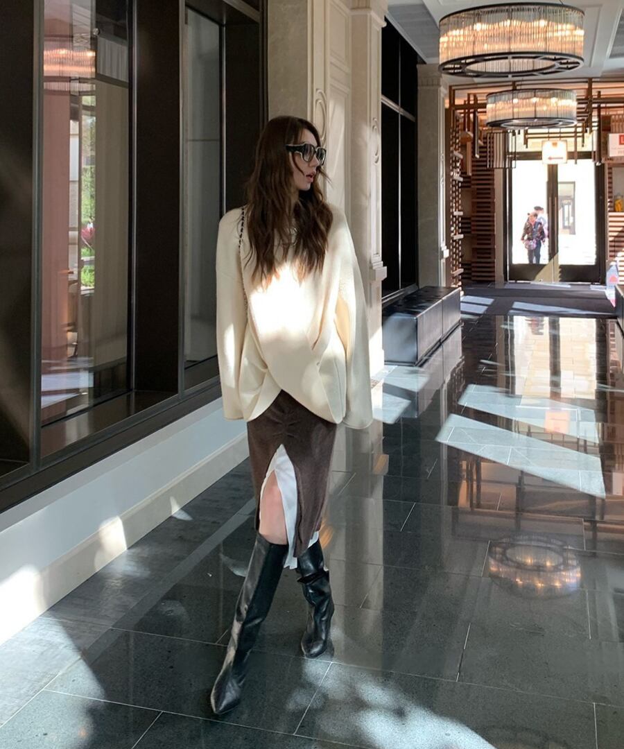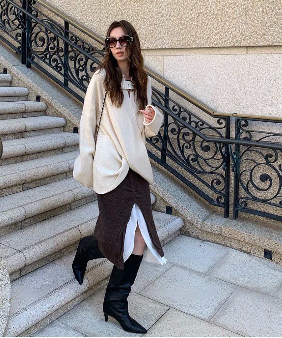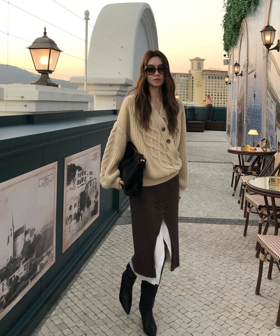 心地よい温もりを感じさせながら、フロントスリットで肌見せ感を演出。