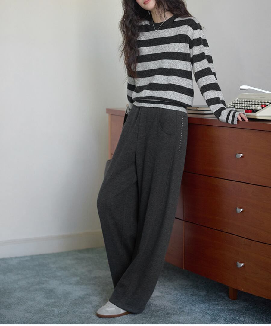 ステッチデザイン◆裏起毛カジュアルパンツ【p-20254】