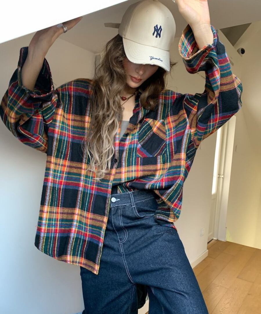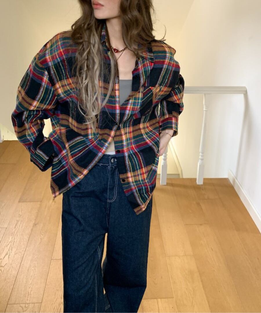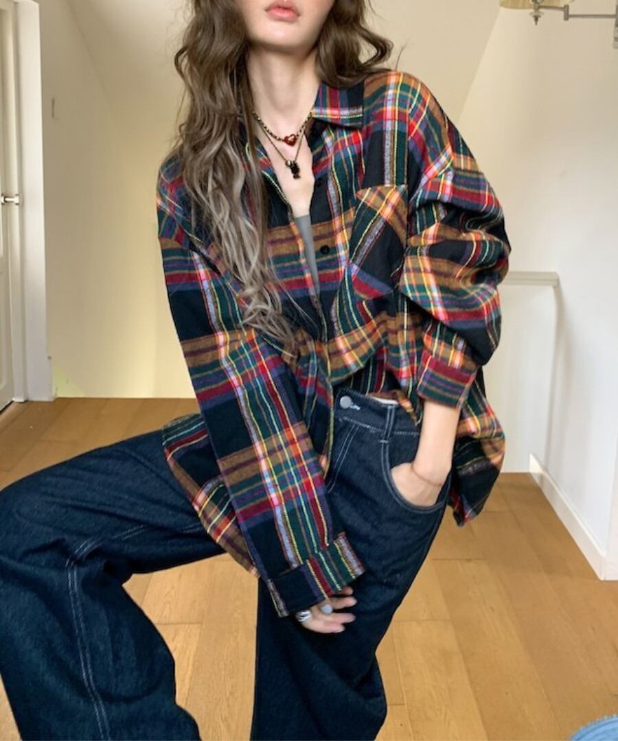 カジュアルな着こなしを楽しめるチェック柄の長袖シャツ。