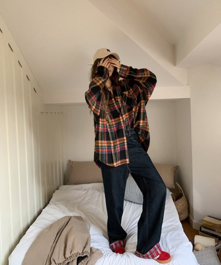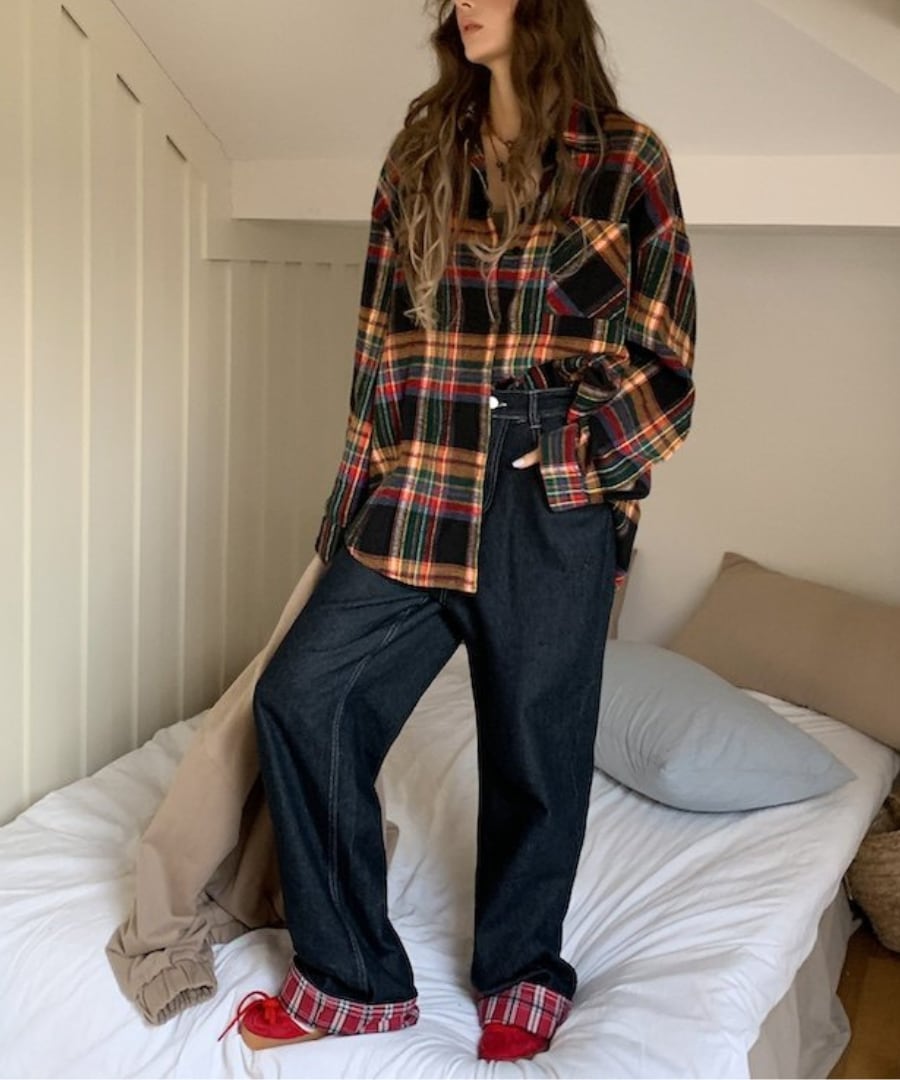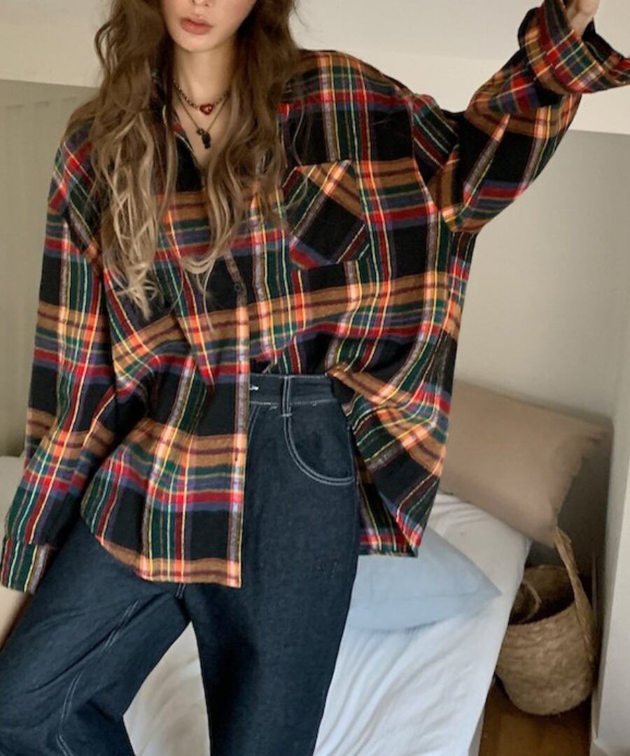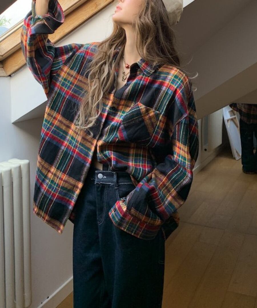 カジュアルな着こなしを楽しめるチェック柄の長袖シャツ。