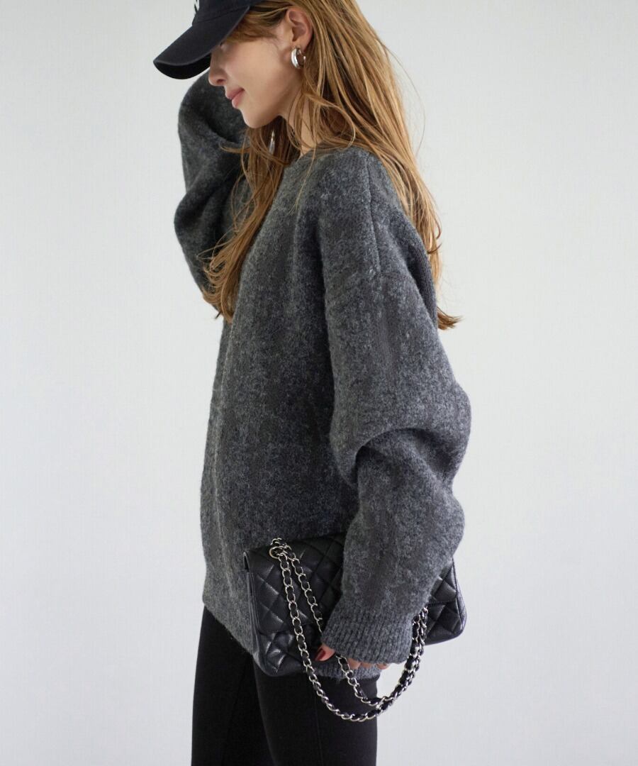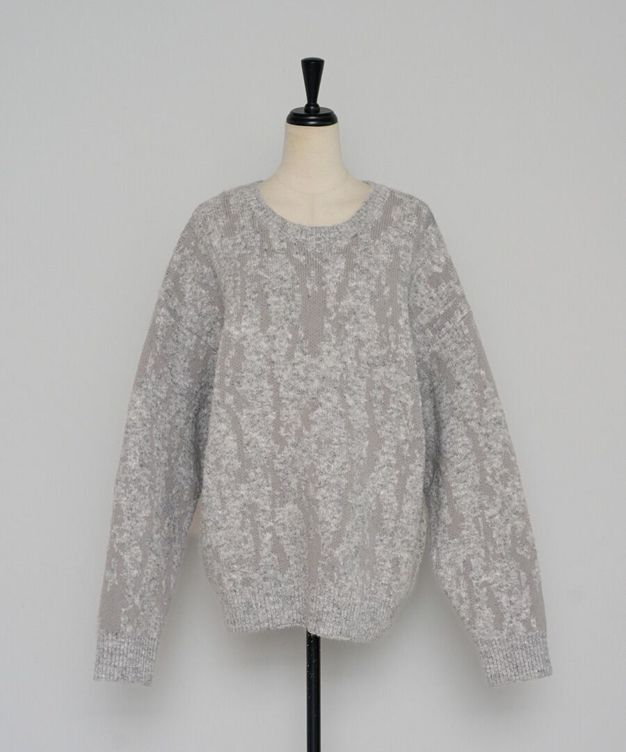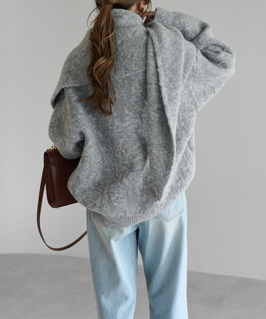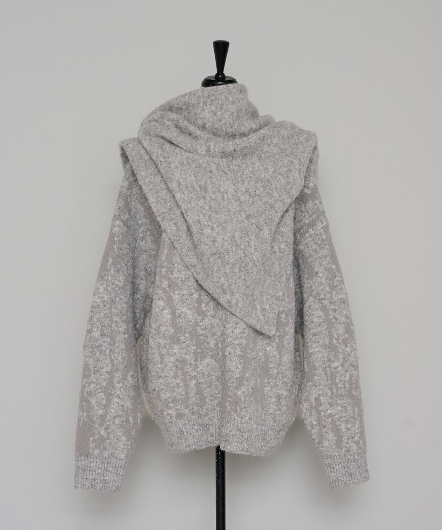 ニュアンス柄のニットとシンプルなストールが調和したセットアイテムです。