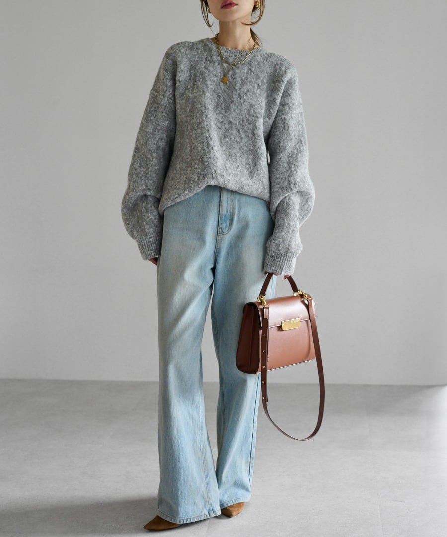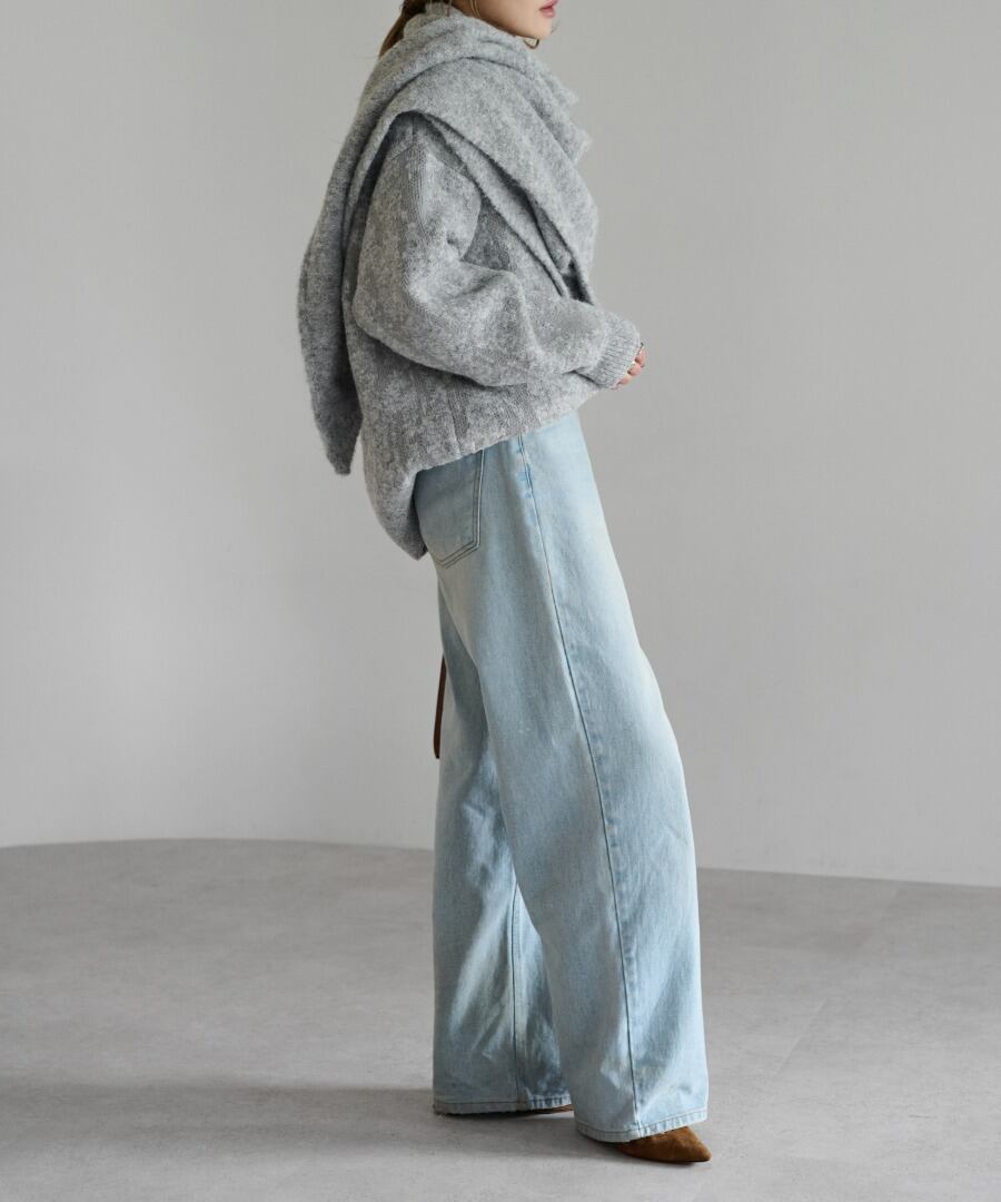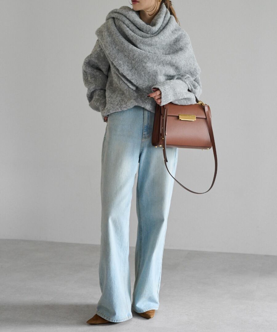 セットのストールで魅せる、ふわ軽ニットプルオーバー