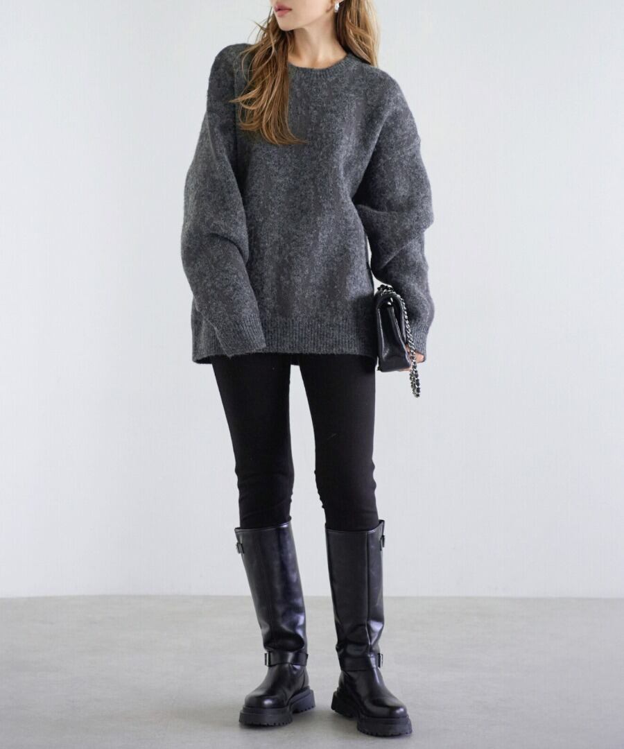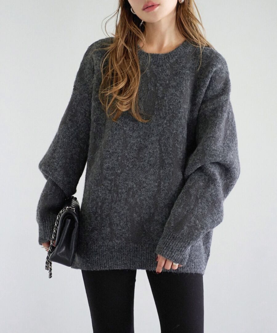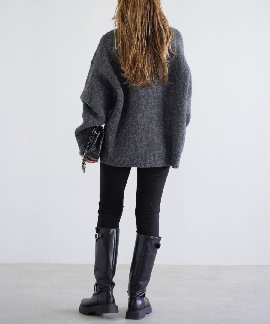 襟元・袖口・裾はリブ仕様でまとめ、全体のフォルムがすっきり整うよう仕上げました。