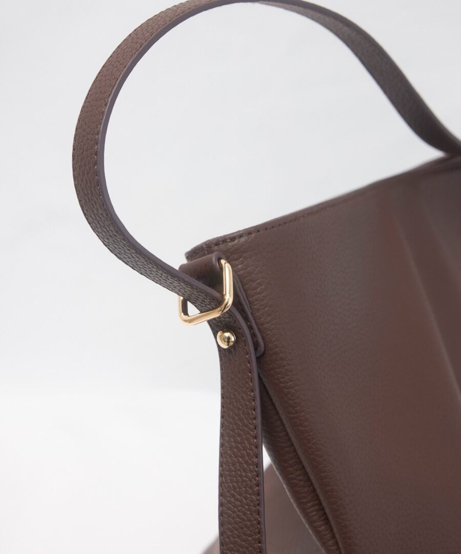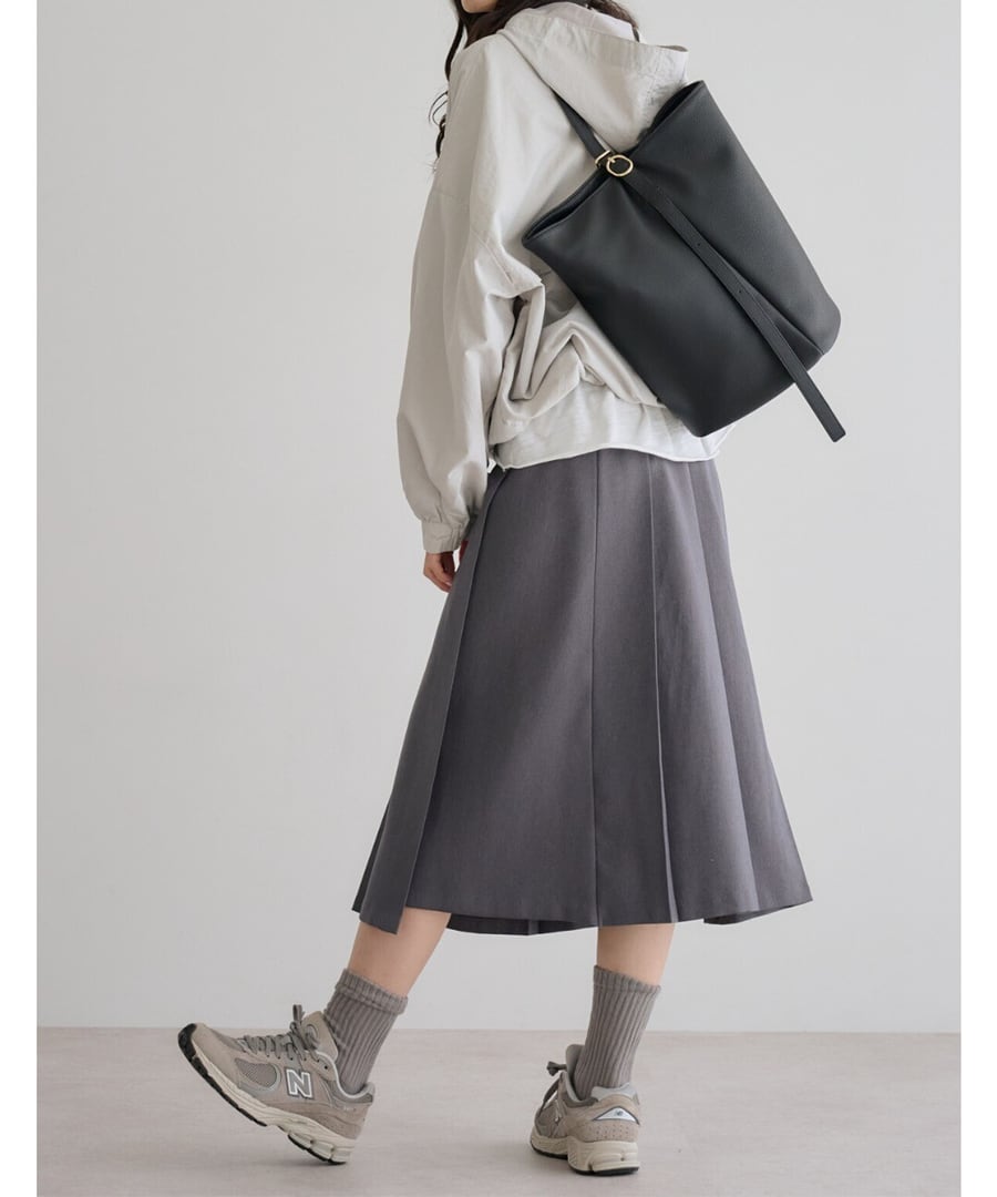 すっきりとしたバケツ型シルエットでは、コーディネートを選ばず合わせやすい仕上がり。