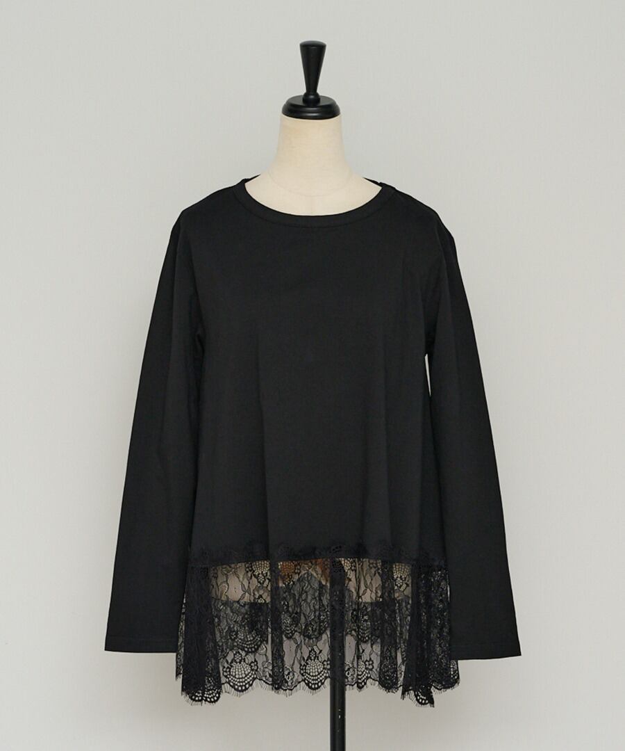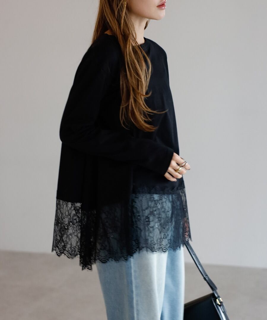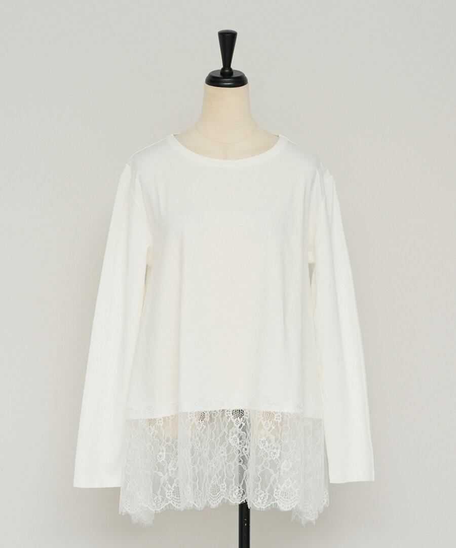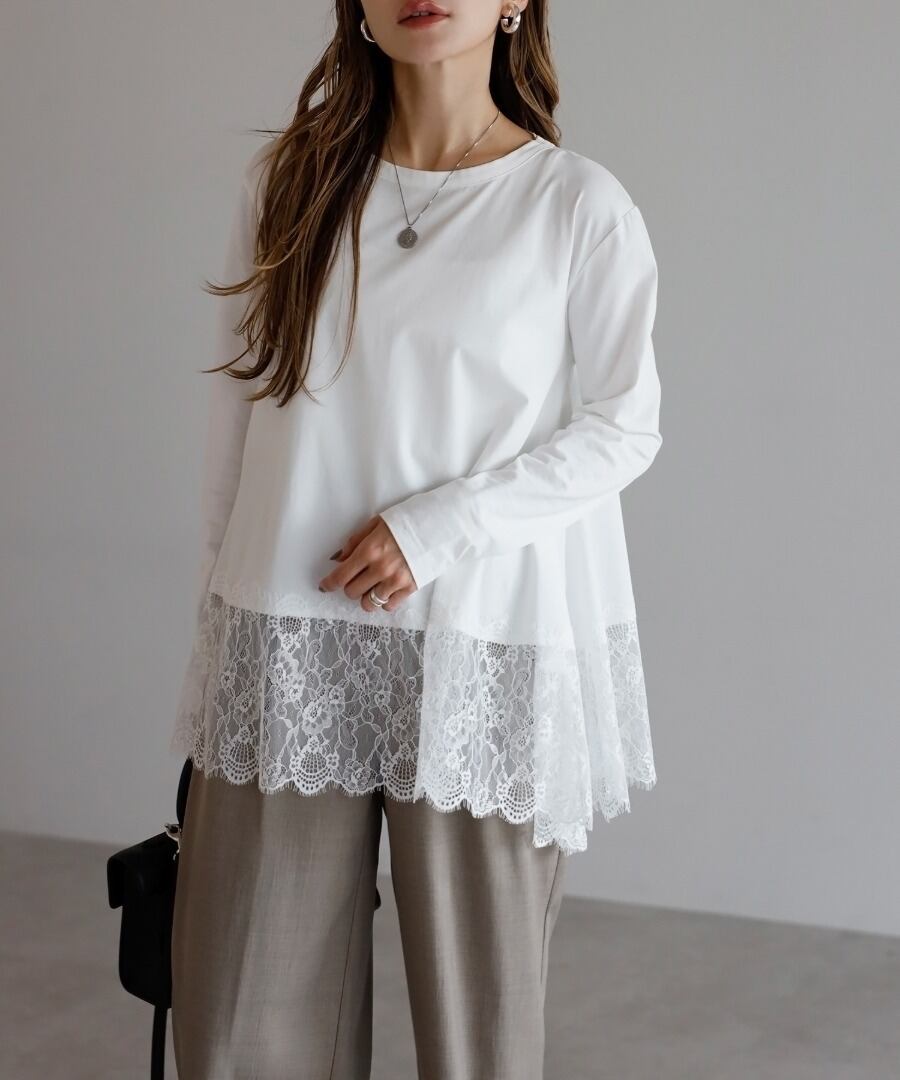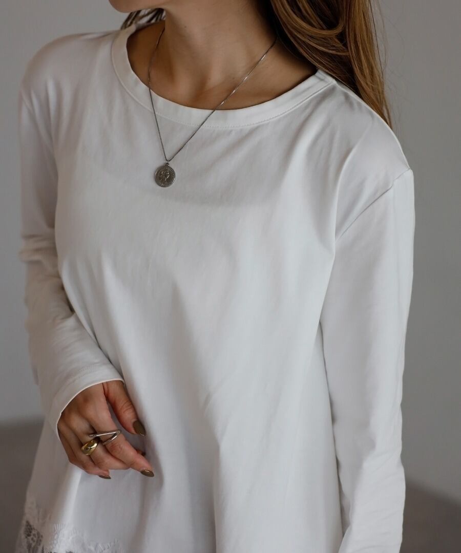 裾に繊細なレースをあしらった、滑らかな質感のカットソー。