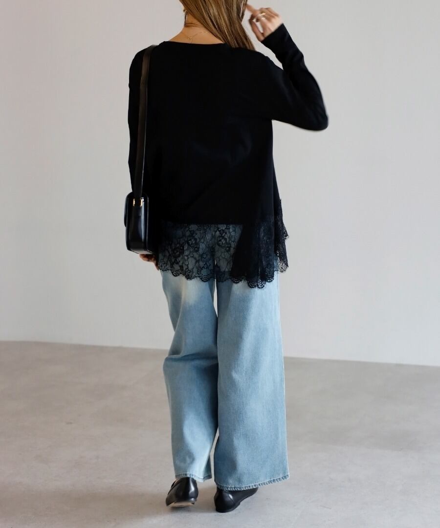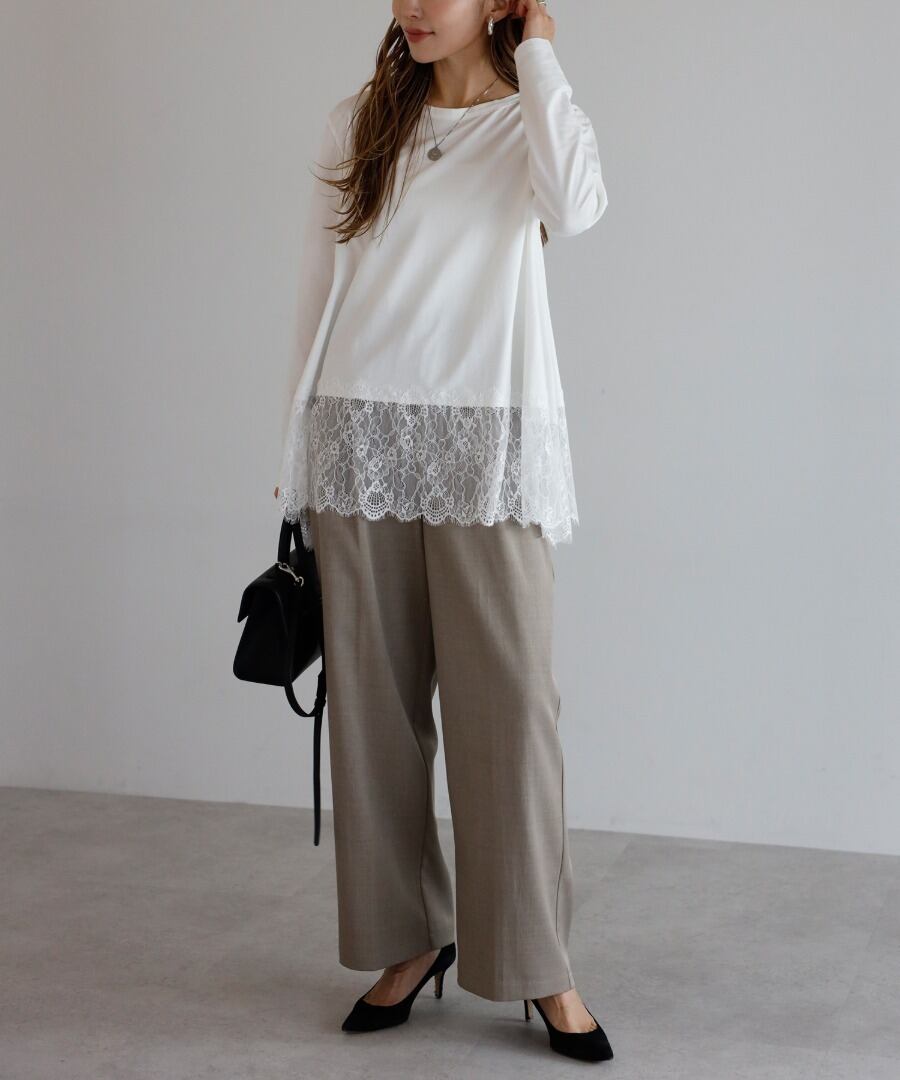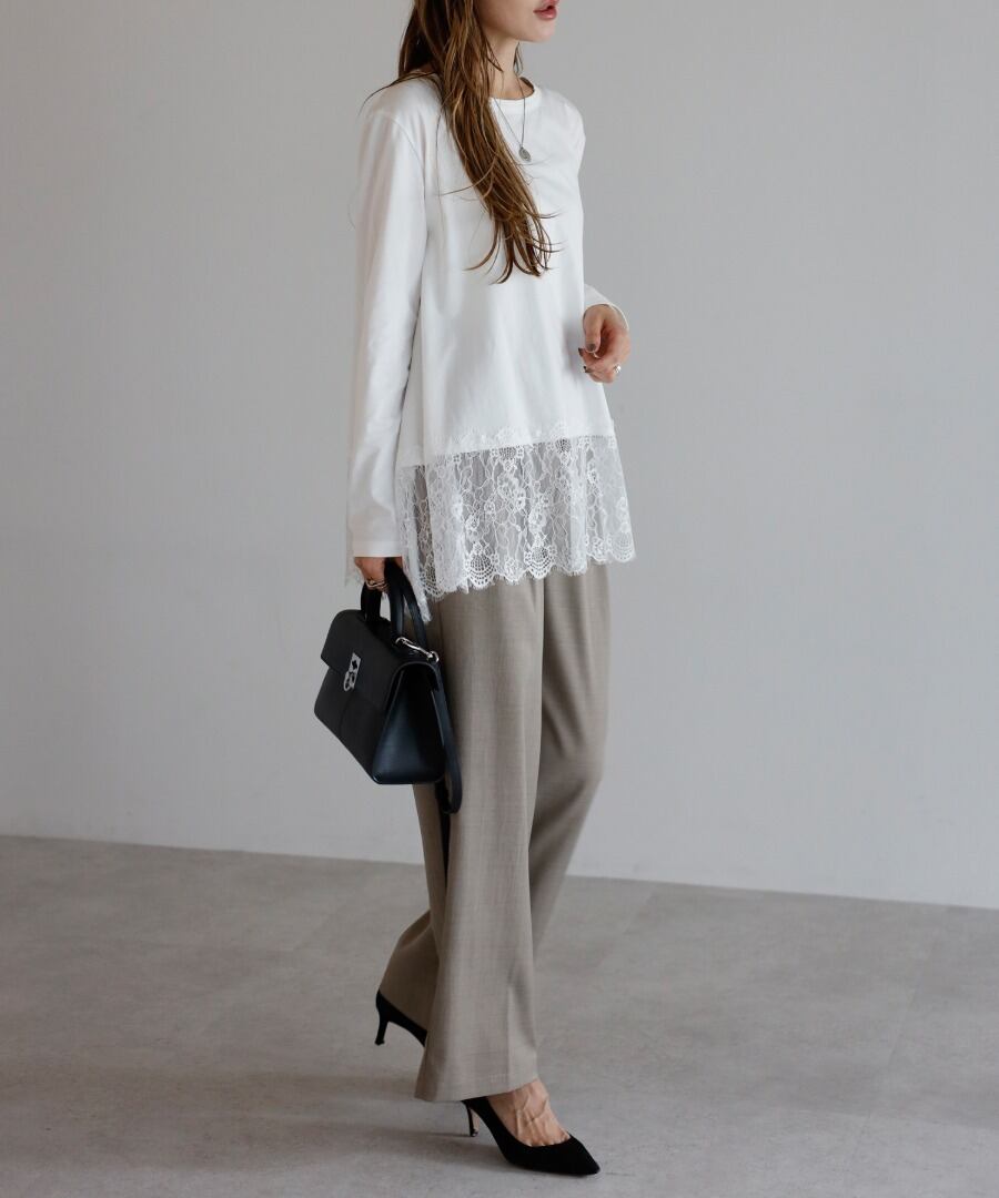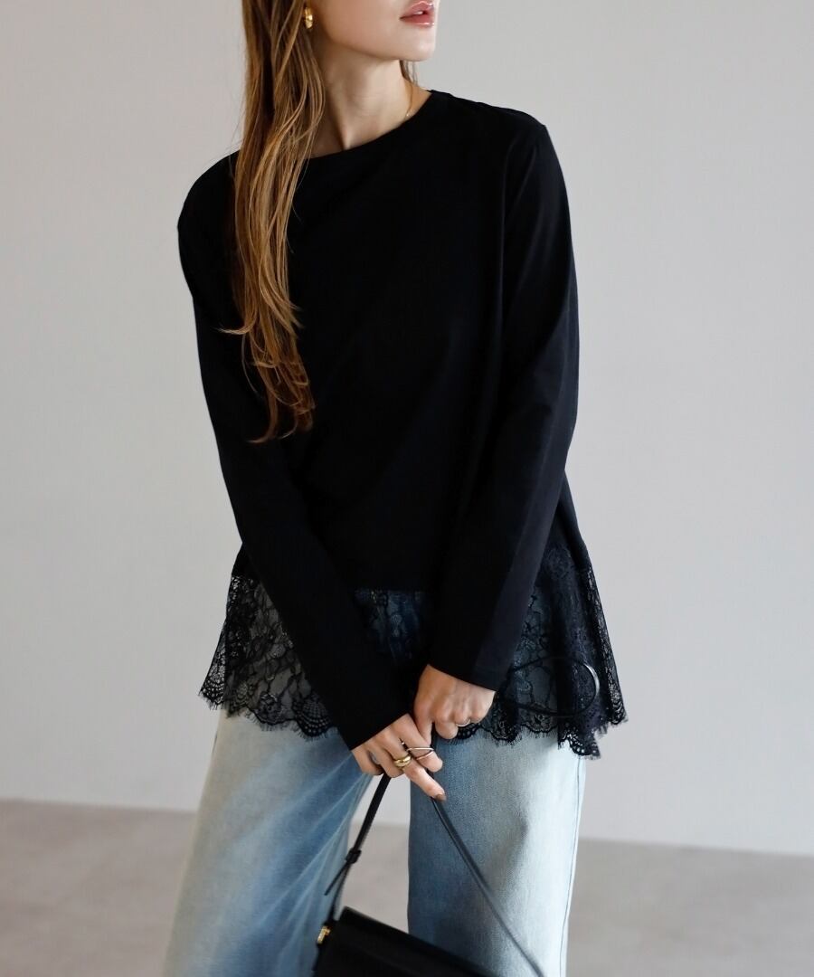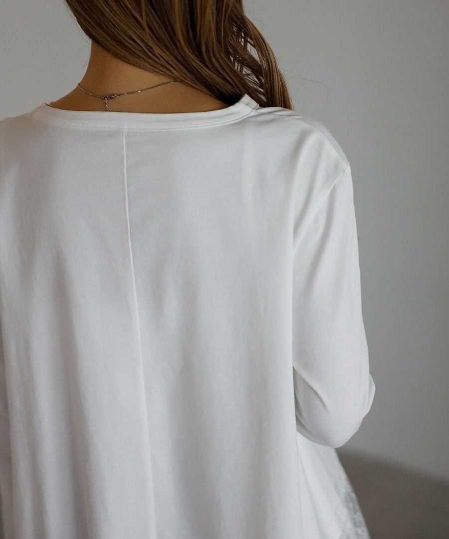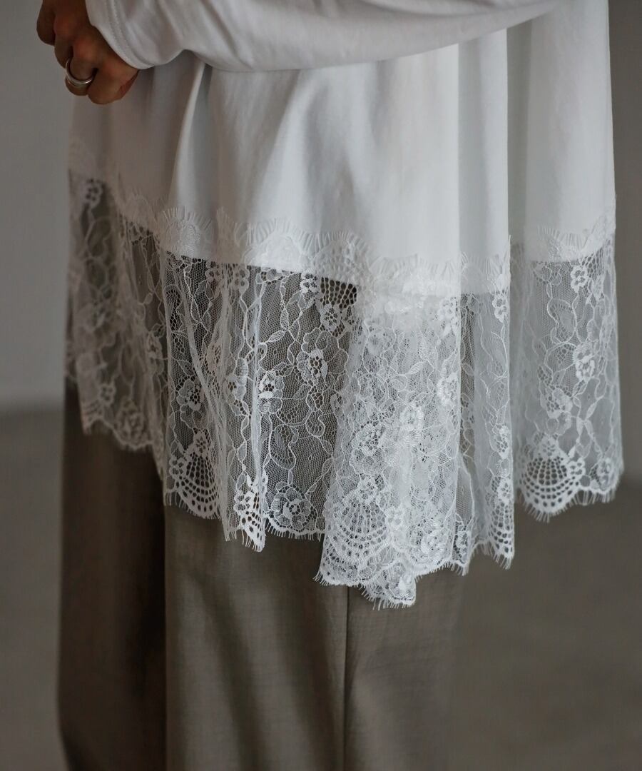 裾に繊細なレースをあしらった、滑らかな質感のカットソー。