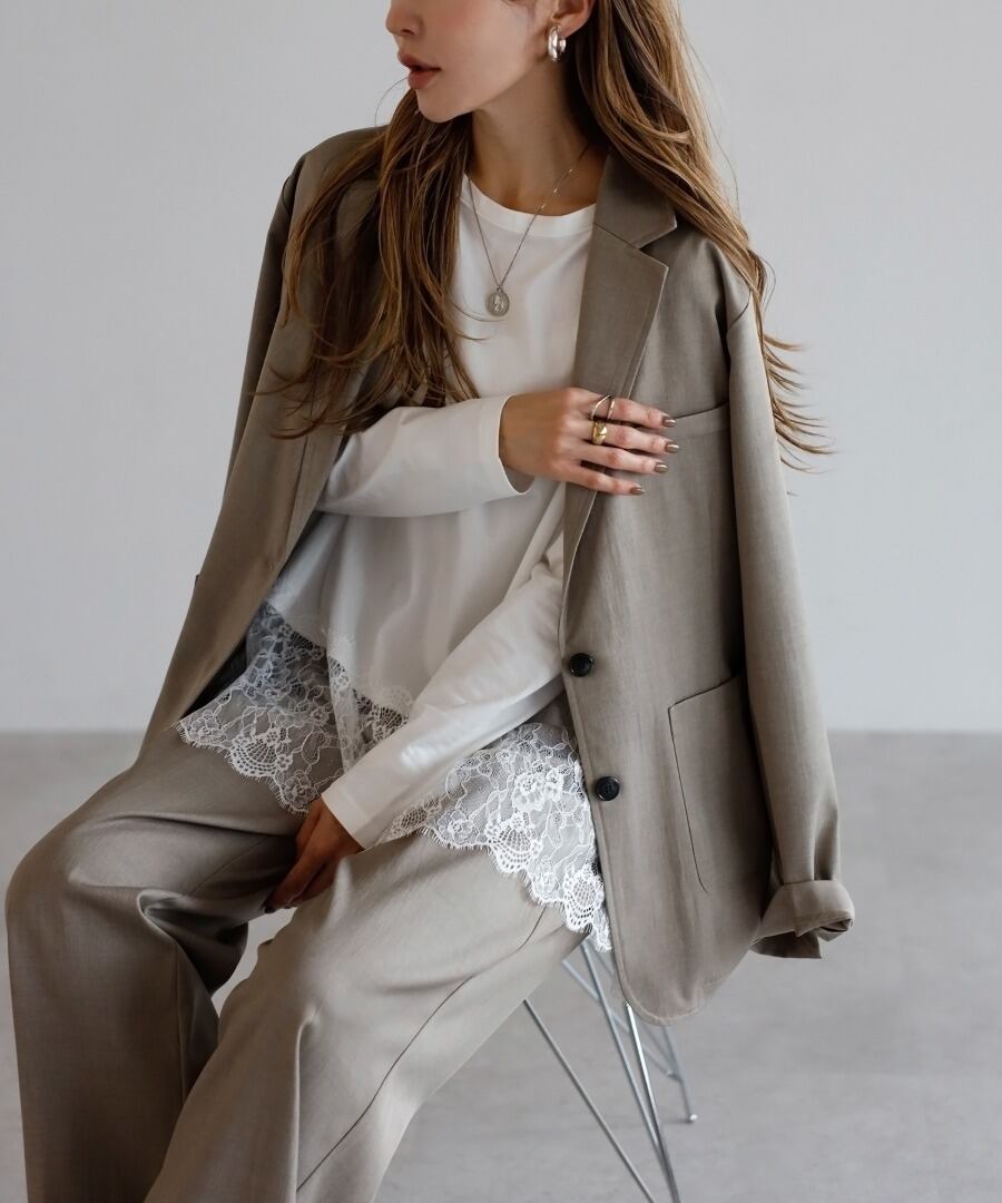 柔らかな透け感を纏う、エレガントレース切替トップス