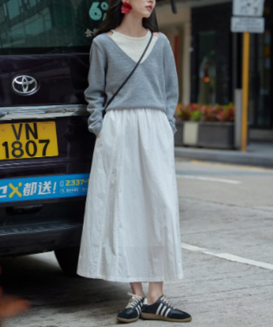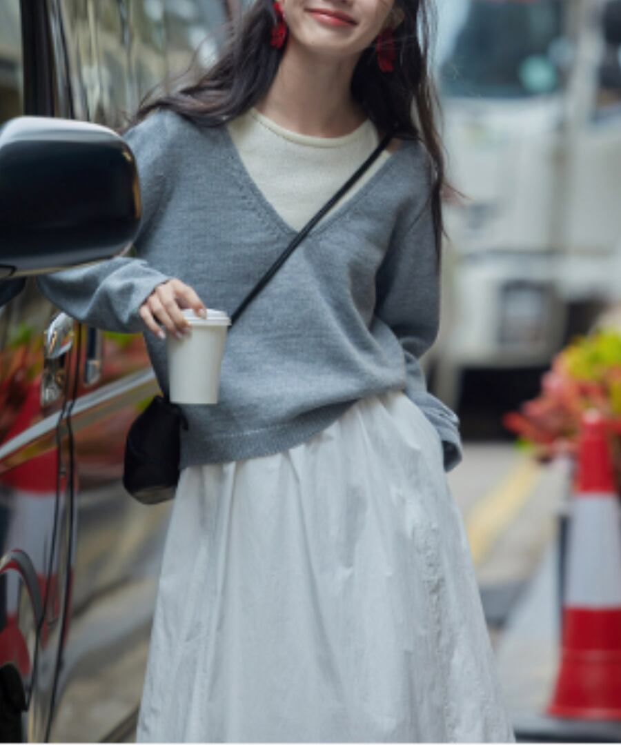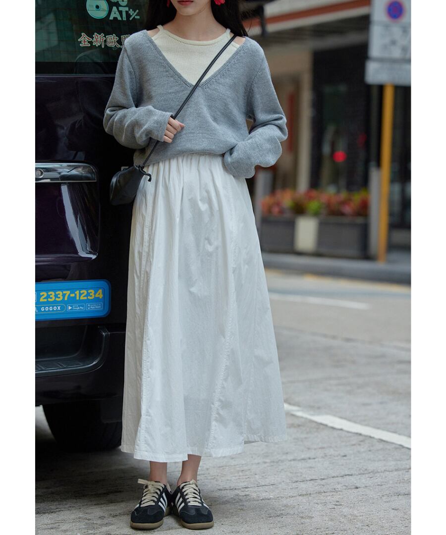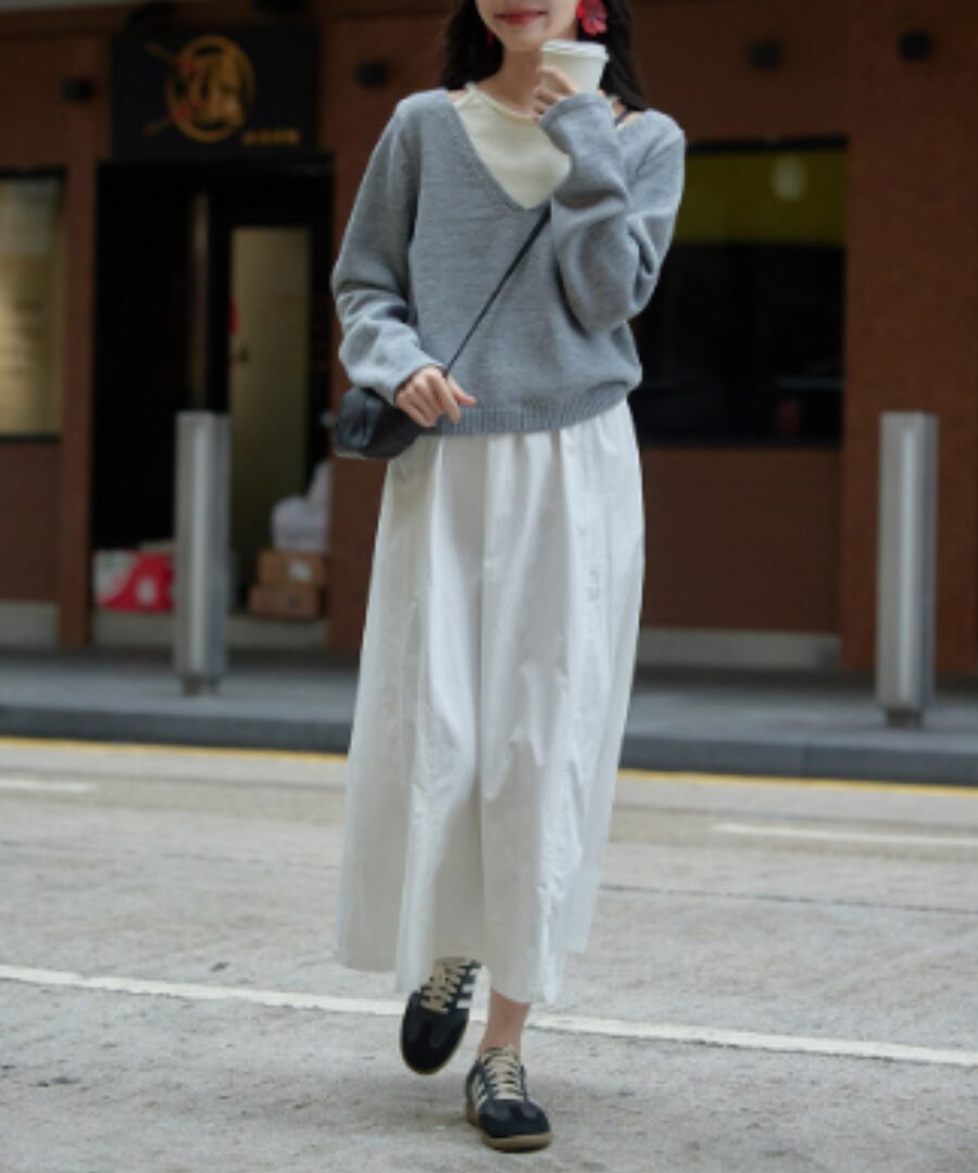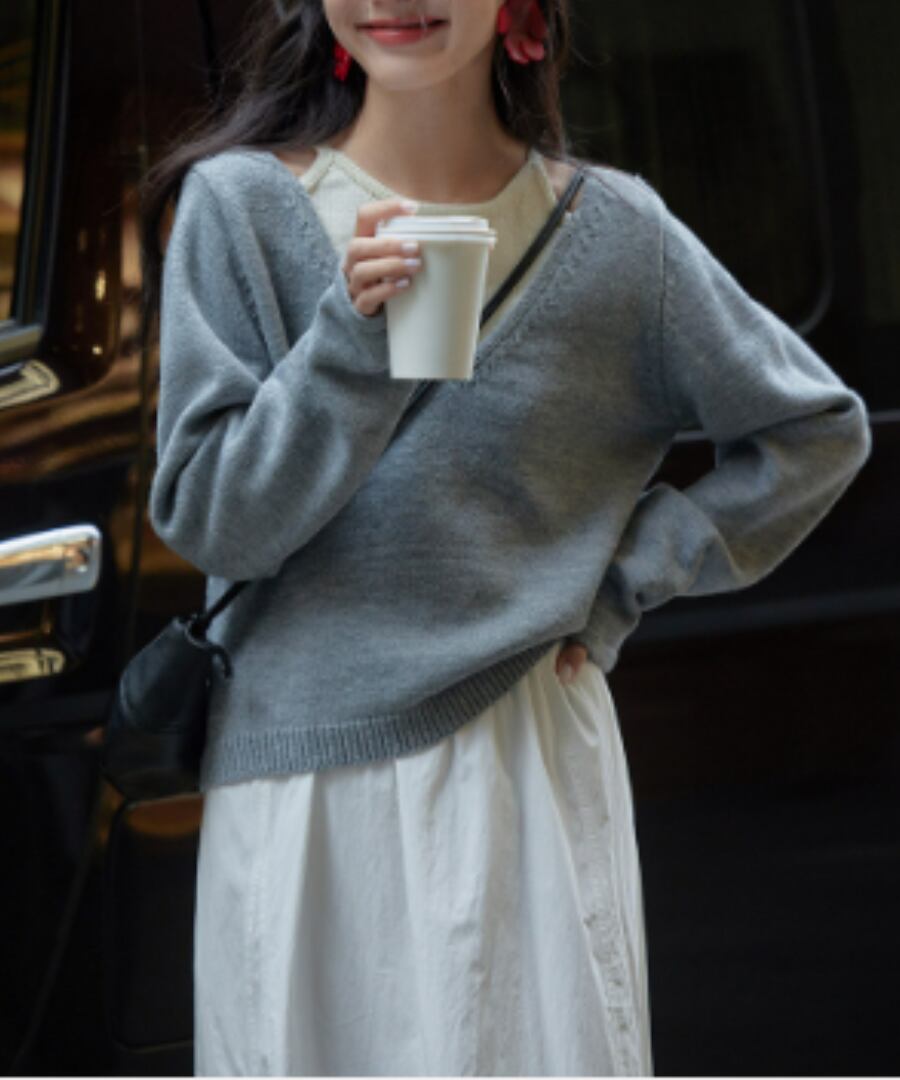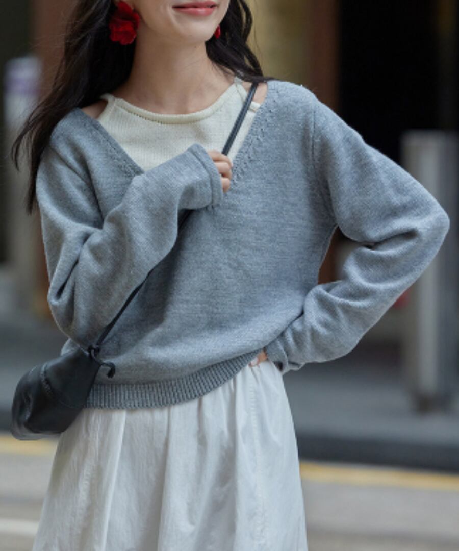 心地よい着心地とスタイリッシュなデザインが魅力のフェイクツーピースニットセーター。