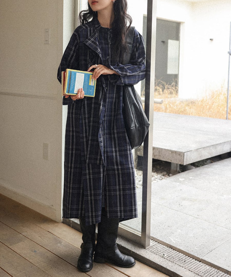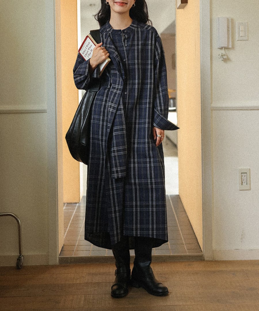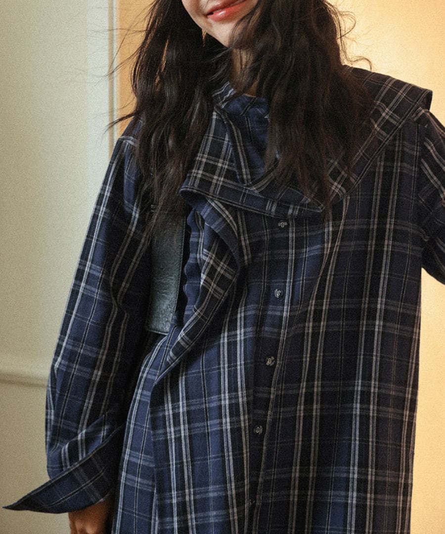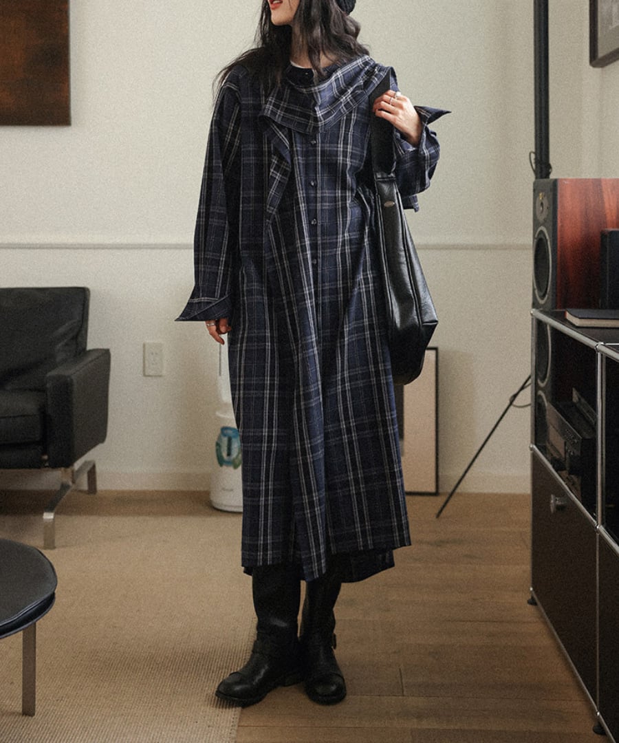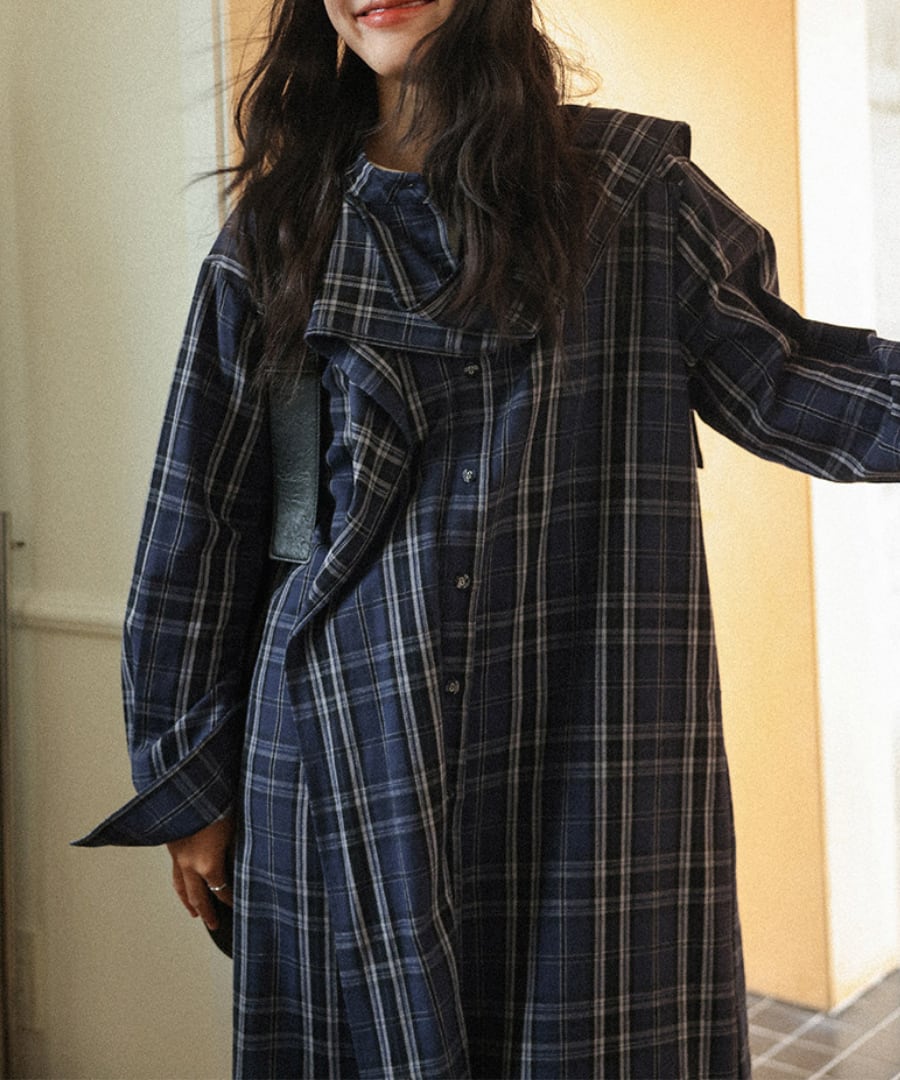 チェック柄◆シャツワンピース【w-30230】