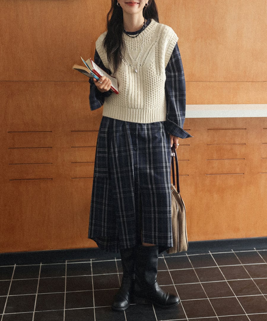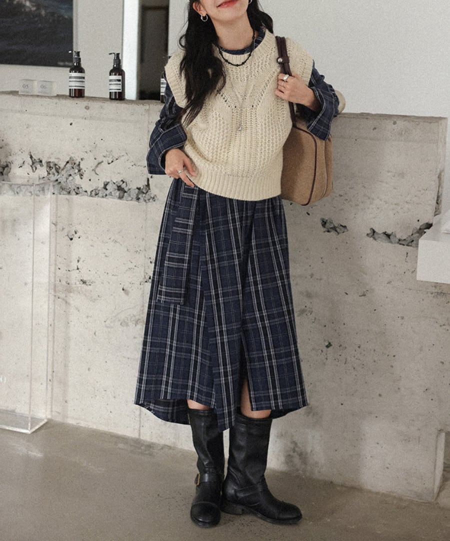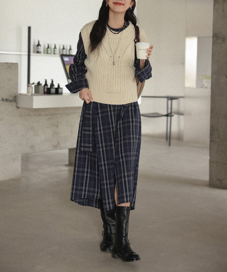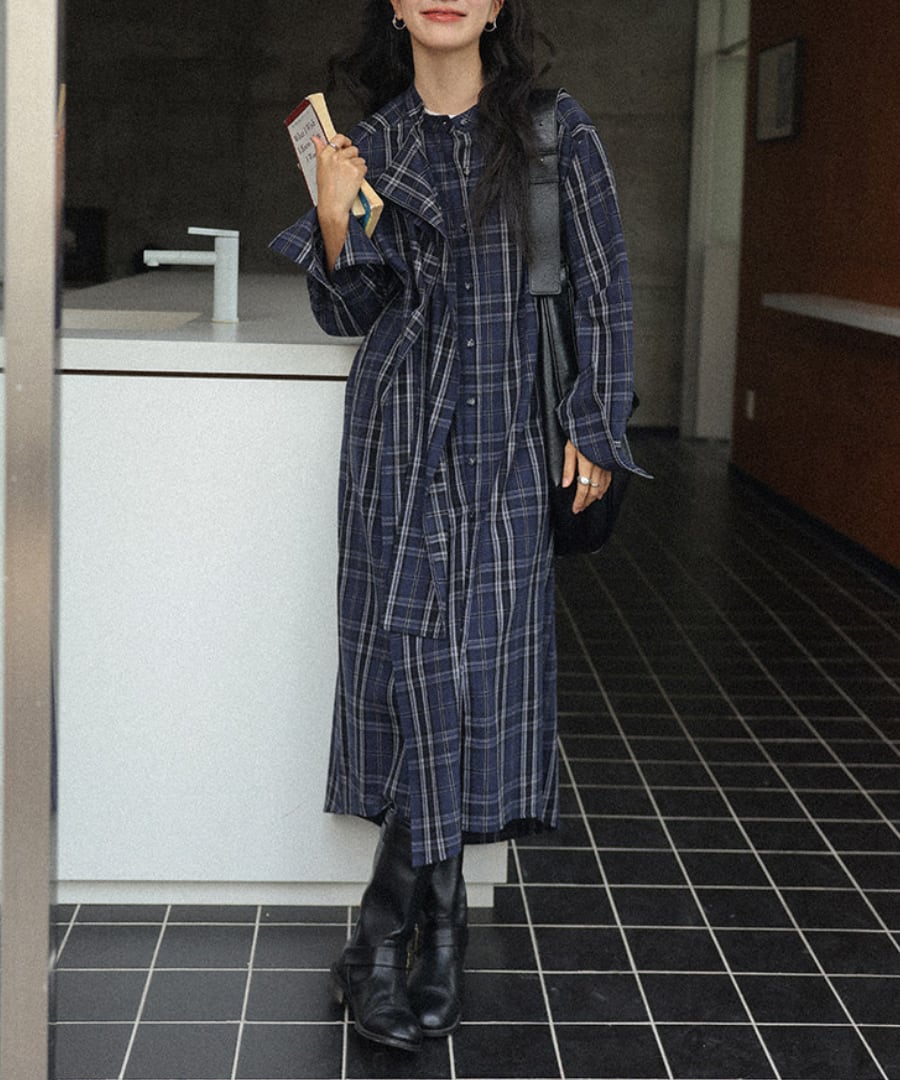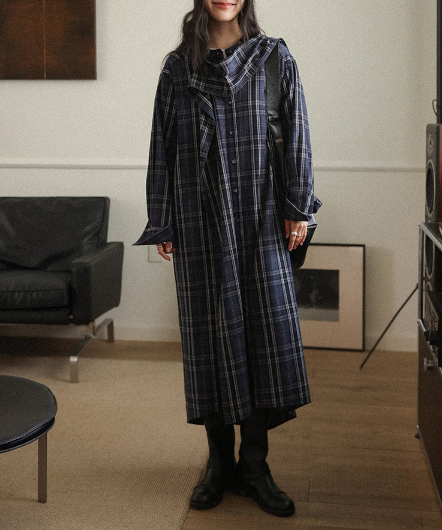 チェック柄◆シャツワンピース【w-30230】