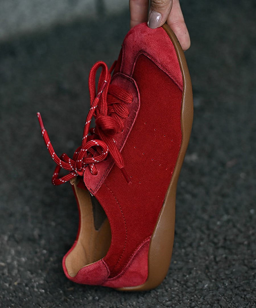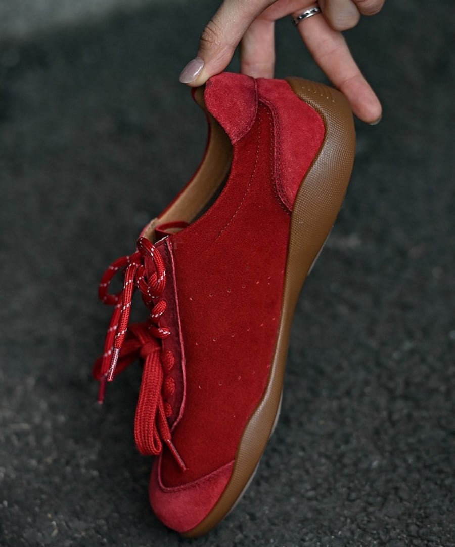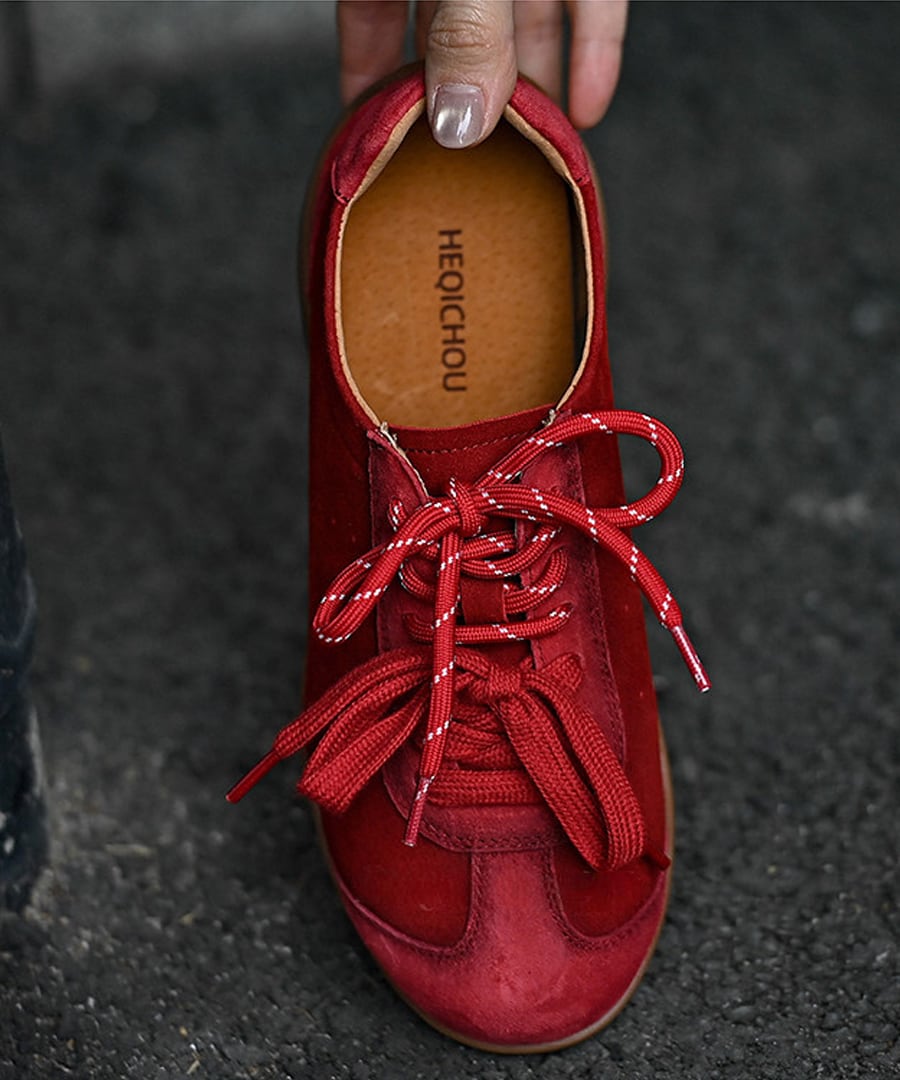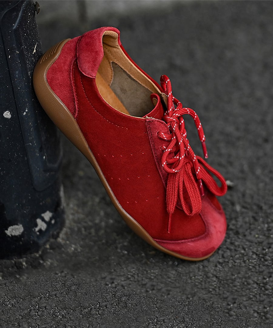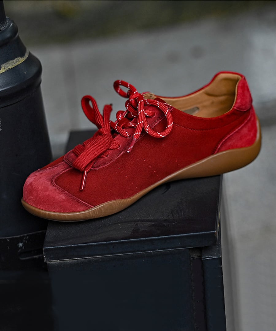 フラットレースアップデザインのシンプルでスタイリッシュな一足。