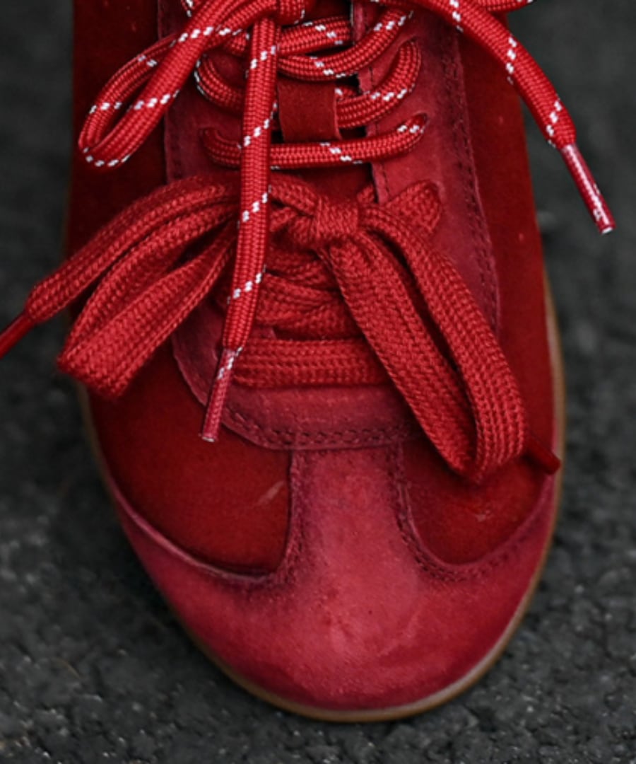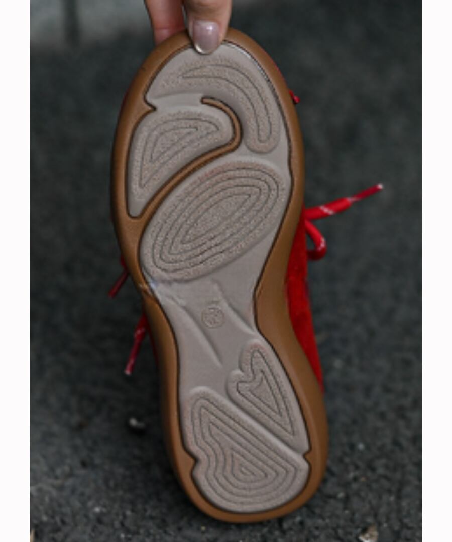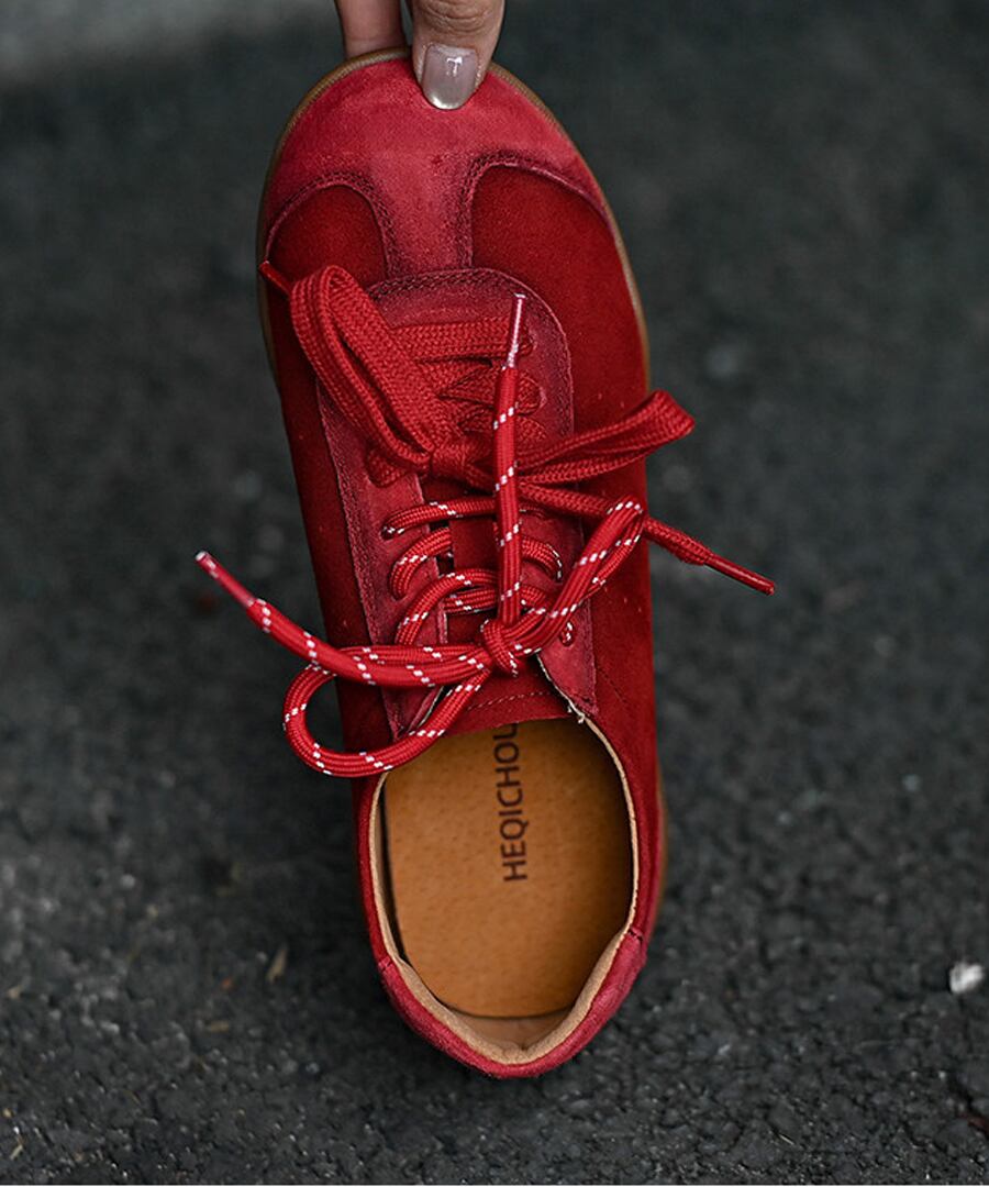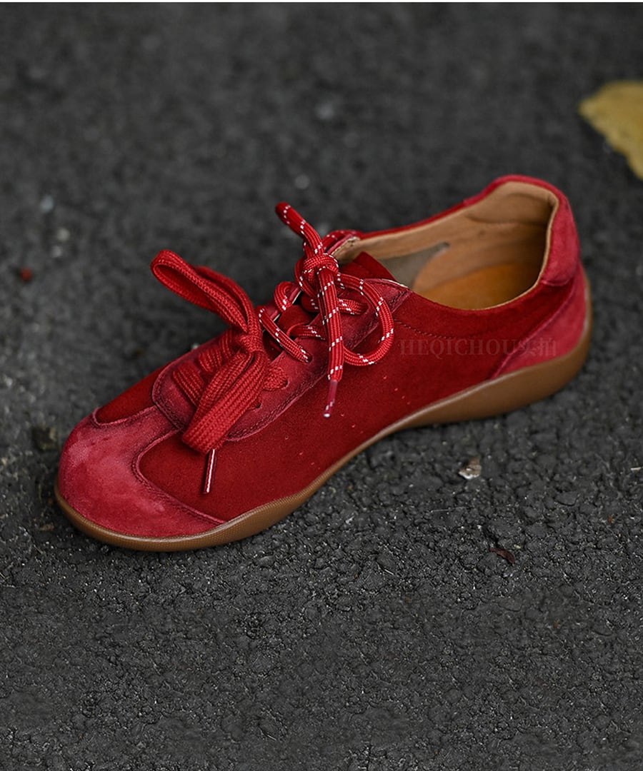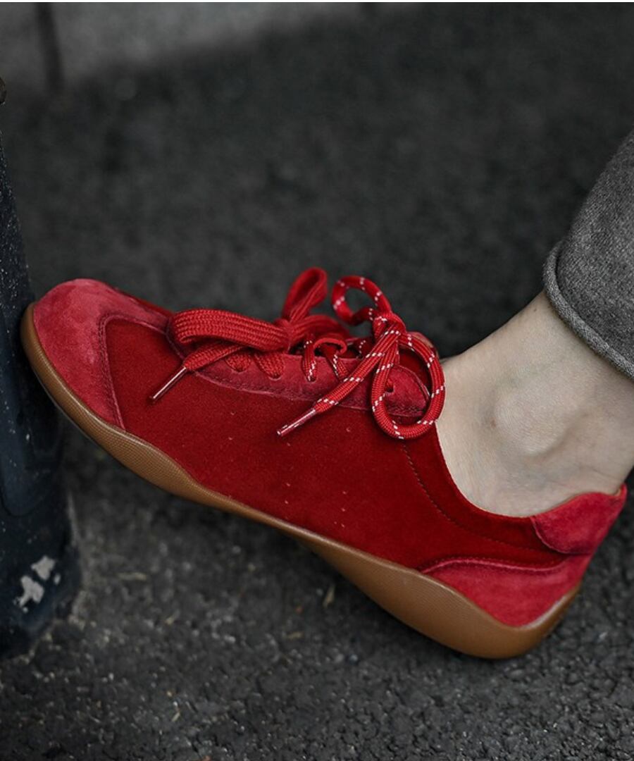 フラットレースアップデザインのシンプルでスタイリッシュな一足。