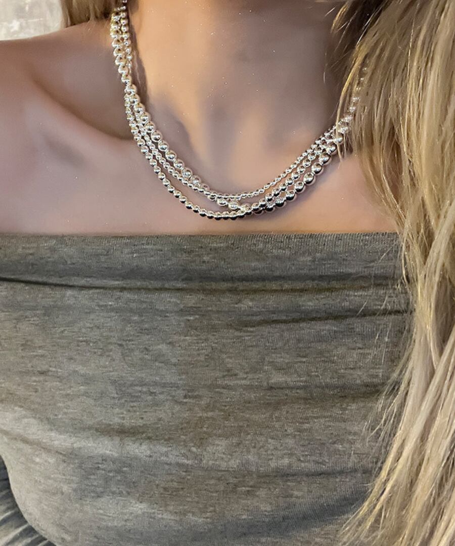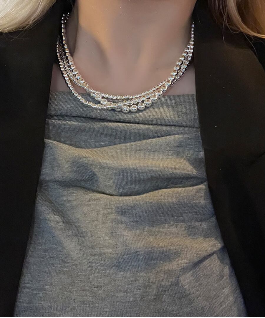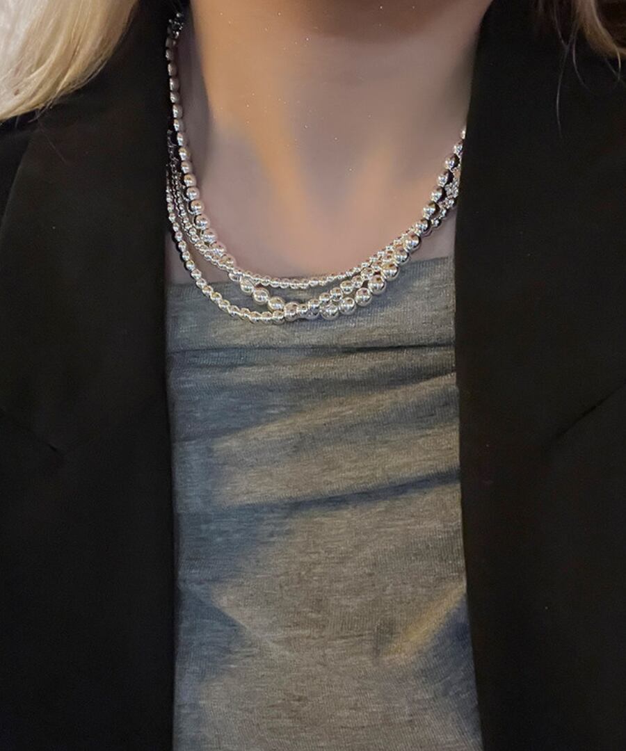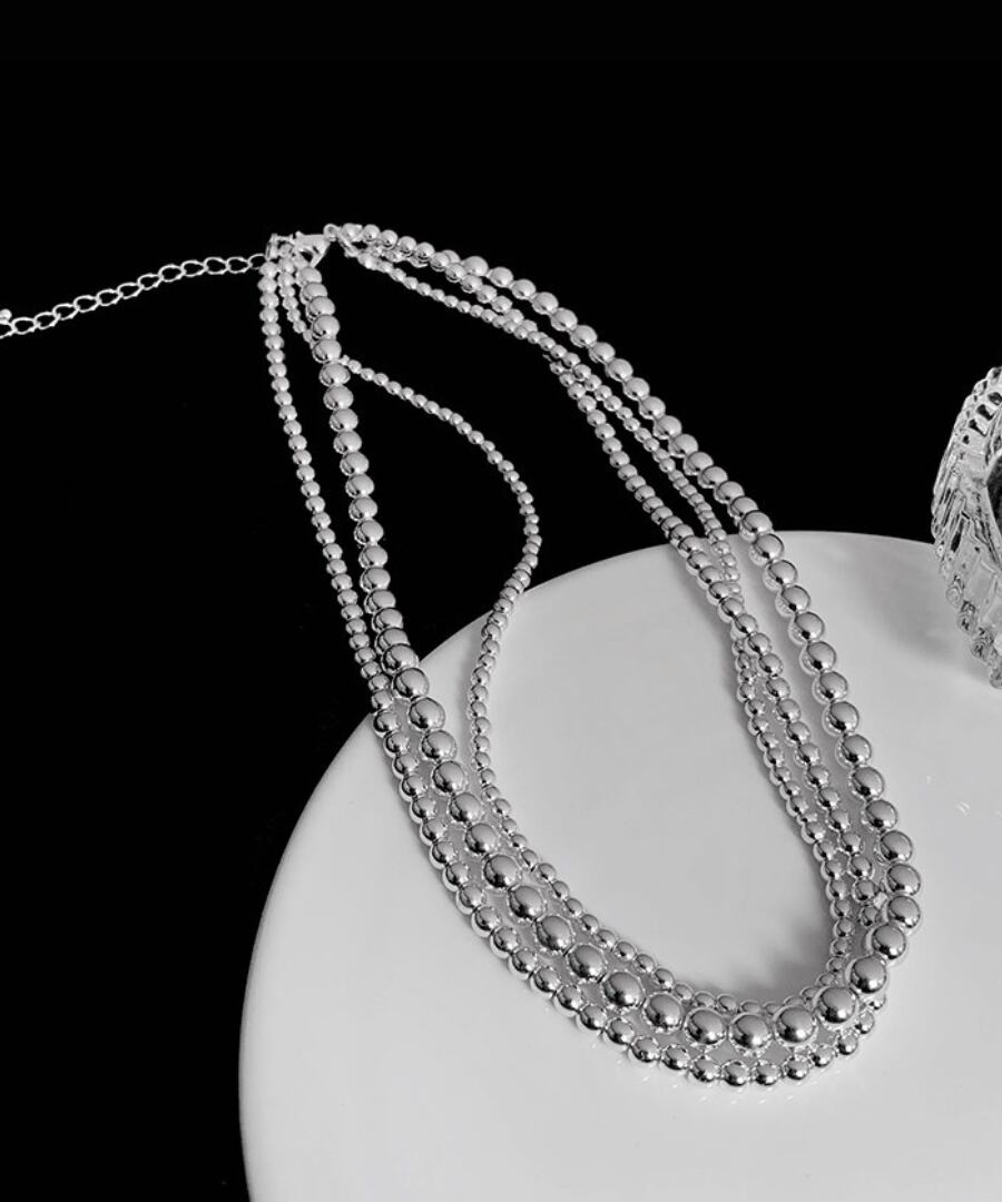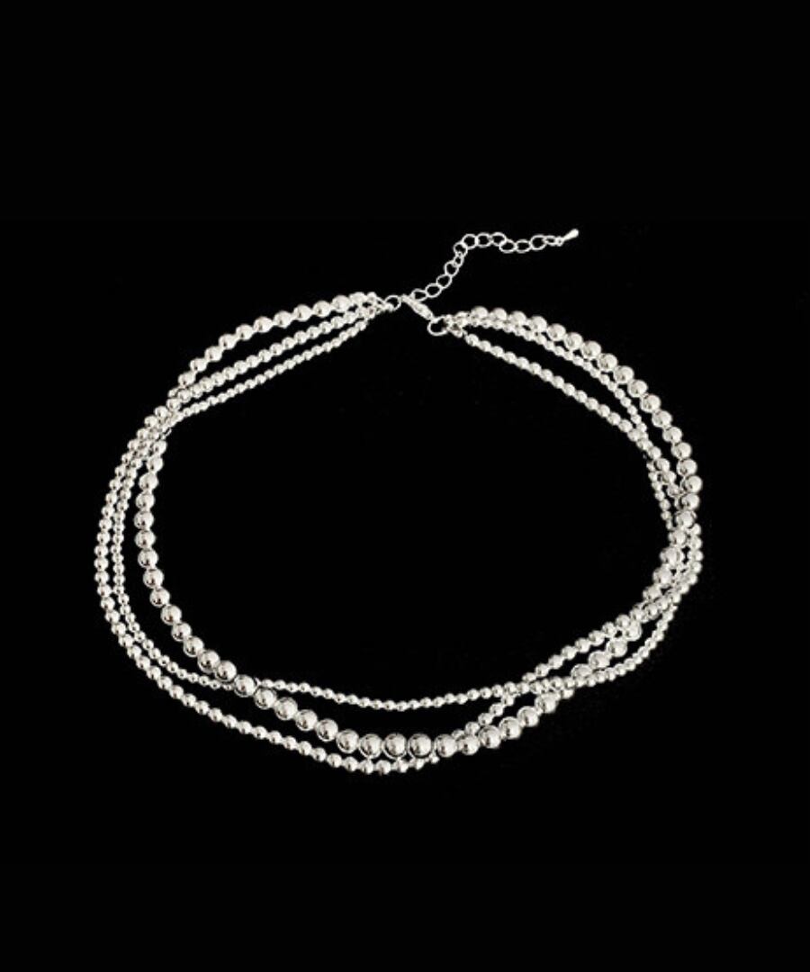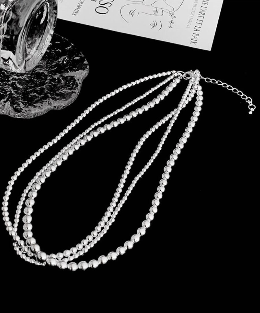 クラシックなデザインのシルバーメタルボールを使用した3連ネックレス。