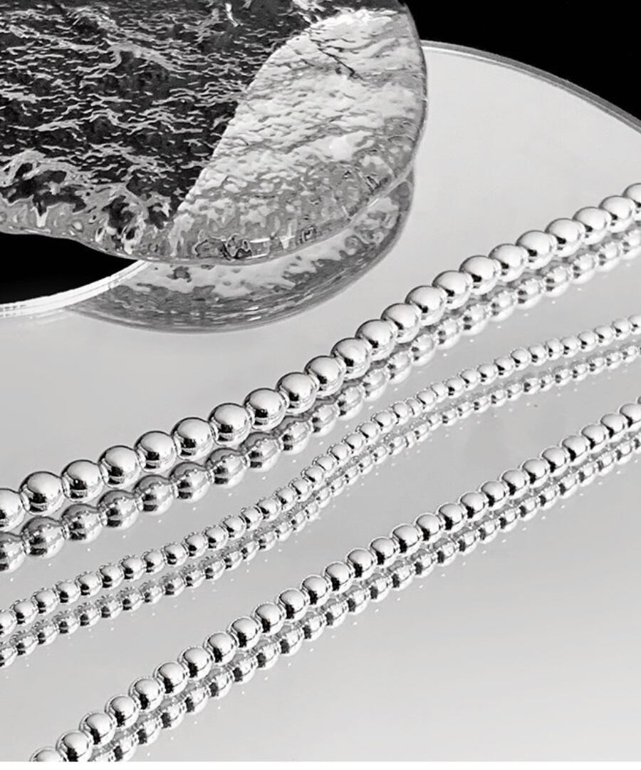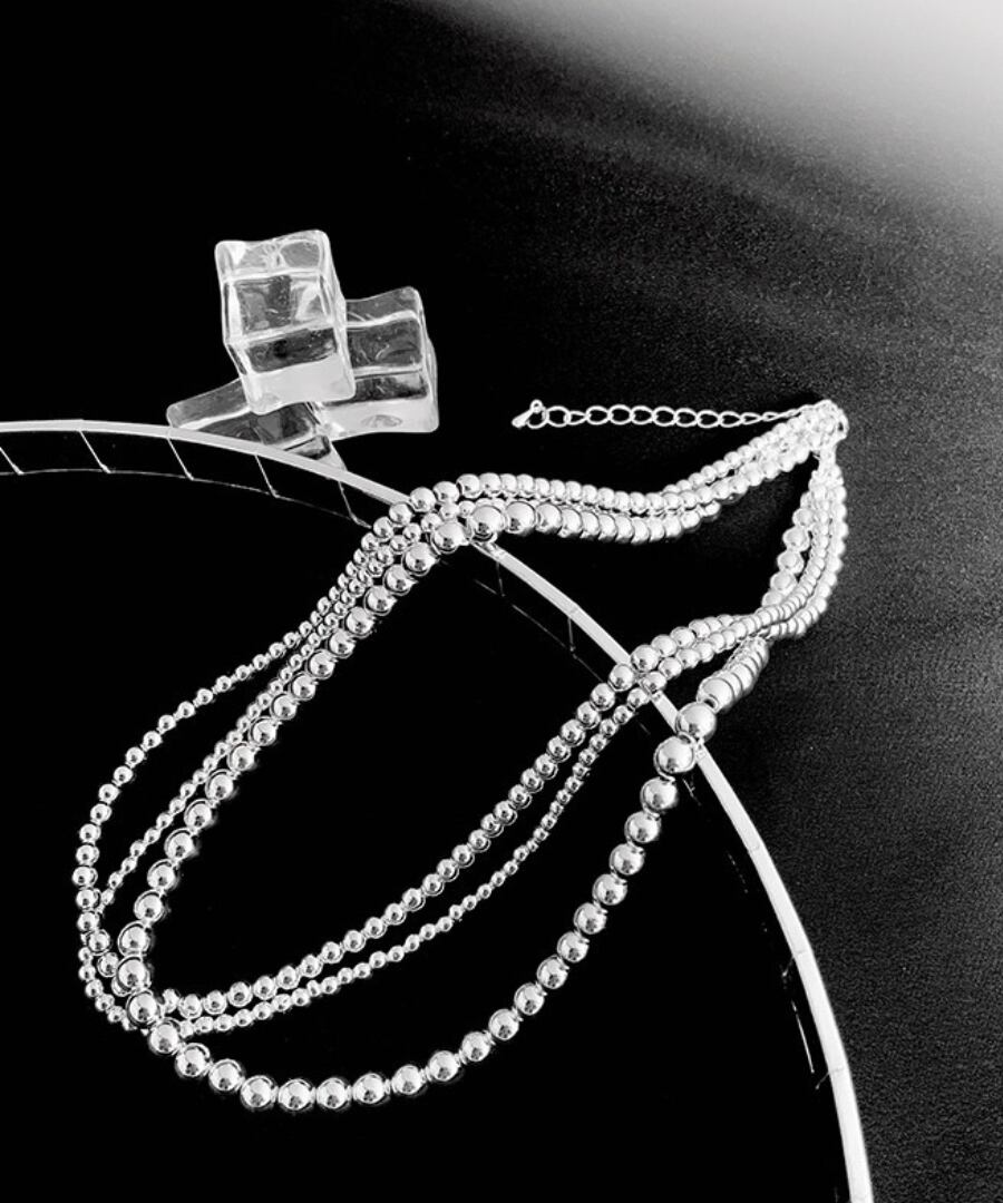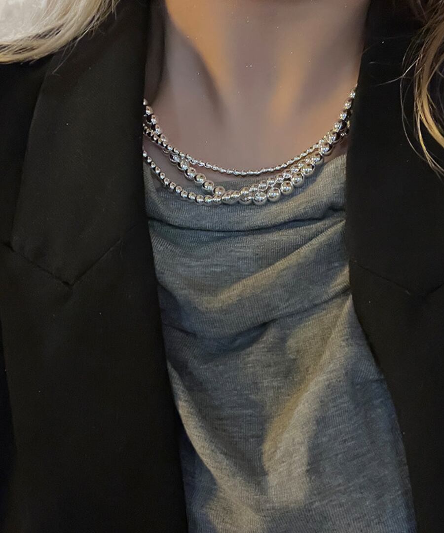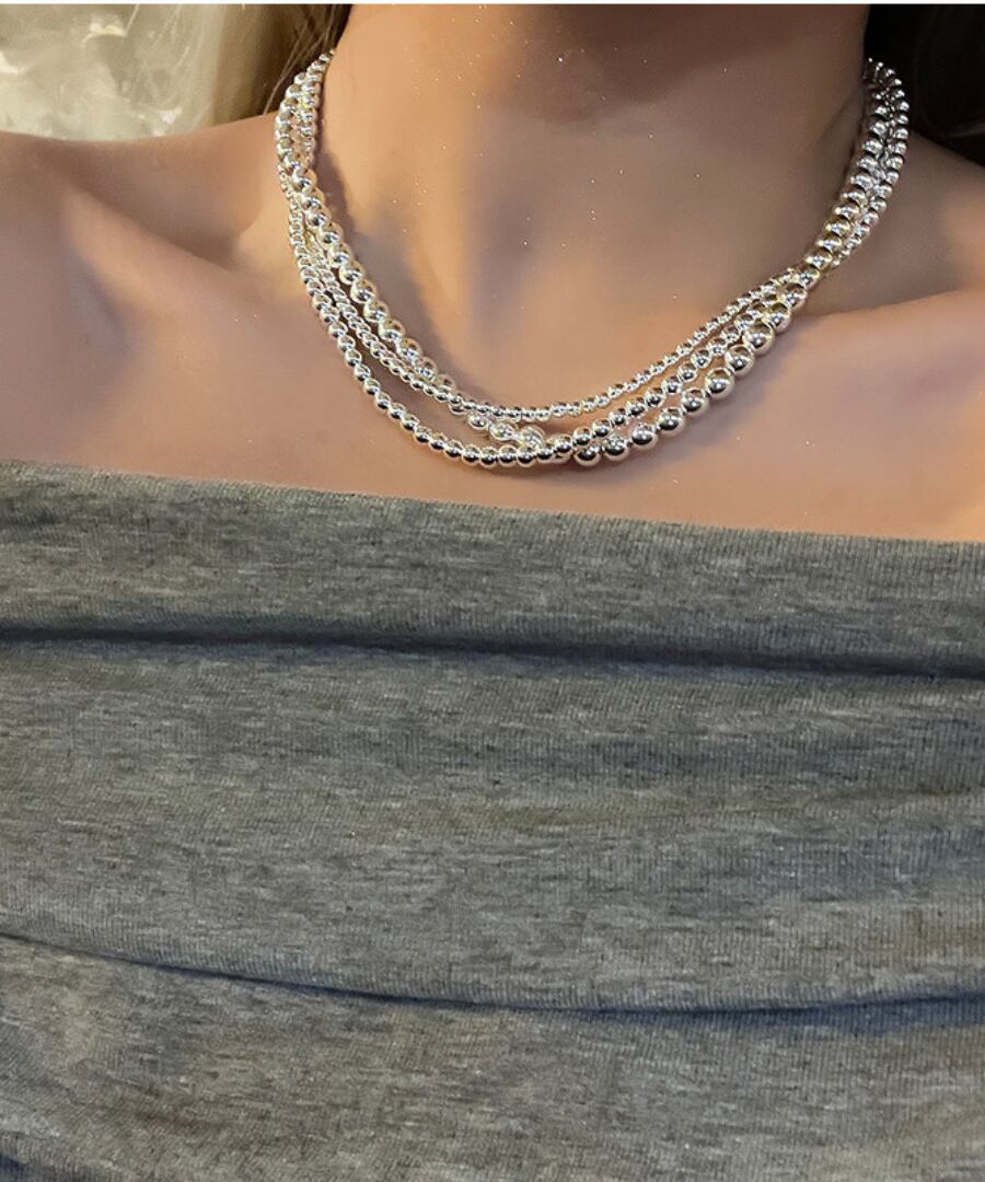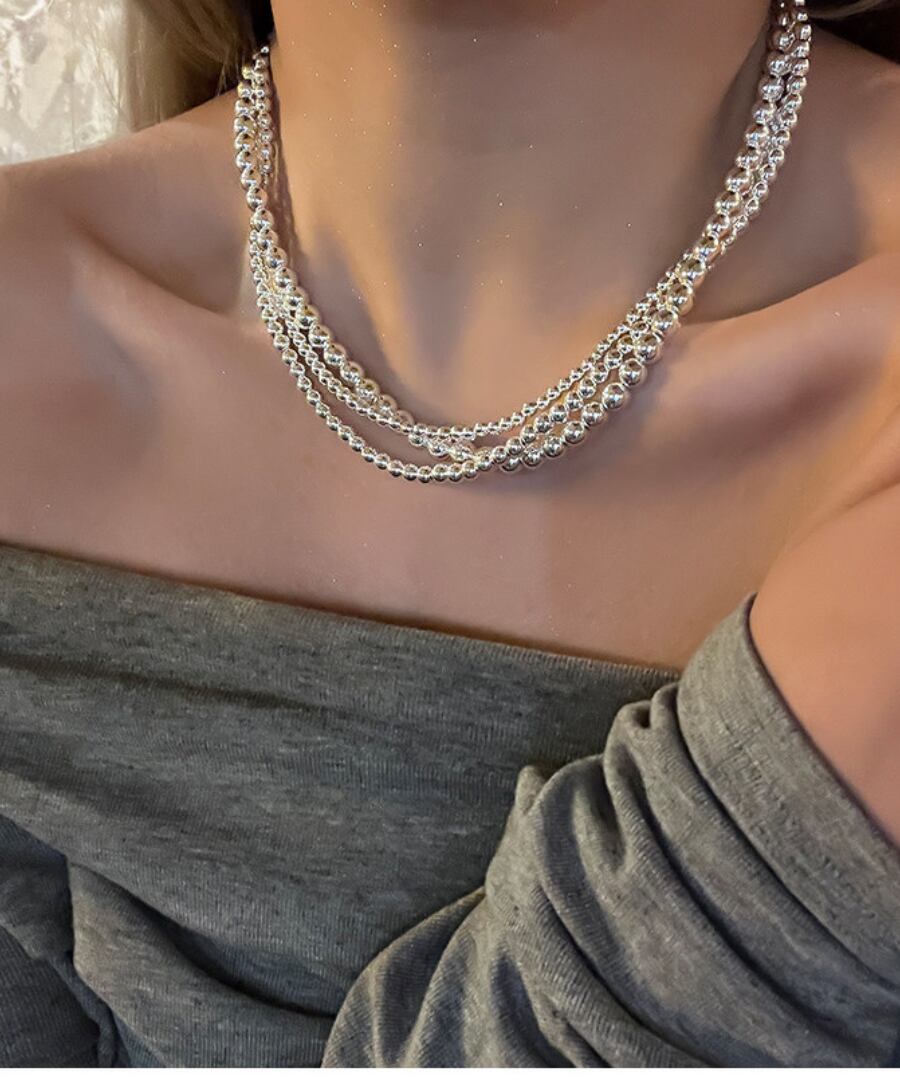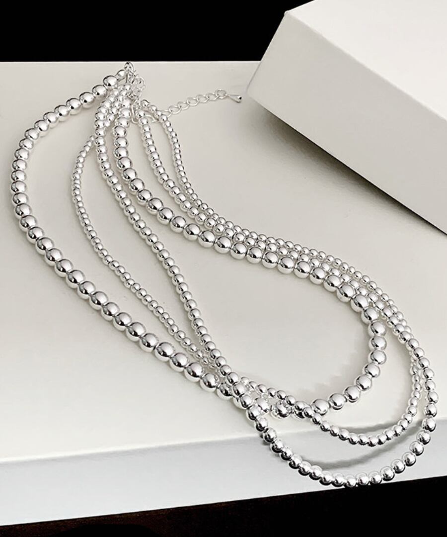 クラシックなデザインのシルバーメタルボールを使用した3連ネックレス。