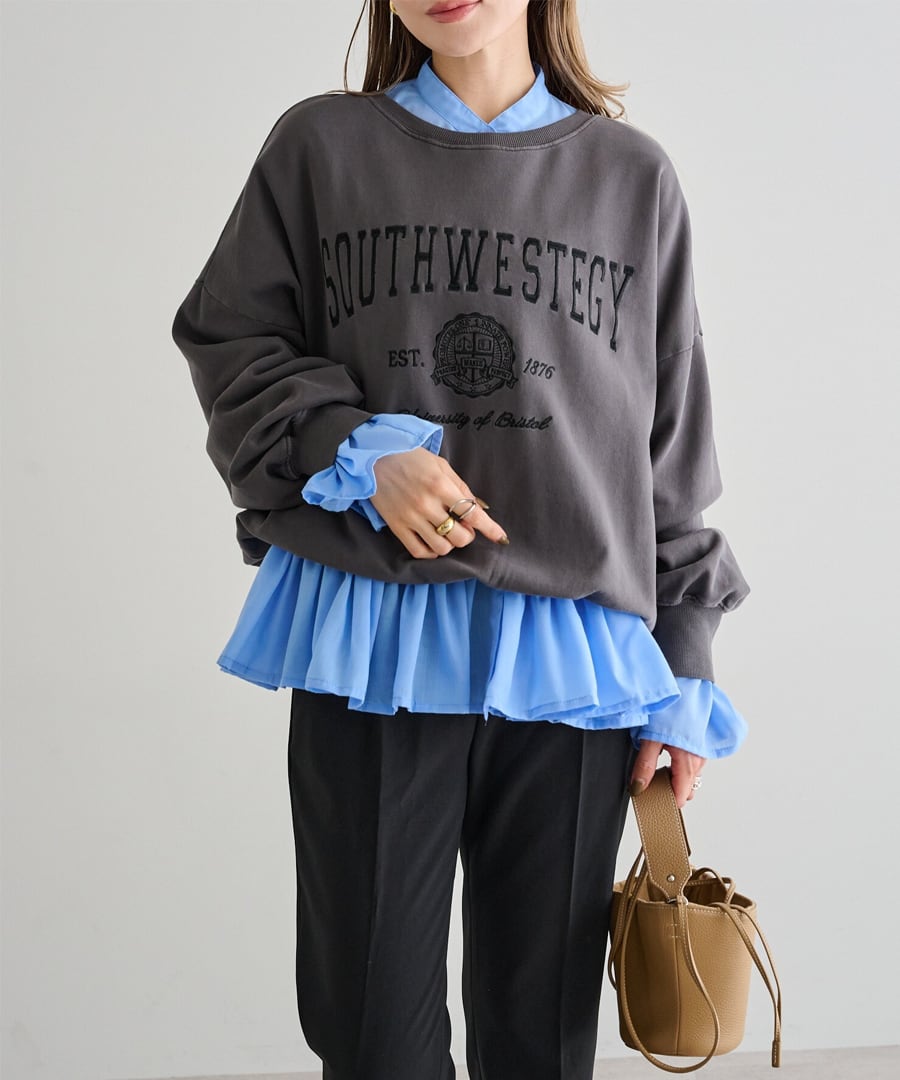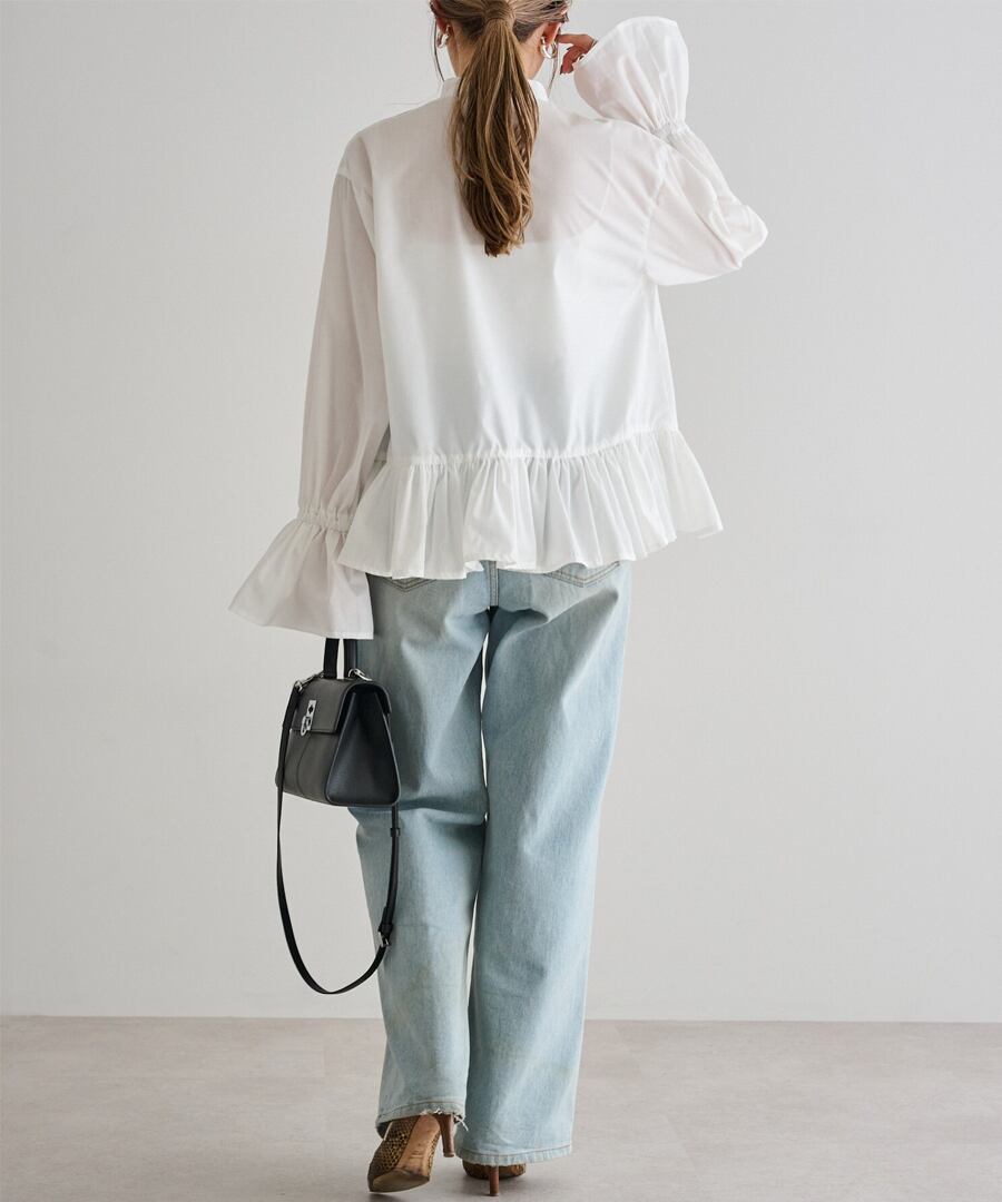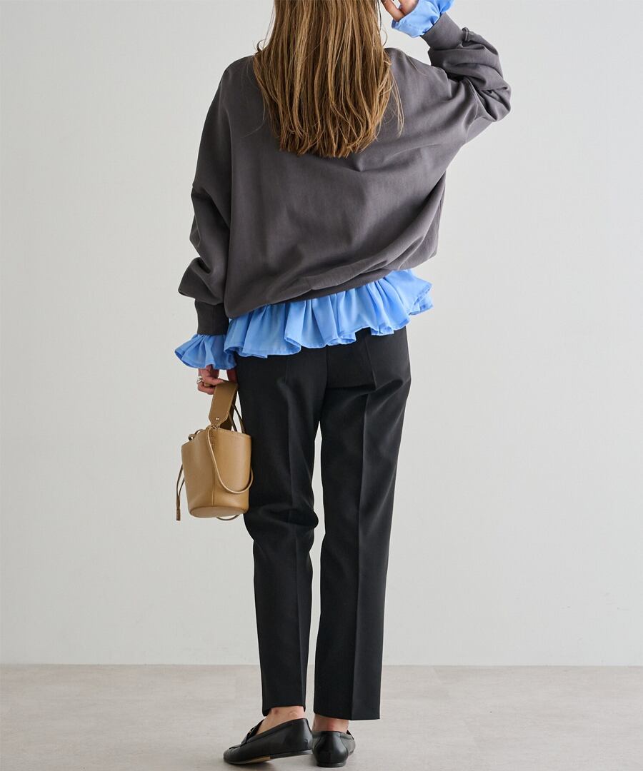 フリル切替の裾が、動くたびにふんわり揺れ、軽やかなシルエットを演出。