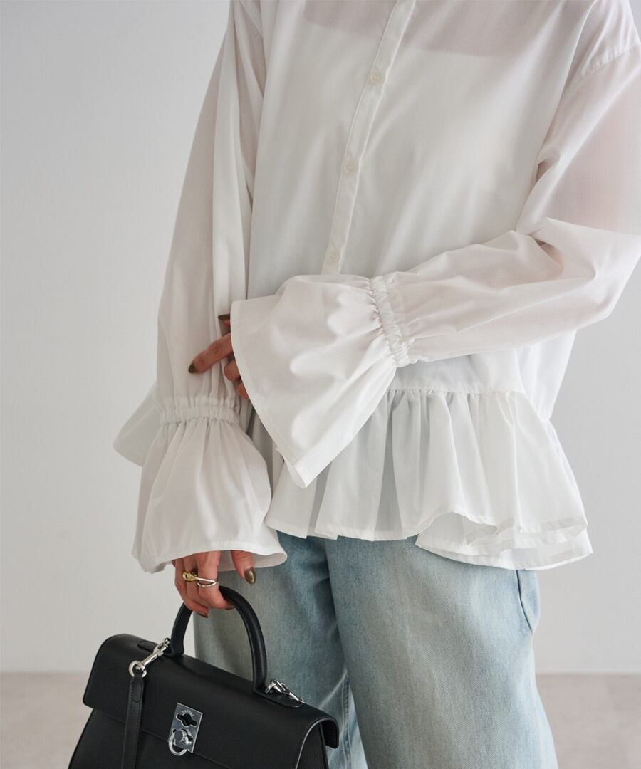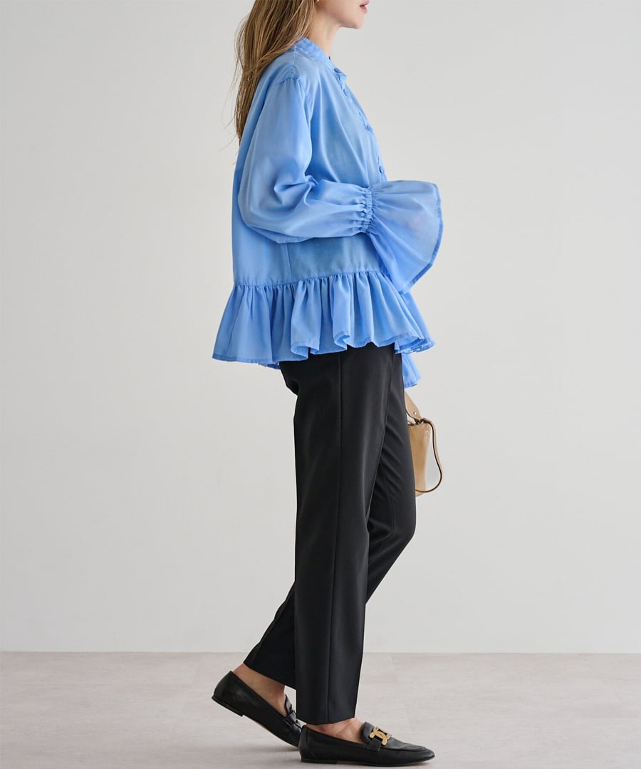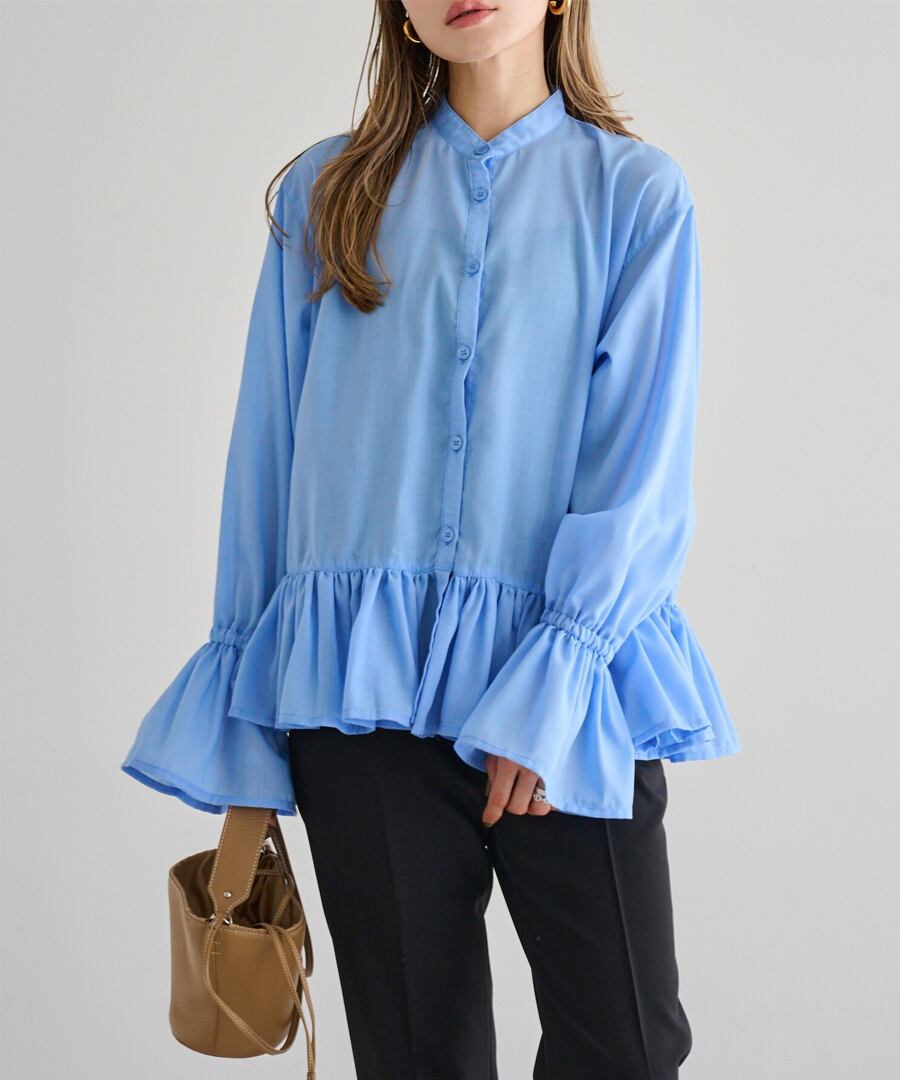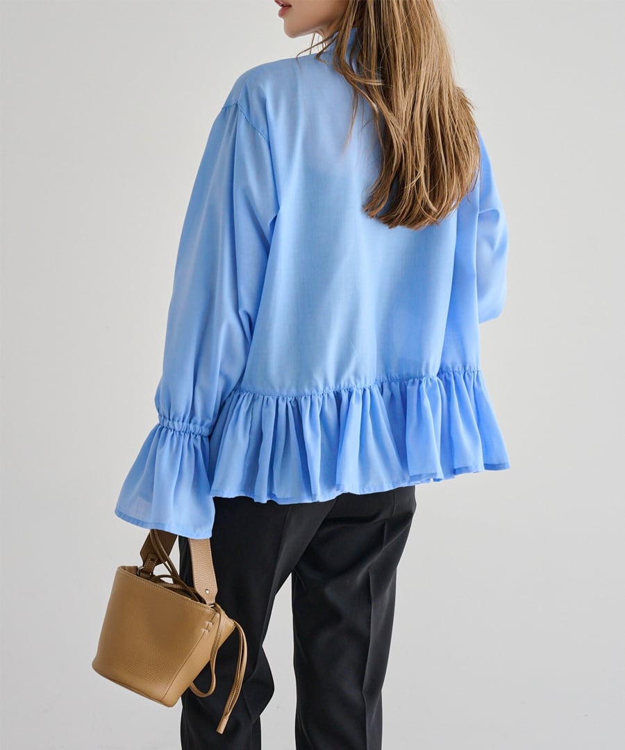 裾フリルキャンディースリーブブラウス【t-10657】.