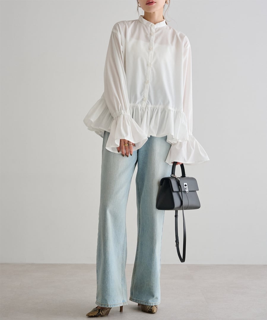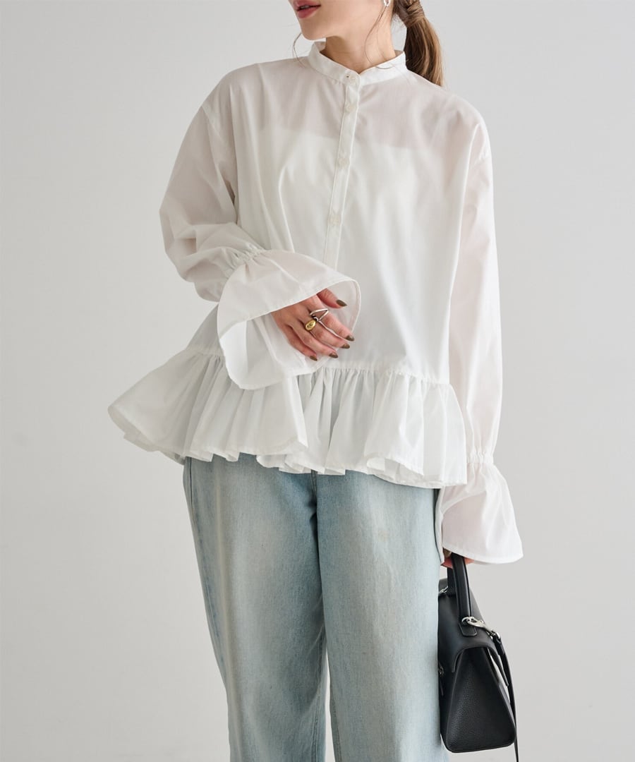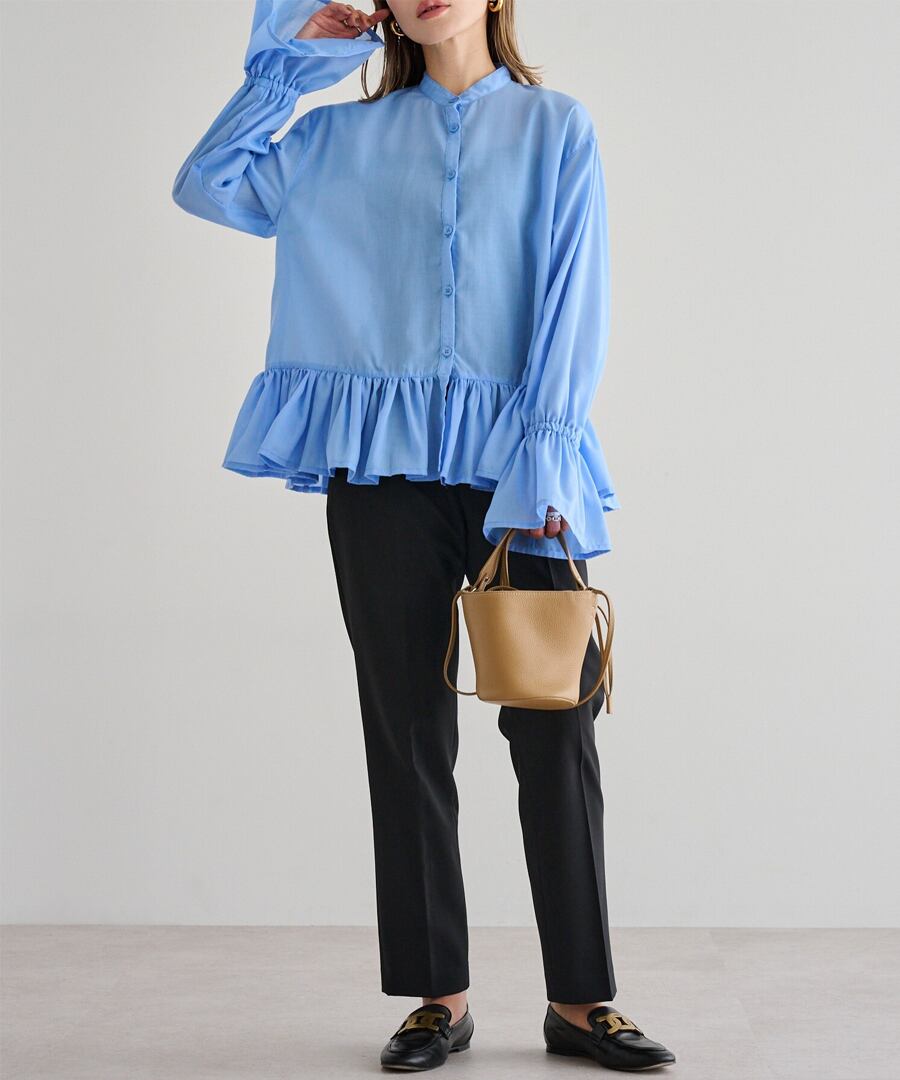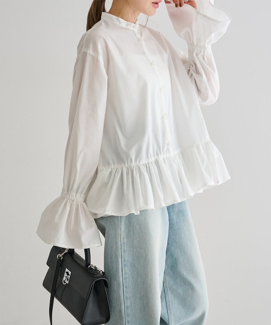 裾フリルキャンディースリーブブラウス【t-10657】.