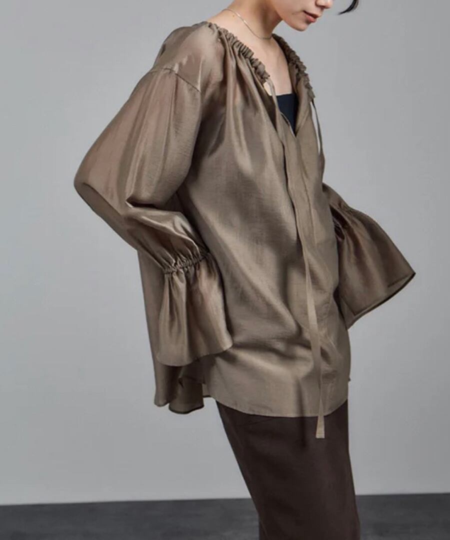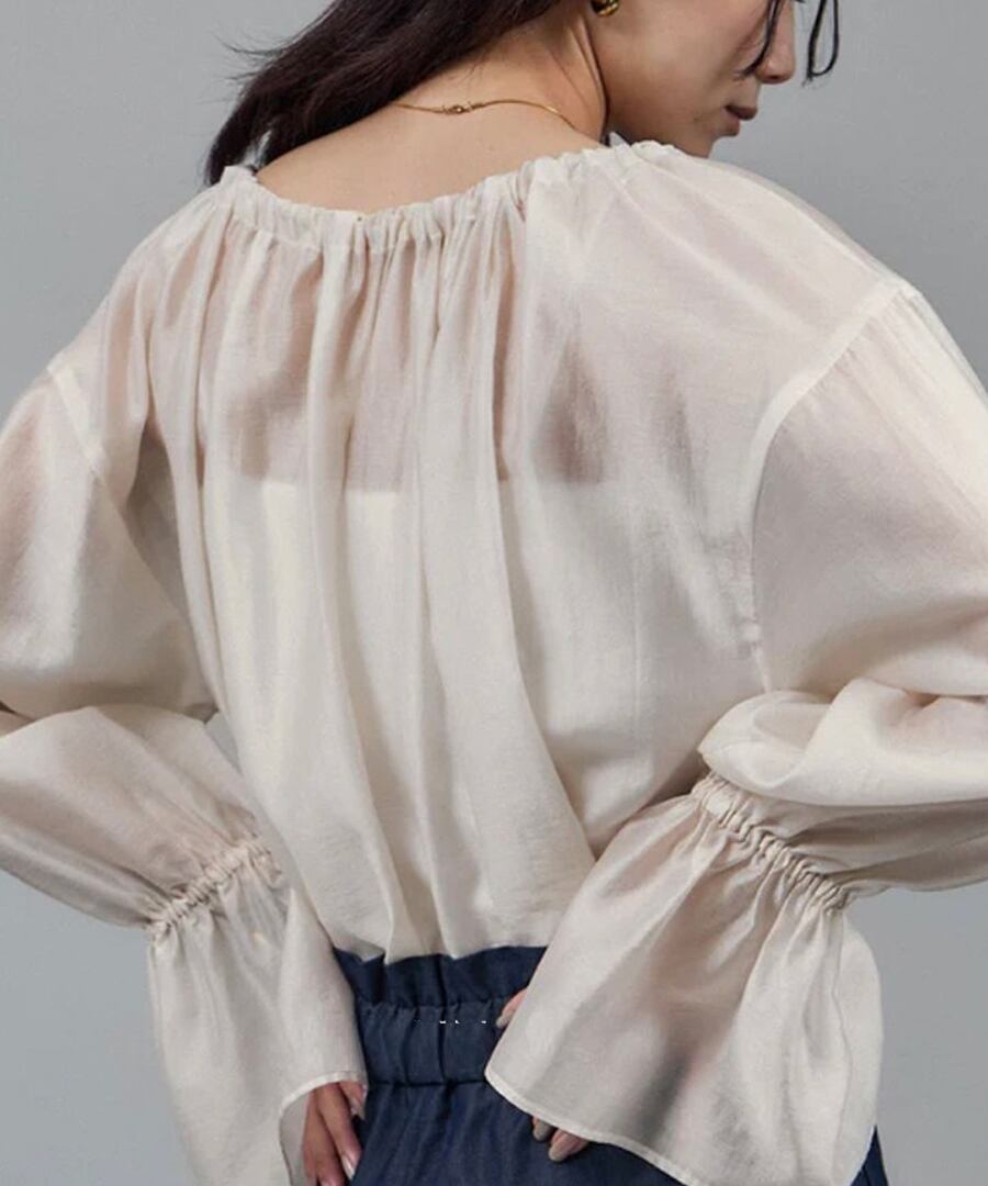 ラウンドネックデザインにより、フェミニンな雰囲気を演出します。