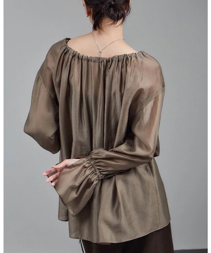 ラウンドネック◆キャンディースリーブシャツ【t-10433】
