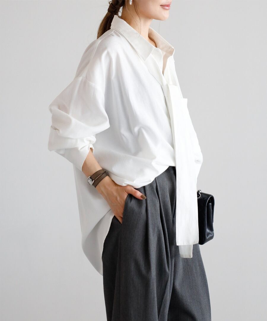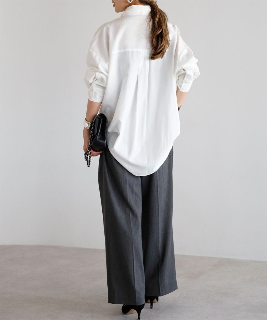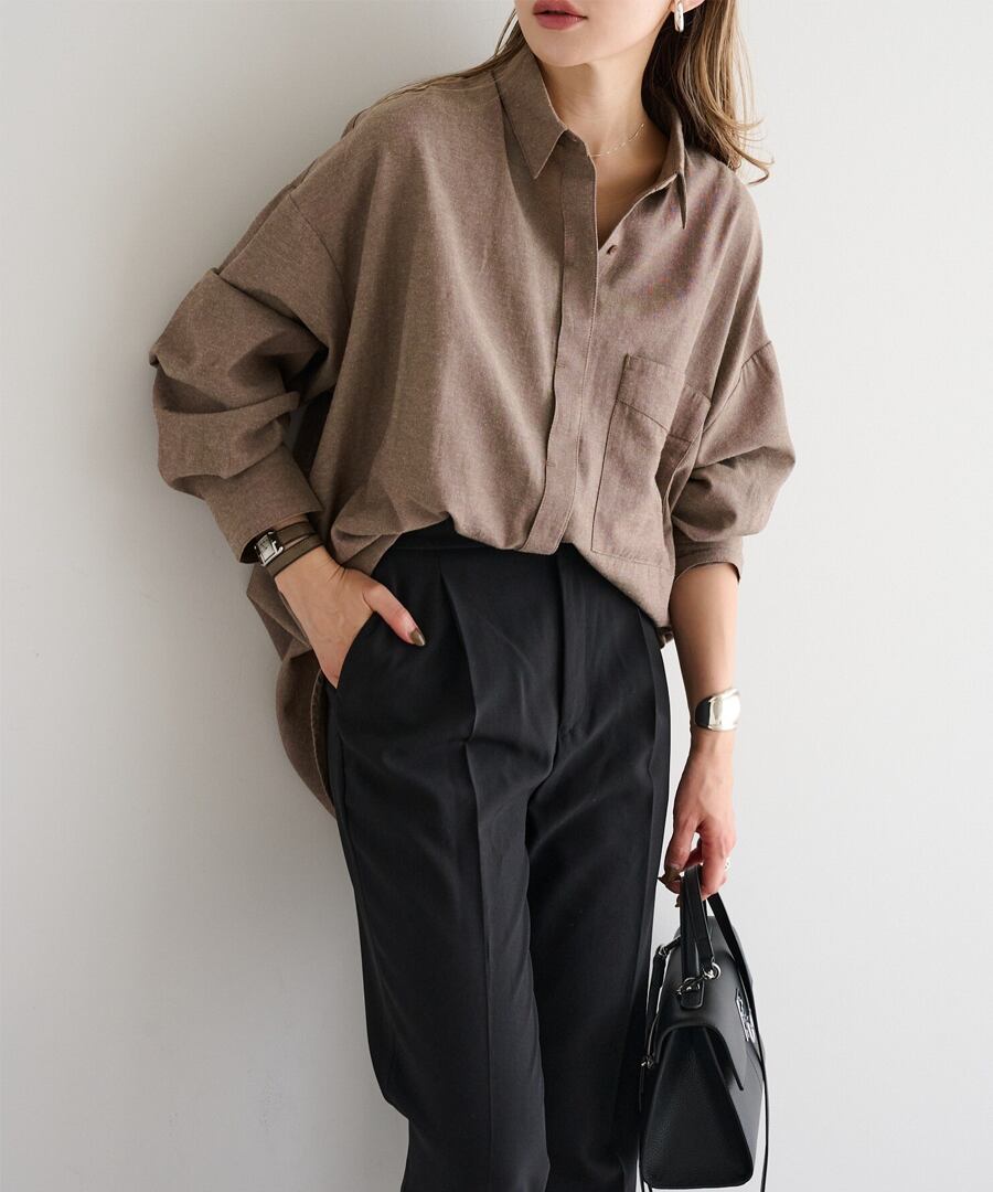 ゆとりのあるオーバーサイズと胸ポケットが、程よいカジュアル感を添えます。