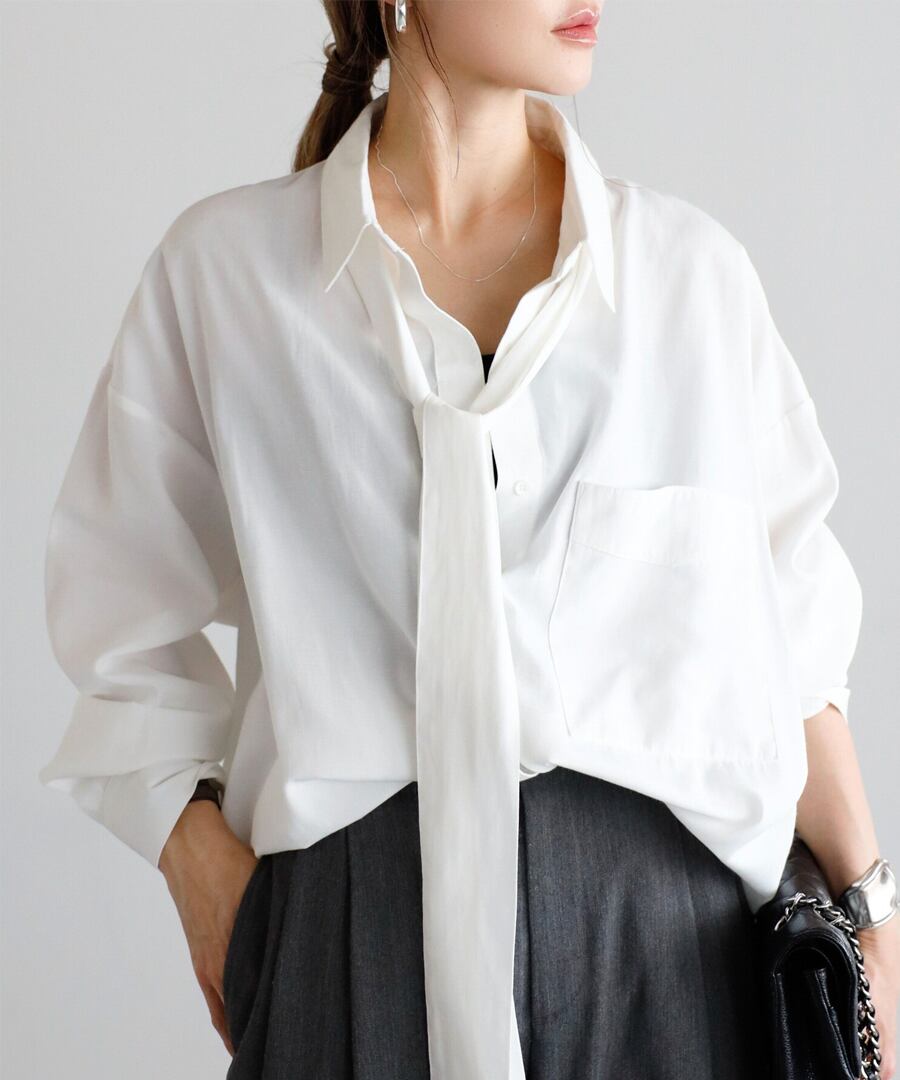 取り外し可能なボウタイ付きで、シーンに合わせた着こなしが楽しめるシャツ。
