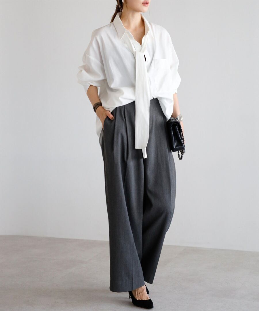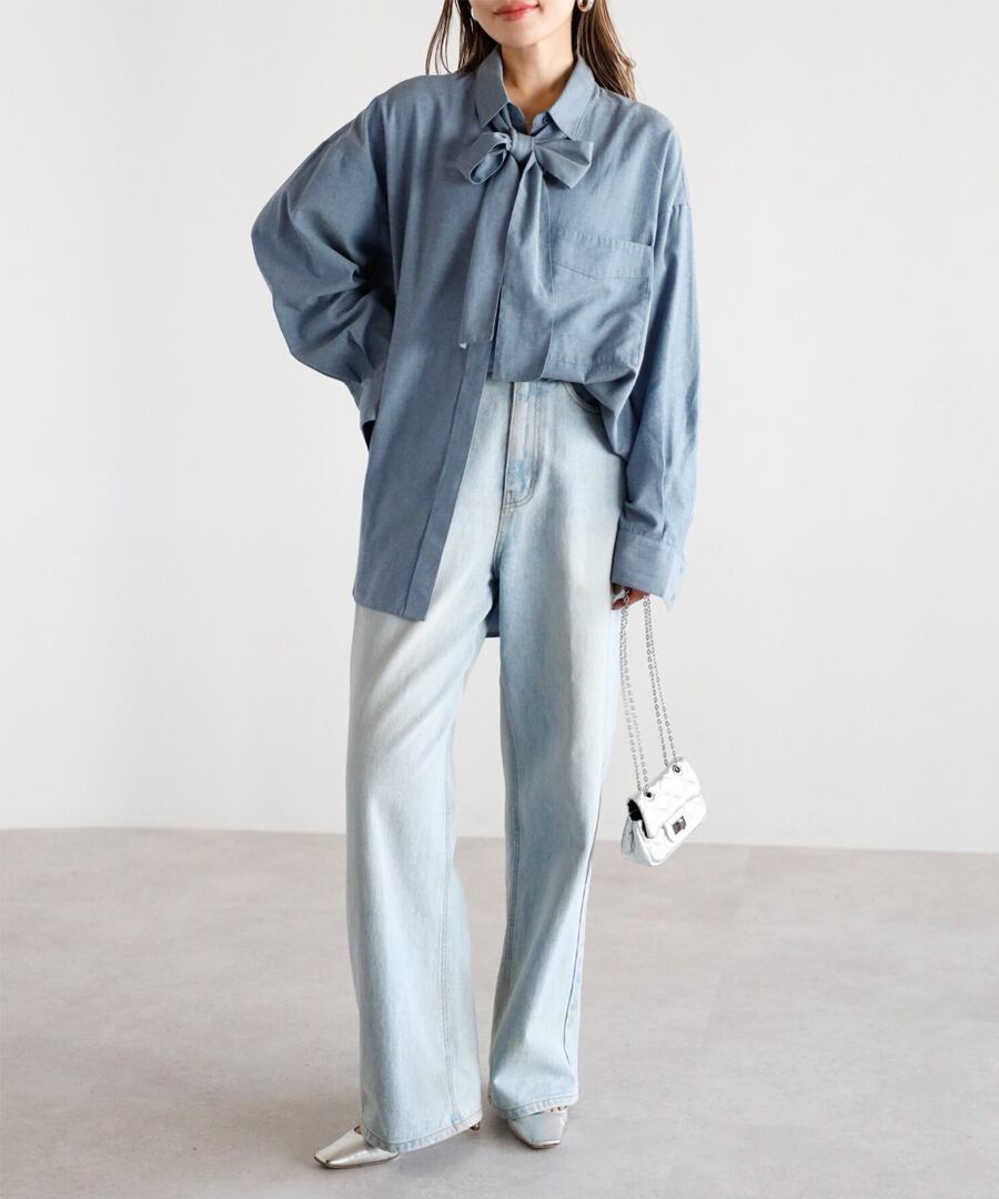 アレンジ自在で雰囲が変わる、ボウタイ付きダンガリーシャツ