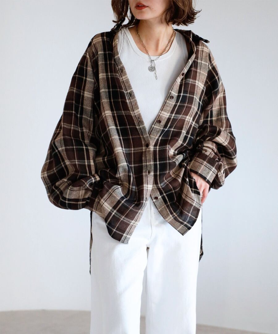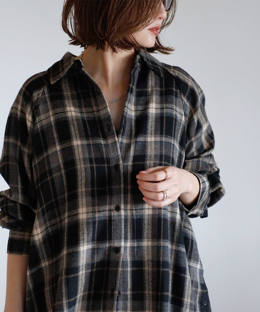 微起毛素材を使用し、柔らかな風合いが魅力のチェックシャツ。