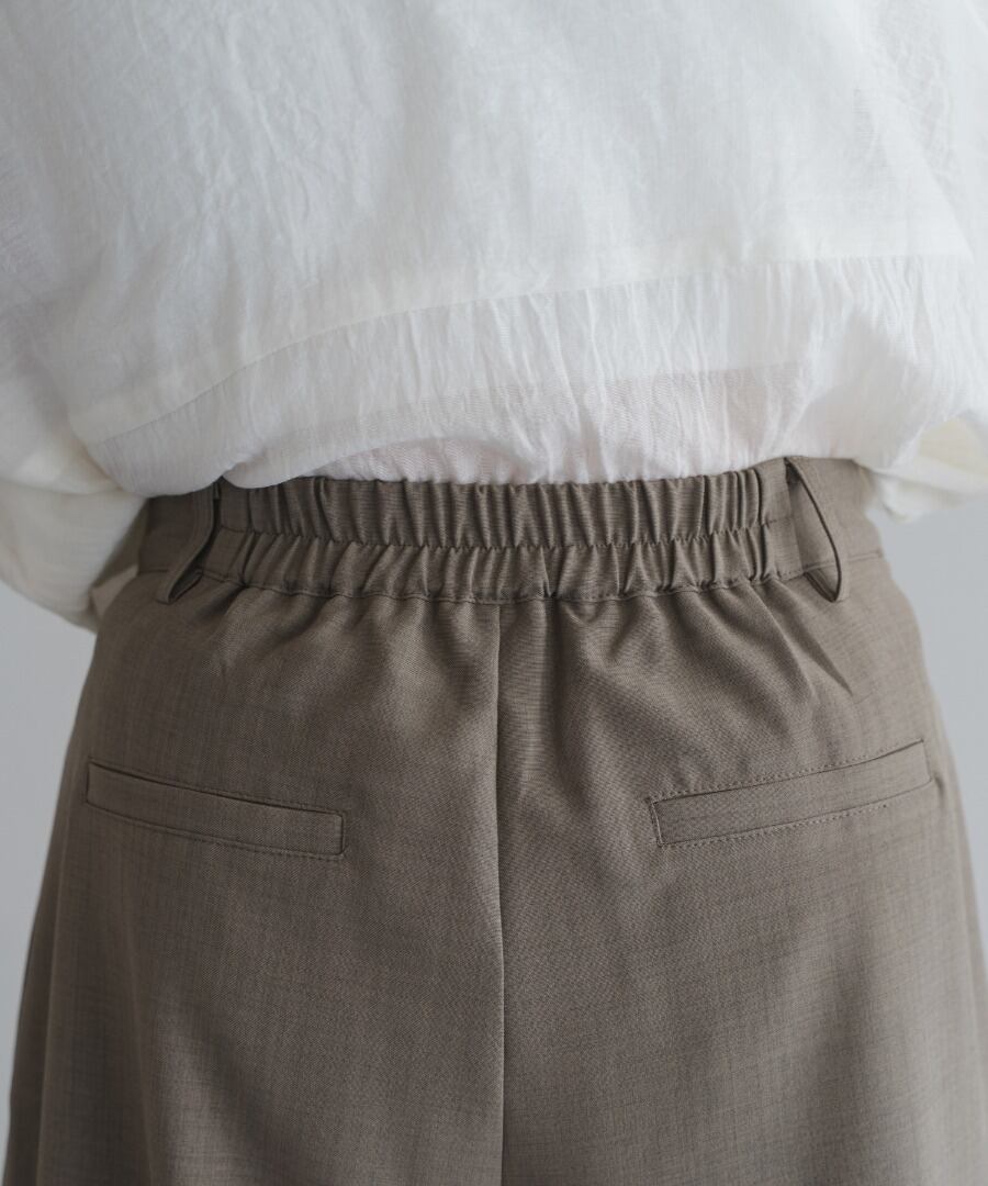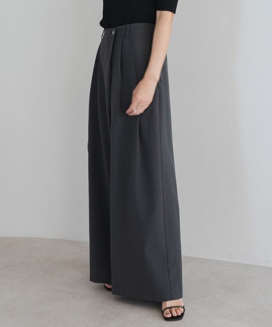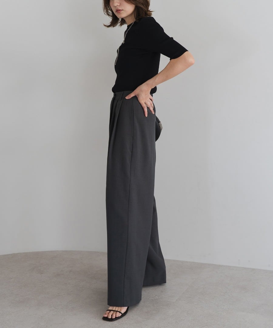 フロントのツータックで腰まわりに程よいゆとりを持たせ、美しい落ち感が魅力の一本です。