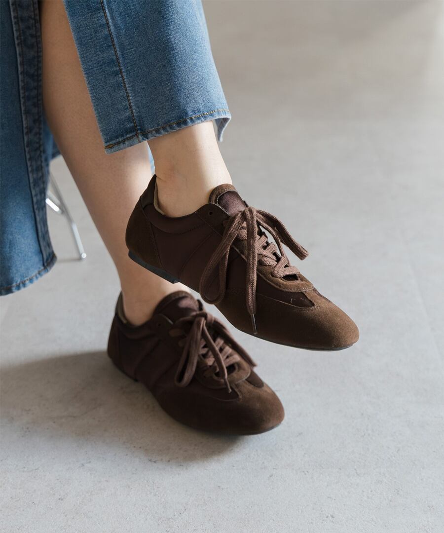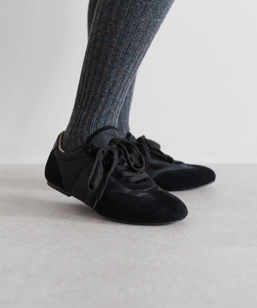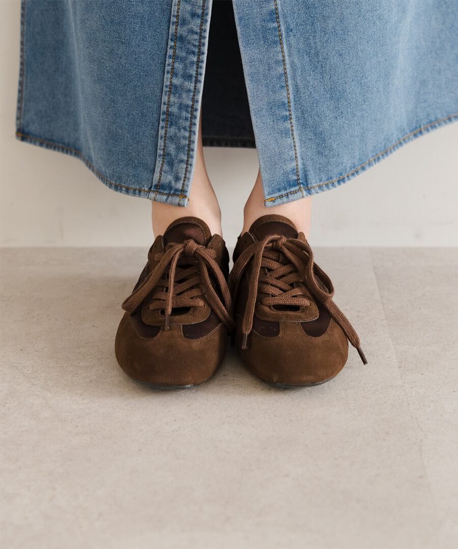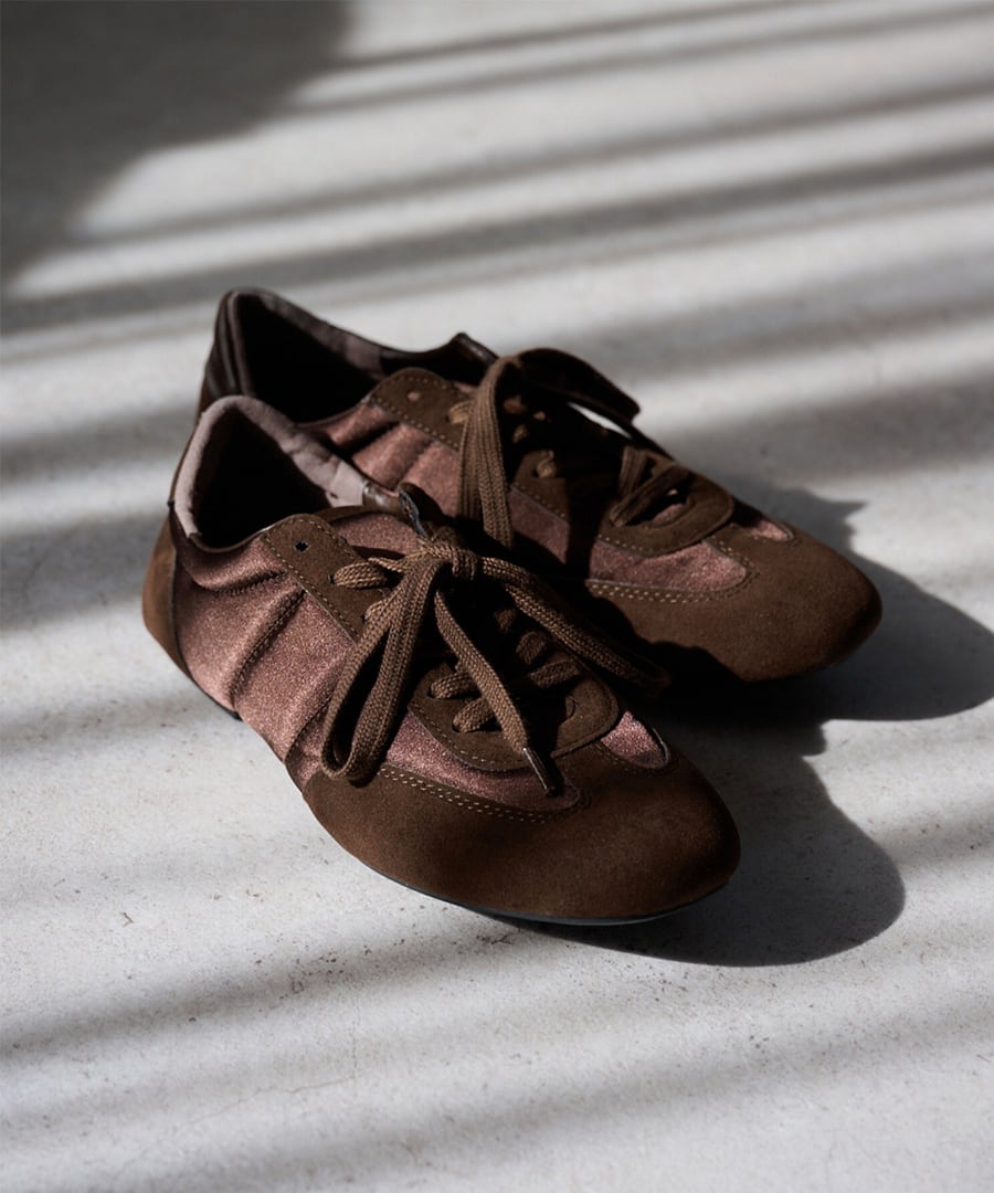 薄底ソールが軽やかなバランスを生み、旬のシルエットに。