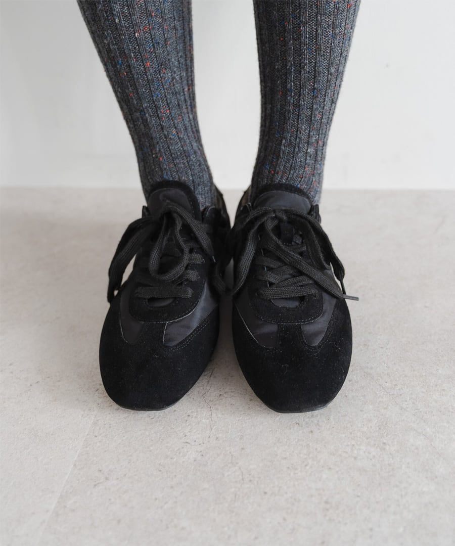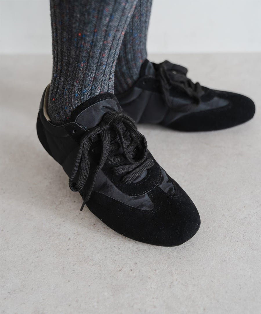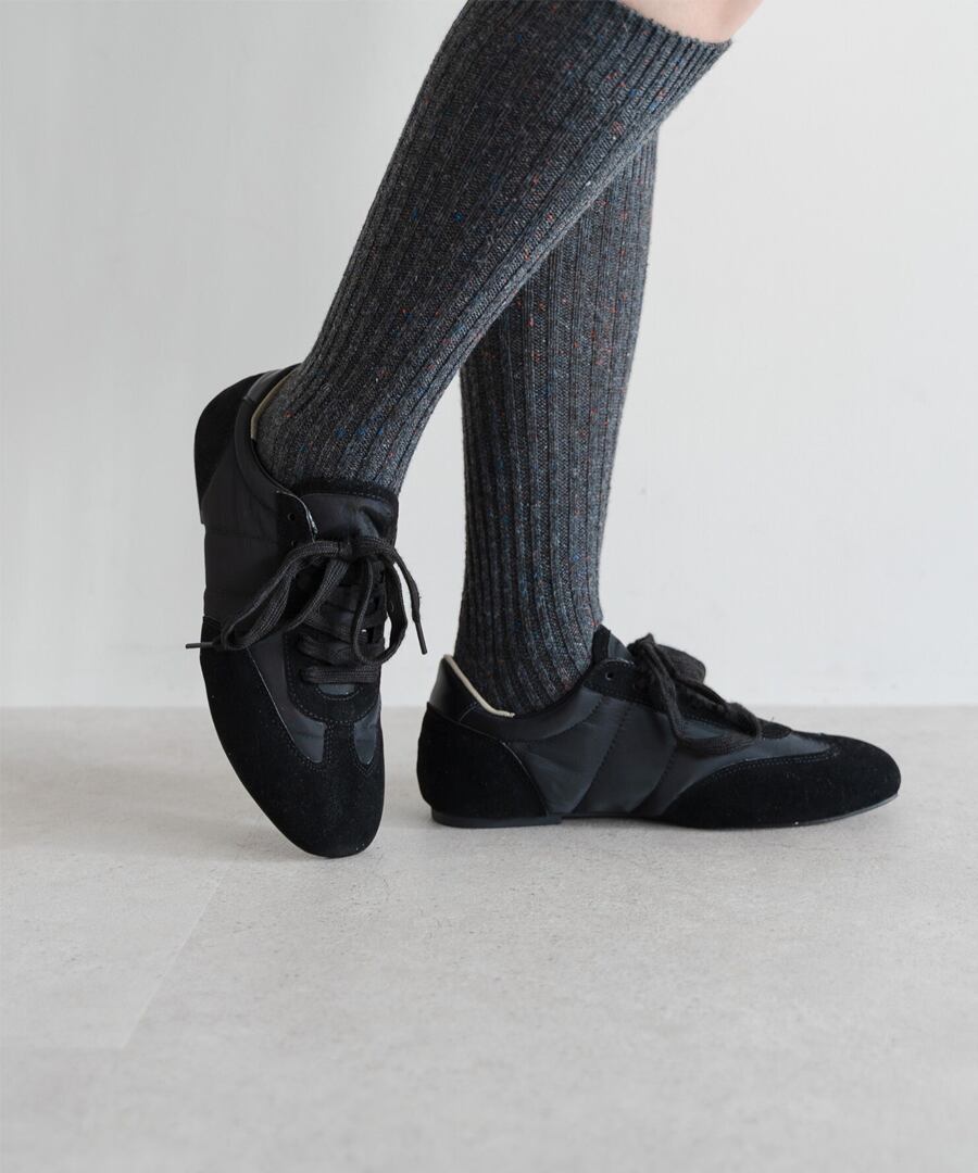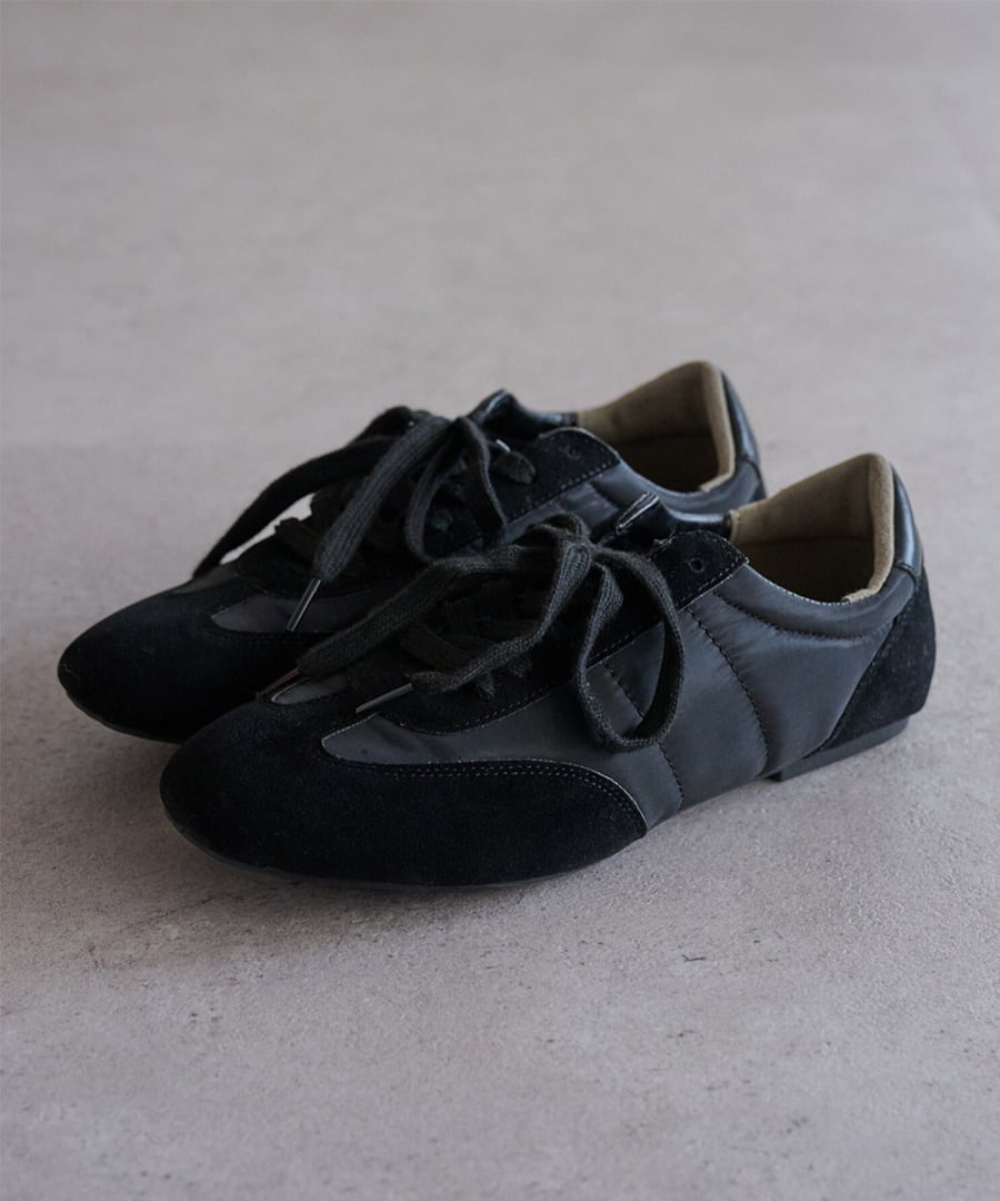 薄底ソールが軽やかなバランスを生み、旬のシルエットに。