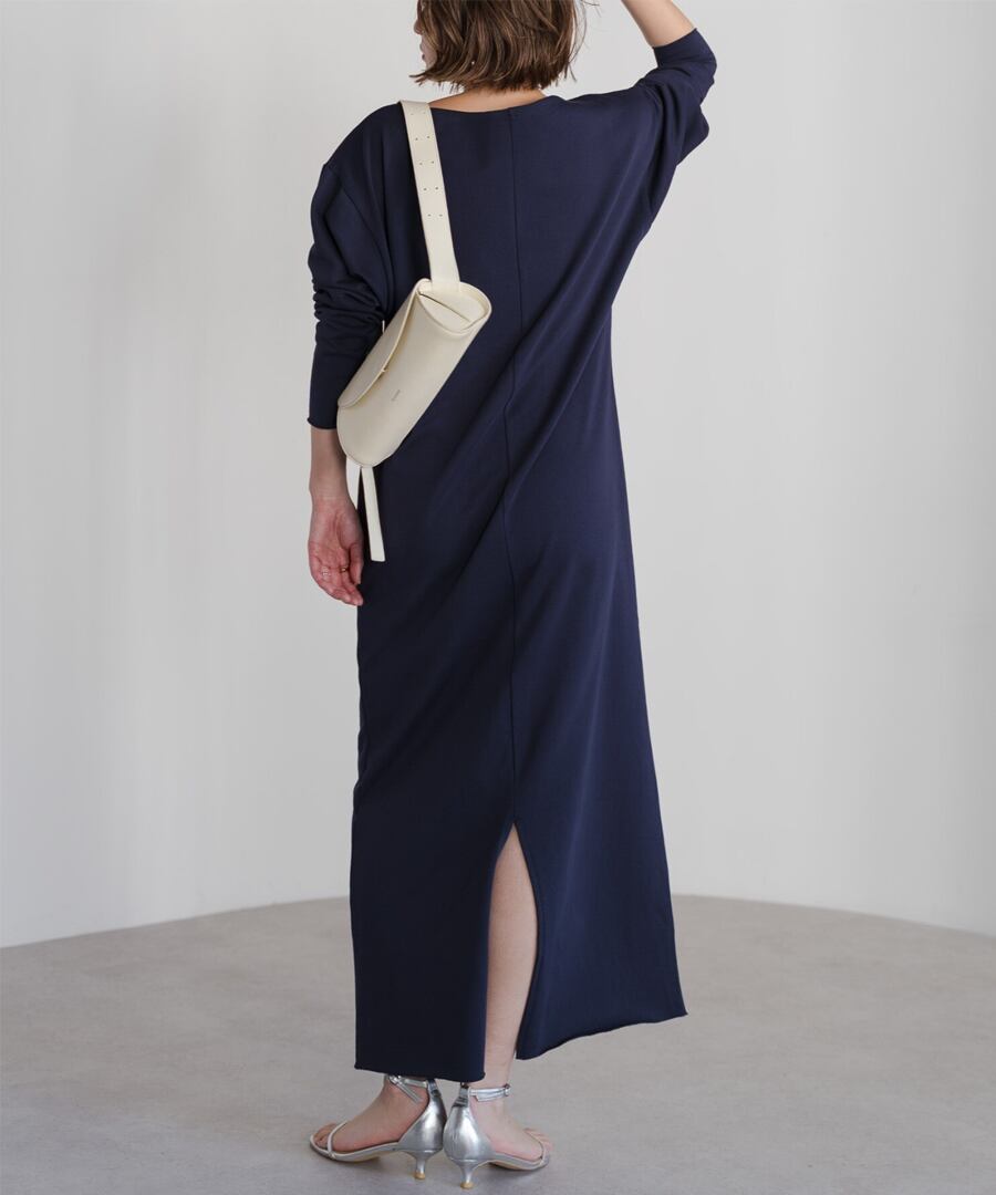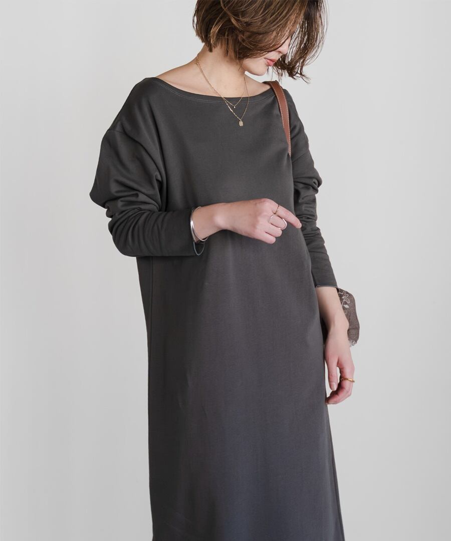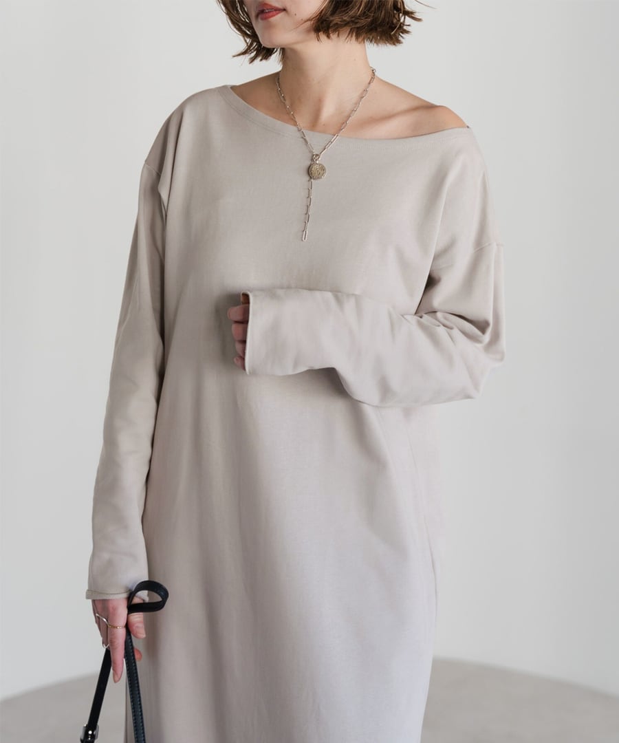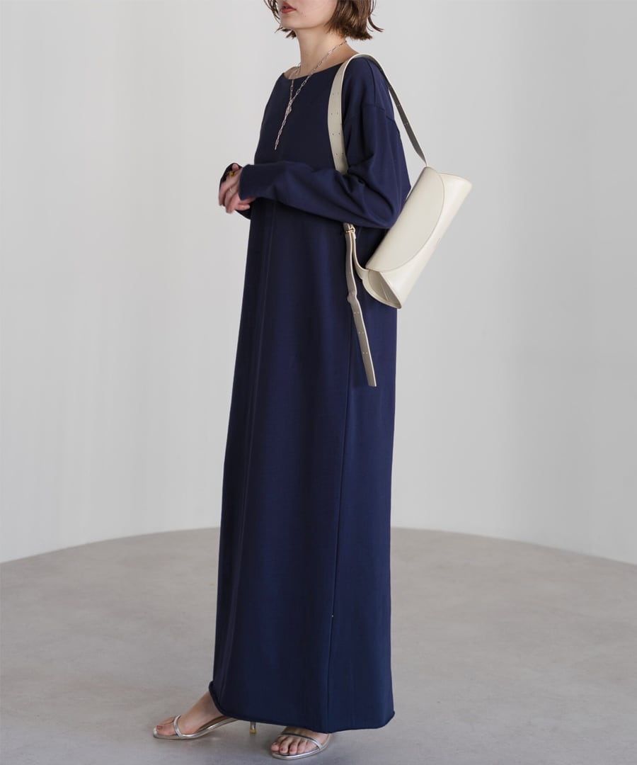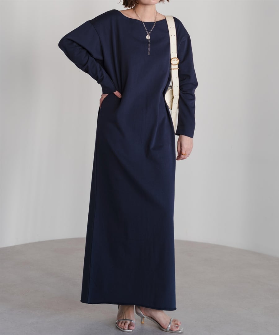 肩まわりをすっきり見せるオフショルダーが、程よい抜け感を演出するロングワンピース。