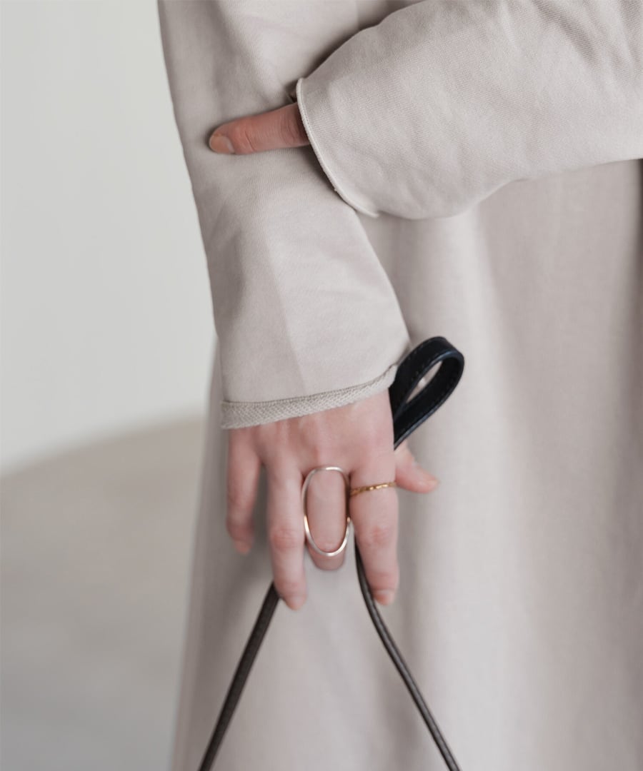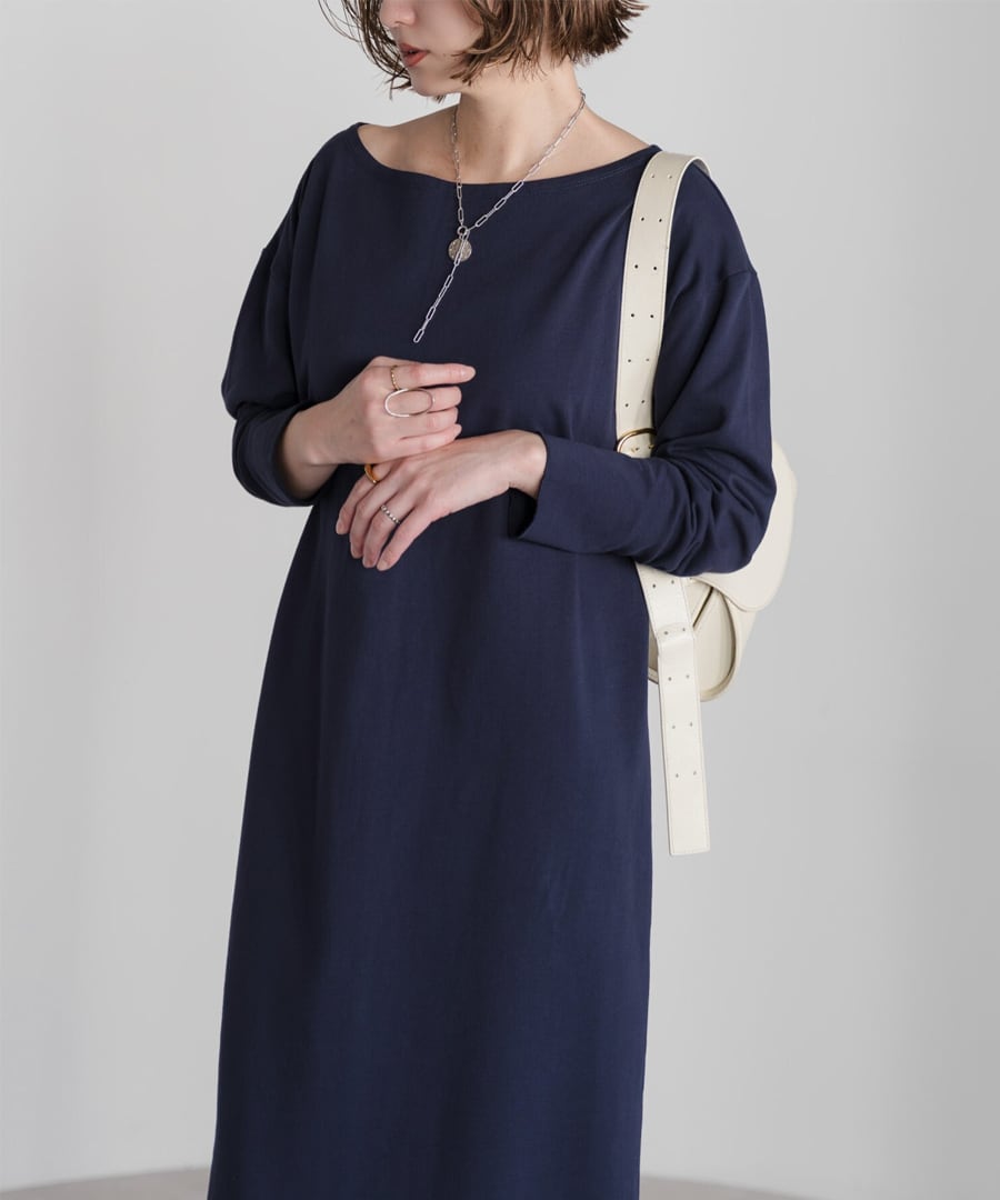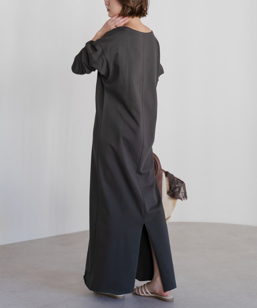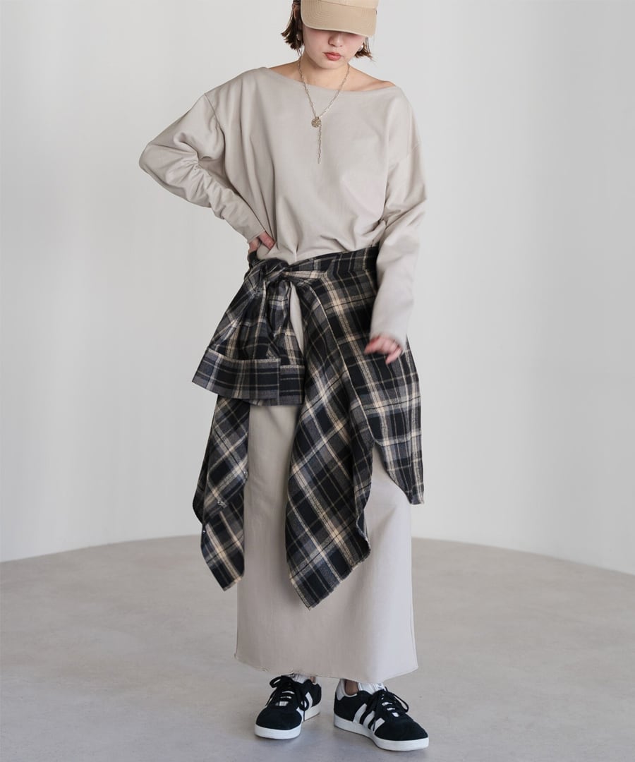 身体のラインを拾いにくいシルエットで、体型カバーにも配慮したデザインです。