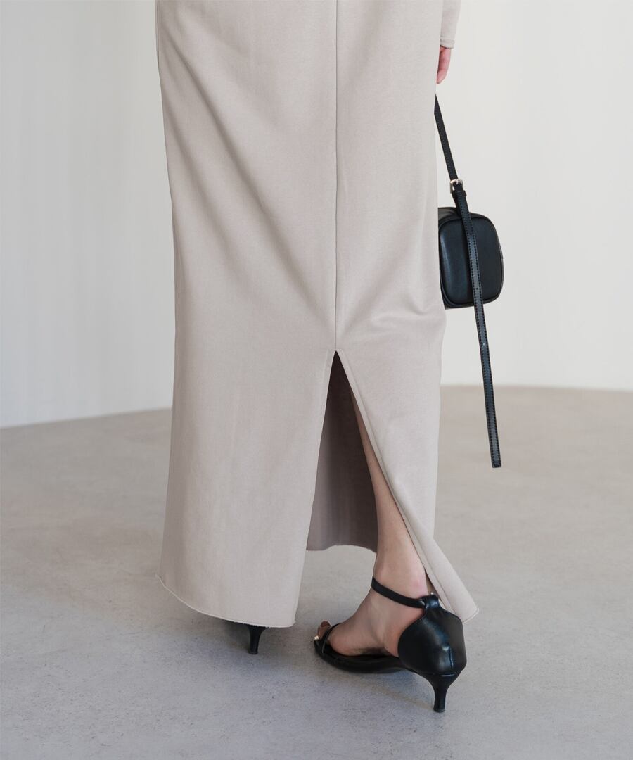 バックにはスリットを施し、足さばきの良さと女性らしいニュアンスをプラス。