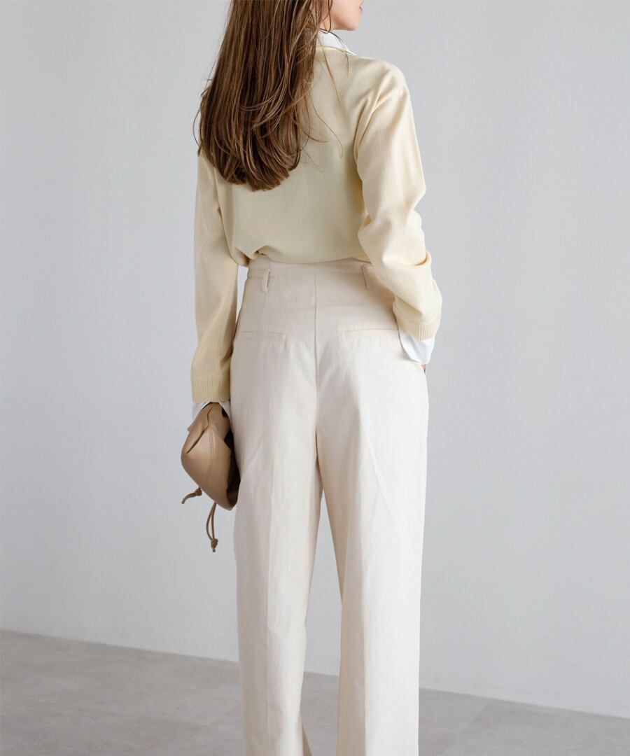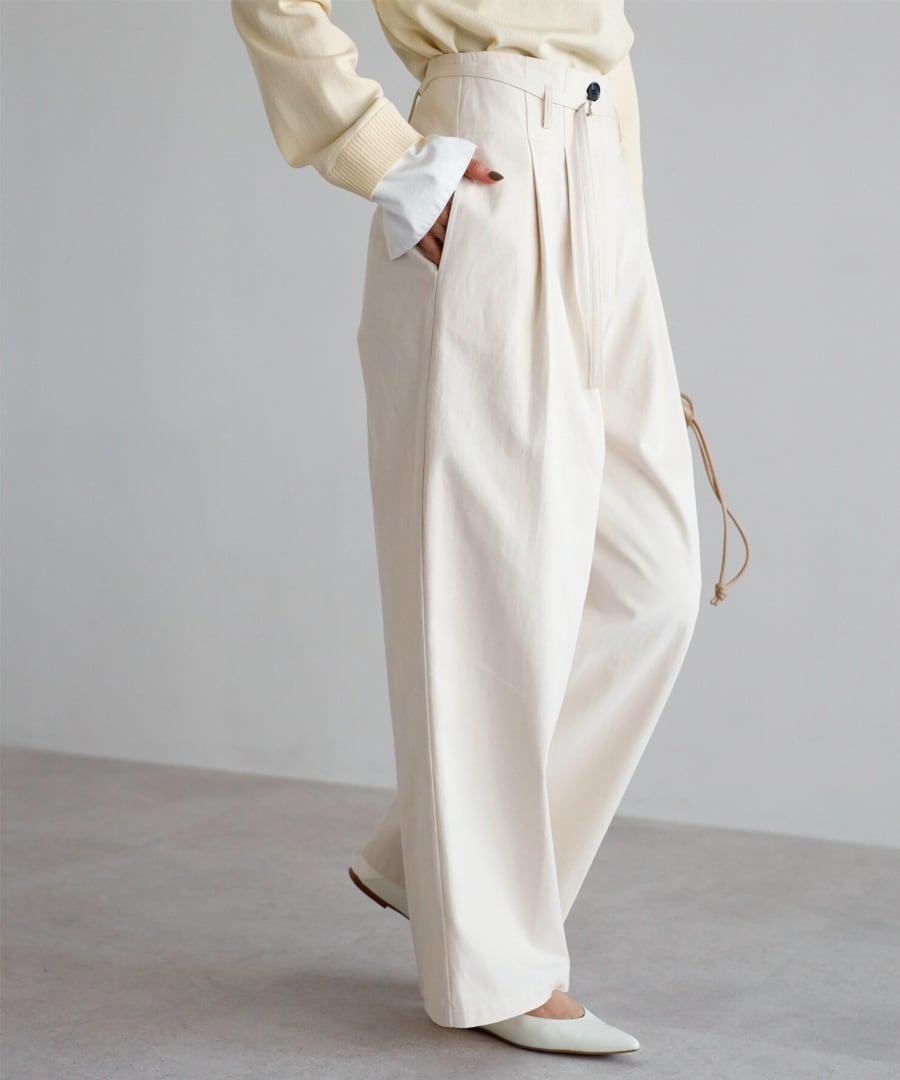 タックを入れることで腰まわりにゆとりを持たせ、立体的な表情に。